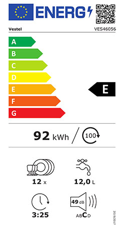 - VESTEL Geschirrspüler, vollintegriert, VES 46056, Energieeffizienzklasse E