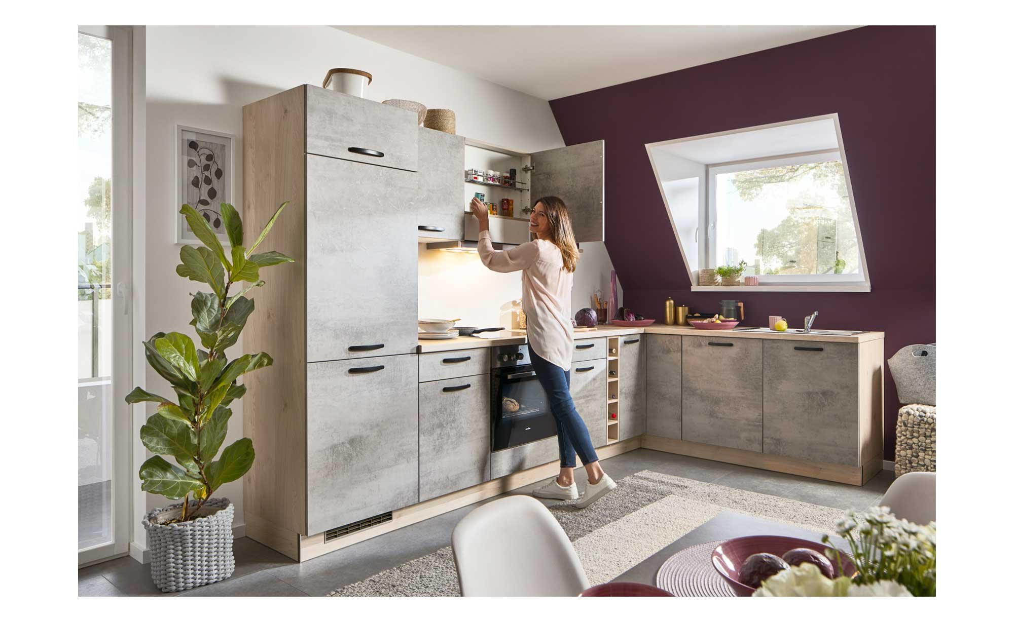 Sowohl mit ihrer zeitlosen Optik als auch durch eine umfangreiche Ausstattung weiß die Express-Winkelküche Base zu überzeugen.
