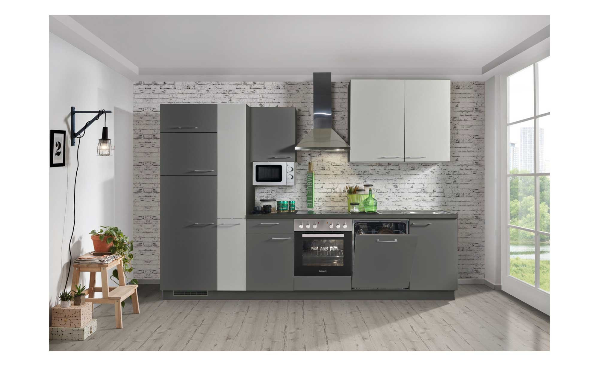 Mit einer stilvollen Farbgebung überzeugt die ca. 310 cm lange Express-Zeilenküche Win direkt auf den ersten Blick.