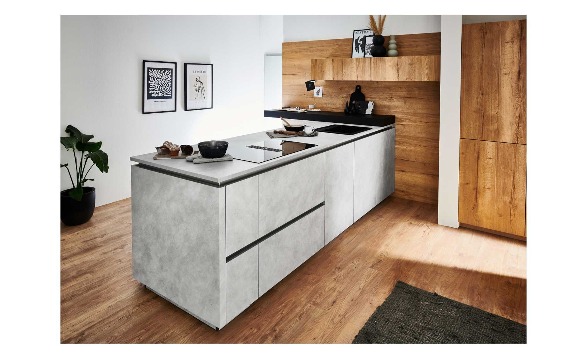 Die nolte Wohnküche Lucca / Artwood begeistert mit ihrer zeitlos-modernen Optik und klugen Stauraum-Angeboten. Freuen Sie sich diesbezüglich beispielsweise auf den ca. 120 cm umfassenden Hochschrank! Die als Mittelpunkt fungierende Insel misst ca. 310 cm, außerdem wurde eine platzsparende Essplatzlösung integriert.