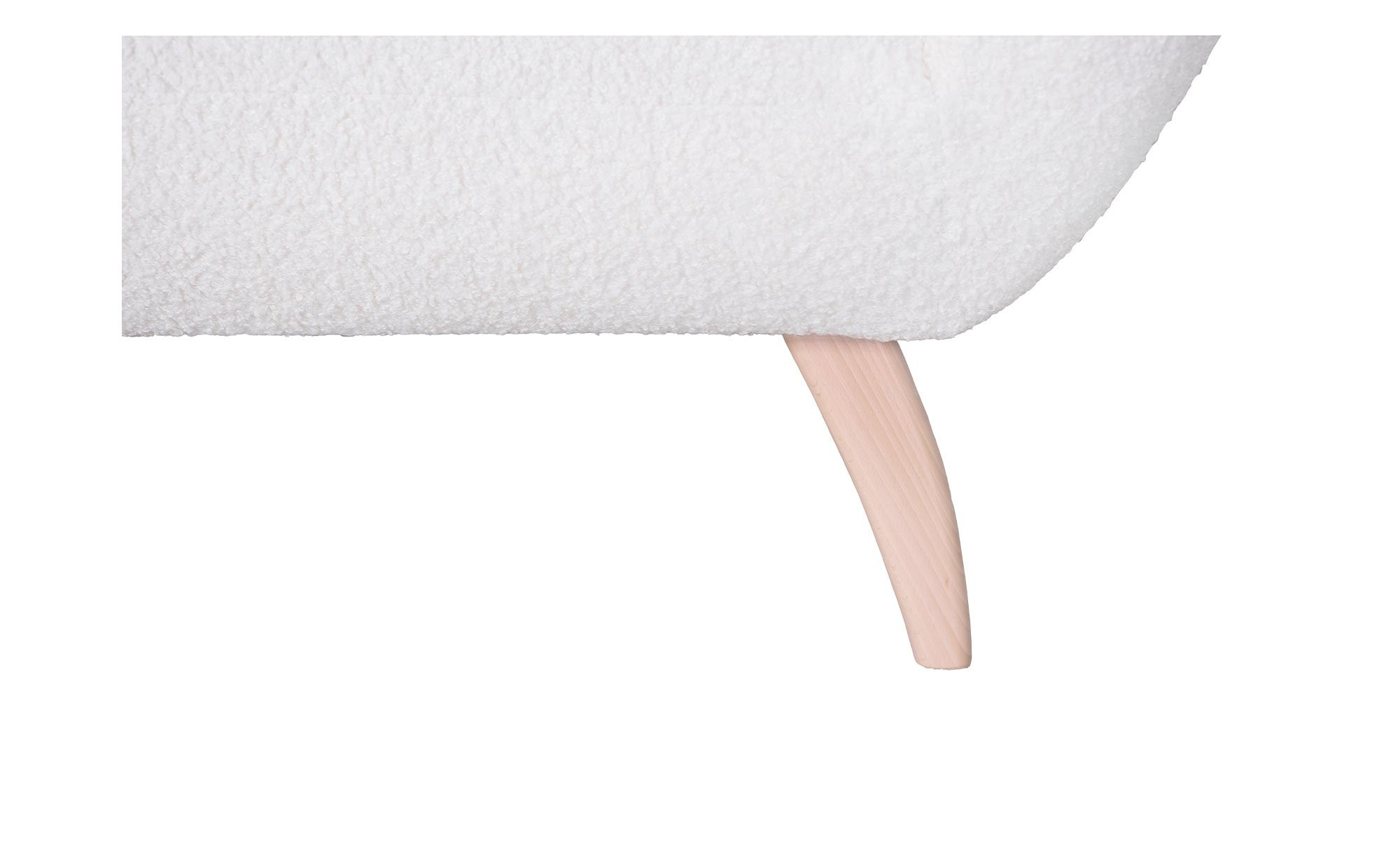 Ein weicher Stoffbezug aus 100 % Polyester in Beige umspannt das ca. 235 x 80 x 108 cm große Möbelstück inklusive des Rückens. Somit können Sie es nicht nur an einer Wand aufstellen, sondern bei Bedarf auch mitten im Raum. Hochwertige Holzfüße in Buche-Optik runden mit einer Höhe von ca. 18,5 cm das Erscheinungsbild ab.