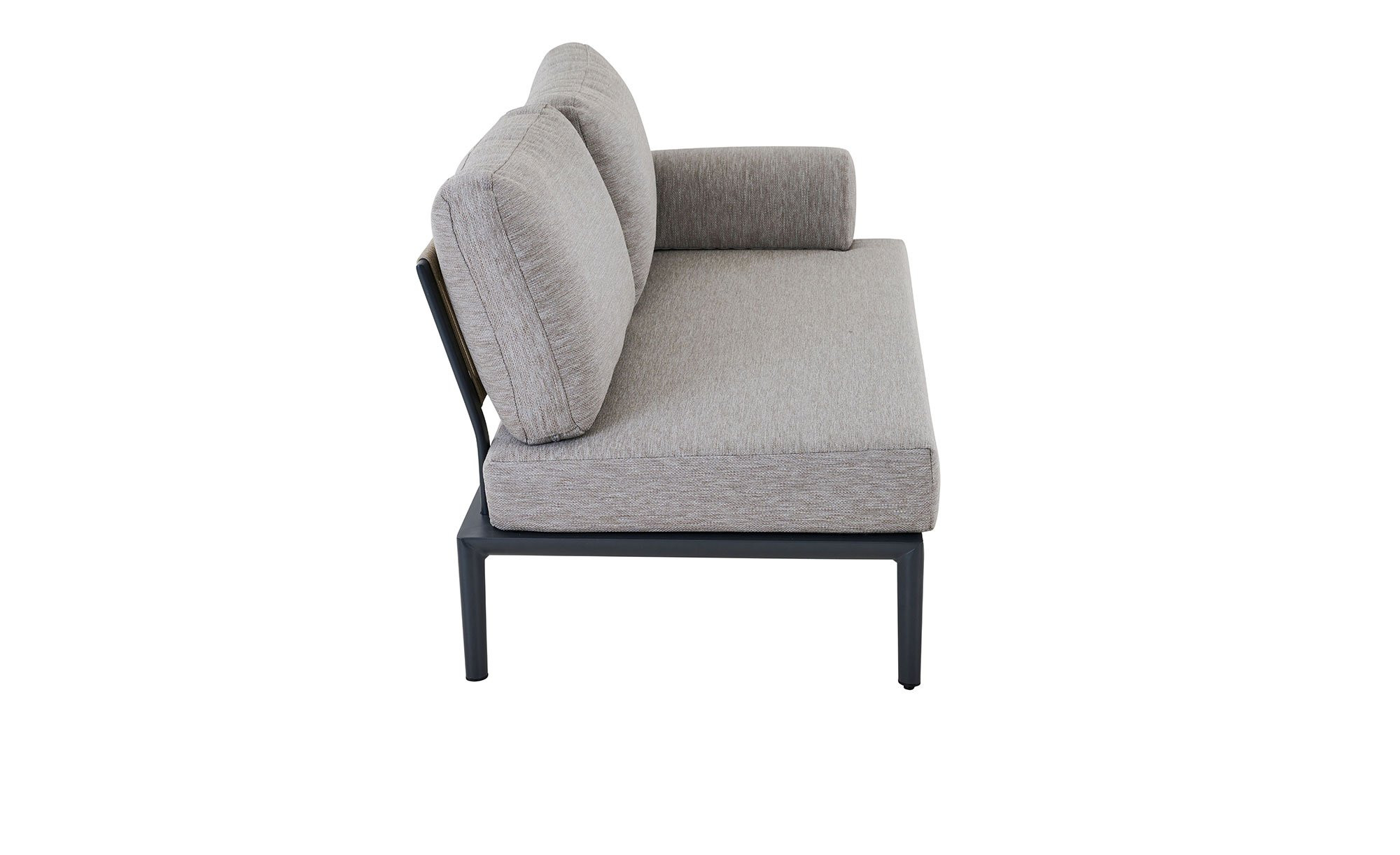 Ein stabiles Aluminiumgestell mit vier Füßen gewährleistet bei dem ca. 144 x 74,5 x 80 cm großen Sofa von MONDO den sicheren Stand. Dank einer Farbgebung in mattem Anthrazit und Pulverbeschichtung versprüht es einen besonders stilvollen Charme. Neben einer Armlehne tragen auch die im Angebot enthaltenen Auflagen in Taupe-Braun zur Wohlfühl-Atmosphäre bei.