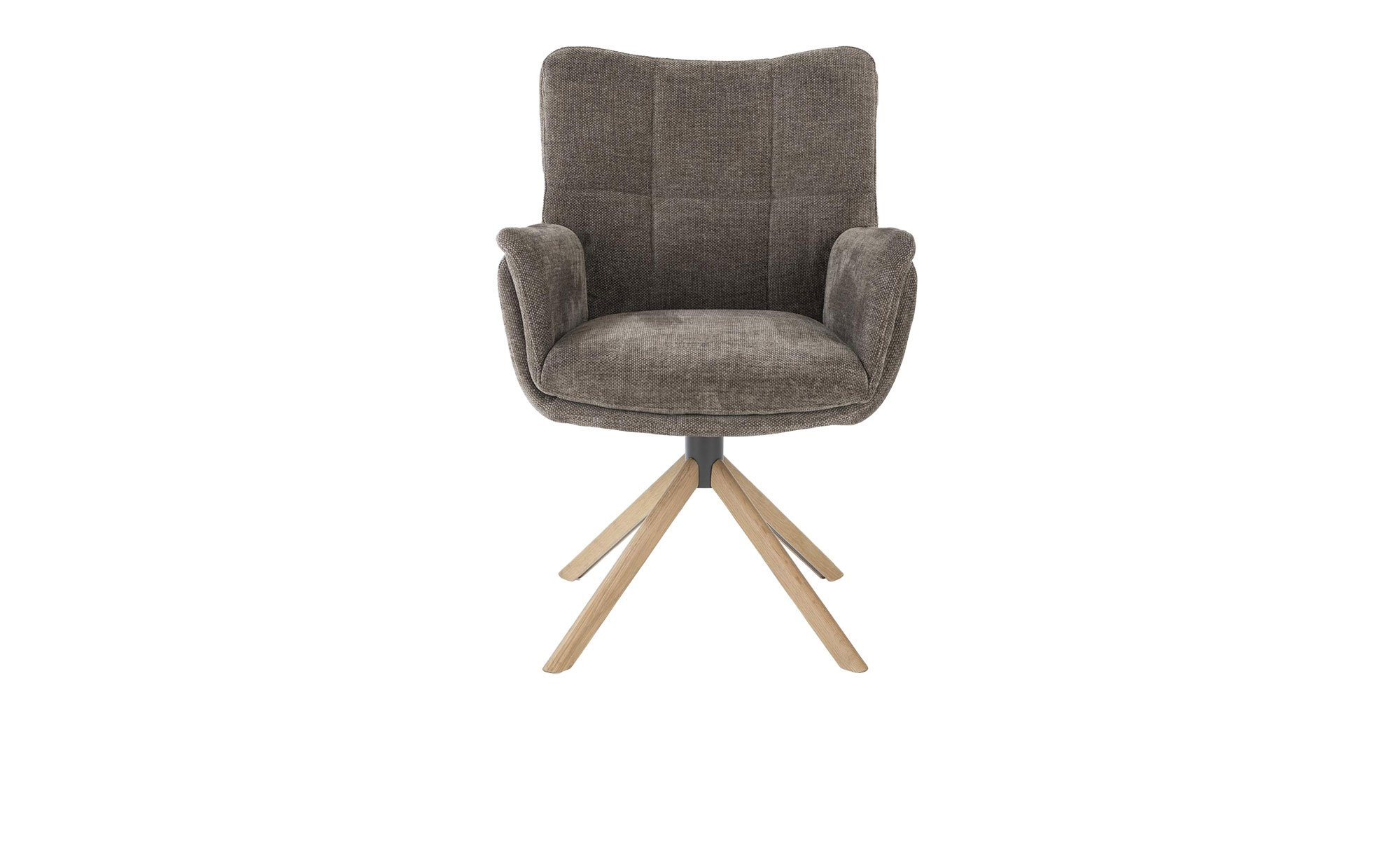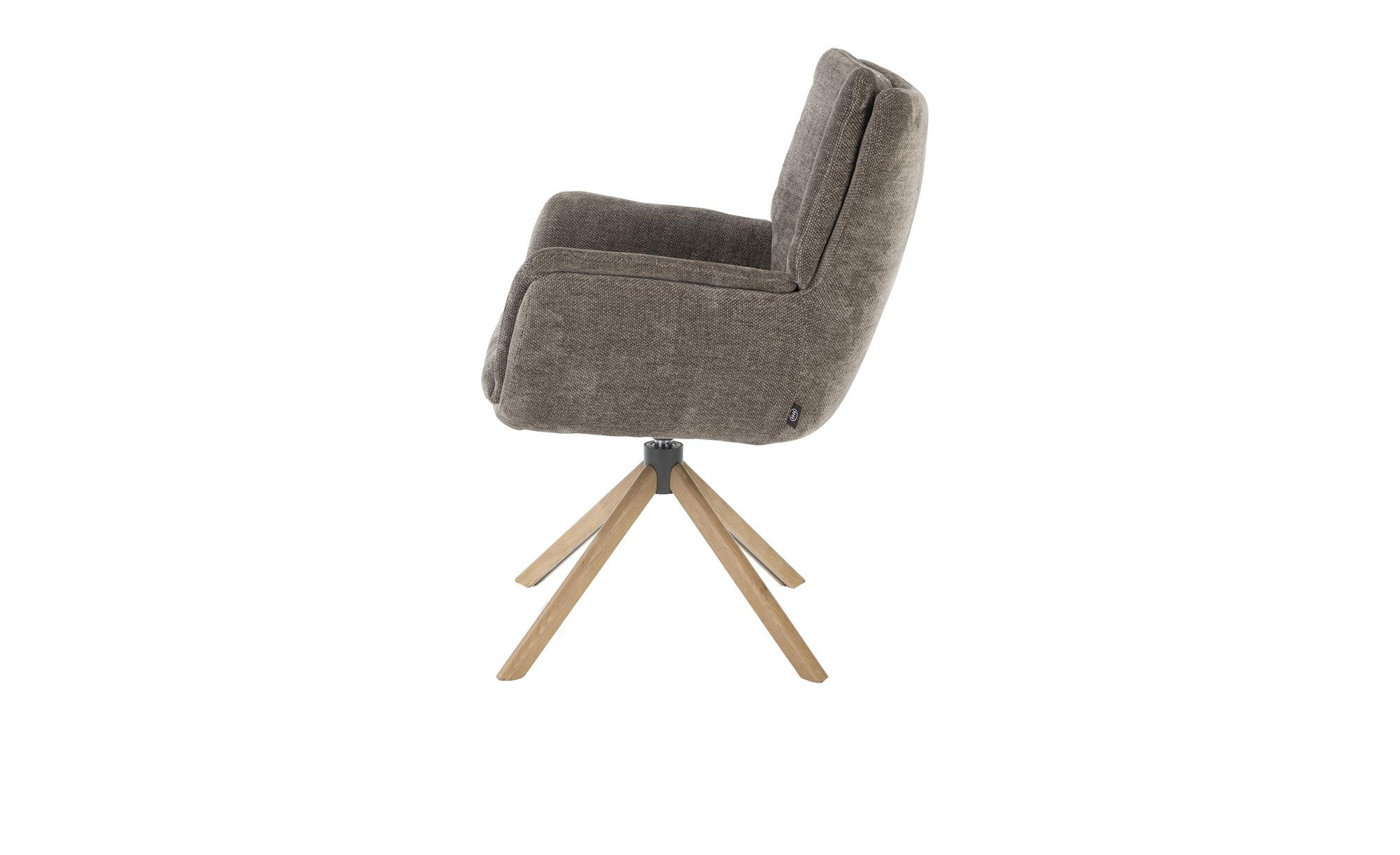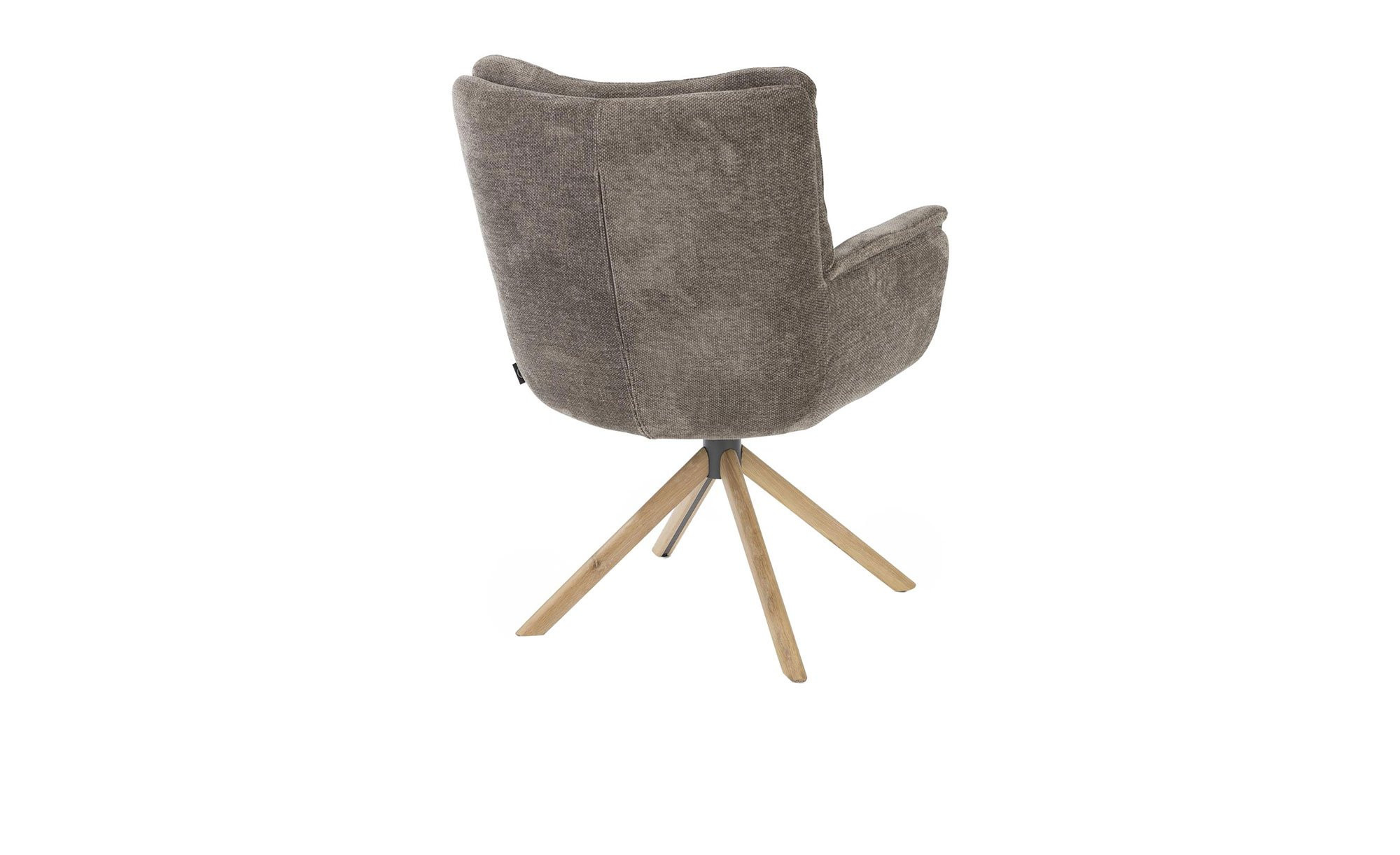 Der Sitz des ca. 62 x 91 x 67 cm großen Möbelstücks ist mit einem braunen Chenille-Flachgewebe aus 100 % Polyester bezogen. Eine bequeme Polsterung aus Polyetherschaum garantiert hier die Gemütlichkeit.