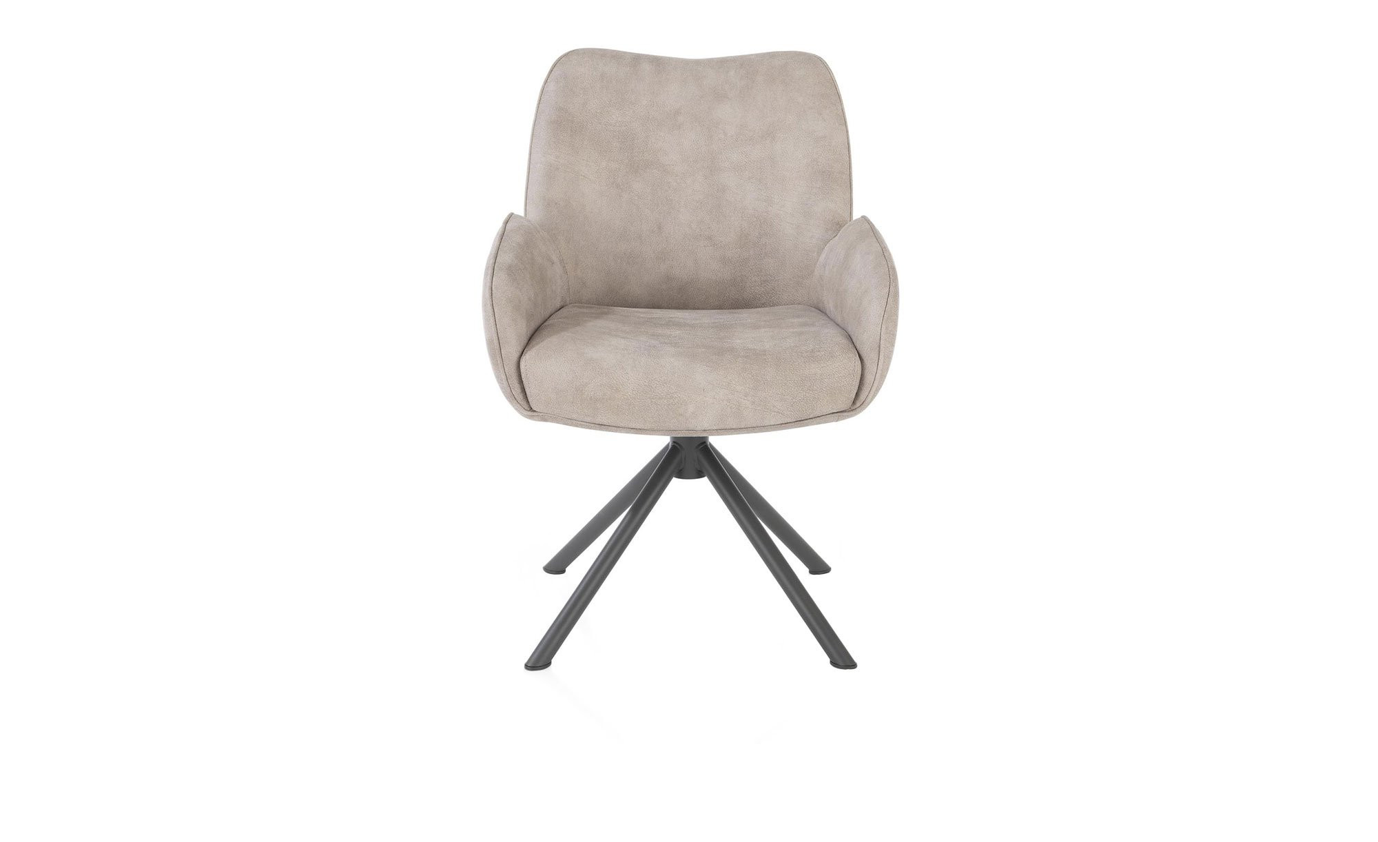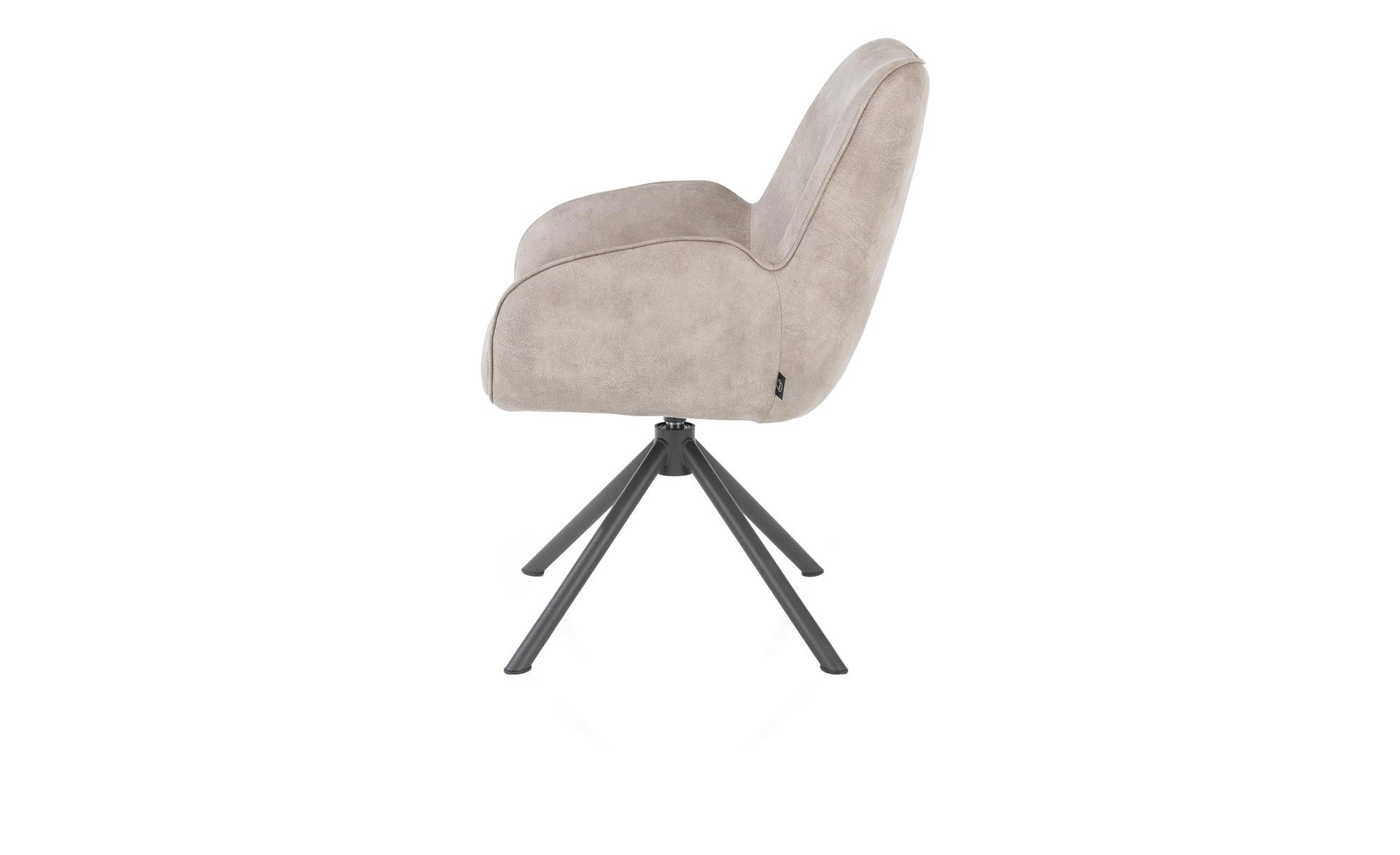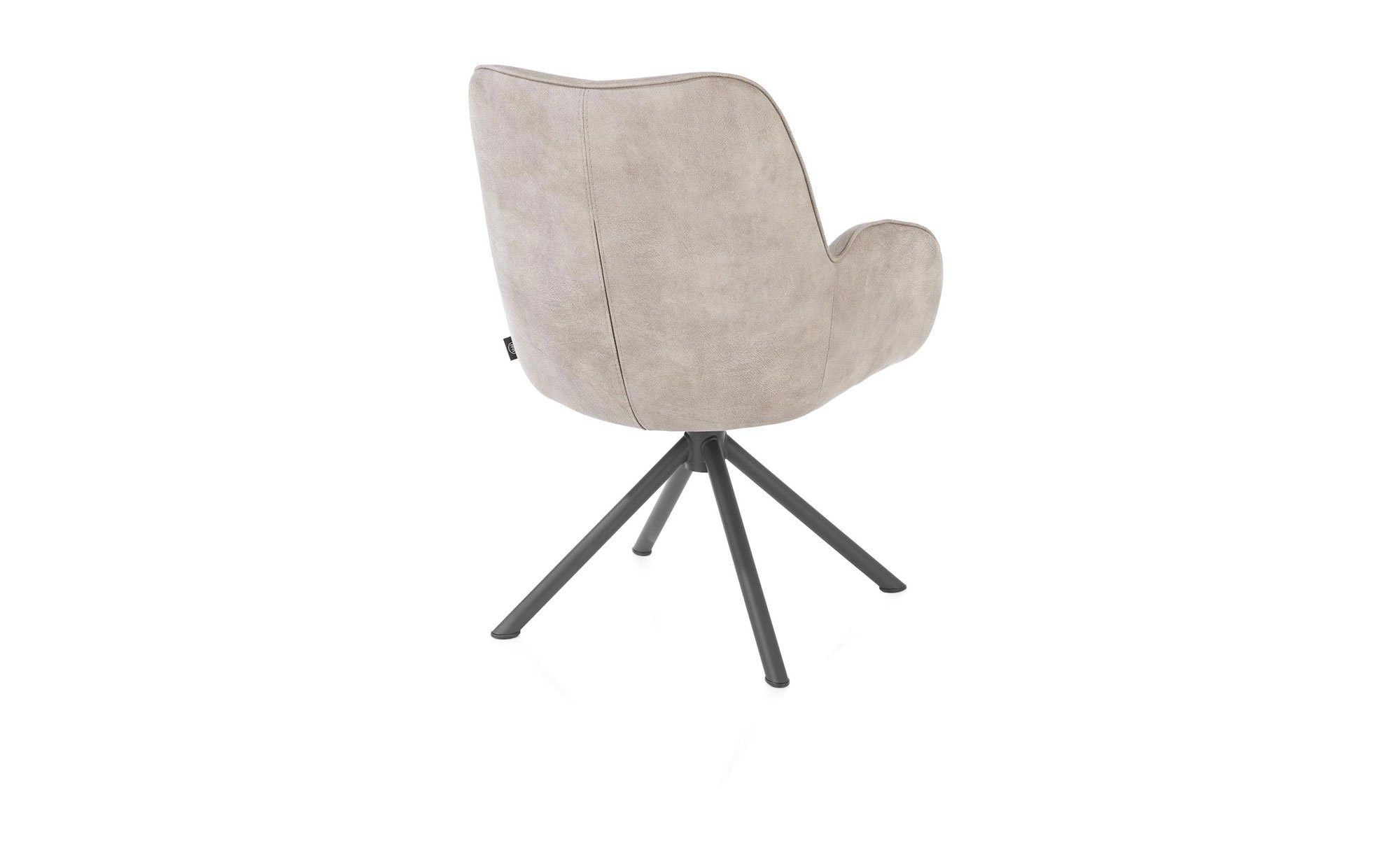 Der Armlehnenstuhl Riley vereint stilvolles Design mit hohem Sitzkomfort und ist ca. 62 x 88 x 65 cm groß. Sein Bezug aus antistatischem Mikrofaserstoff und Lederfasern in der Farbe Kiesel harmoniert perfekt mit dem Stativgestell aus Stahl in Graphit. So entsteht ein eleganter, zeitgemäßer Look für Ihr Zuhause.