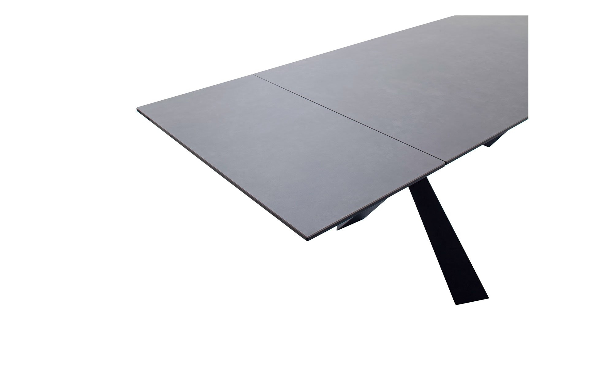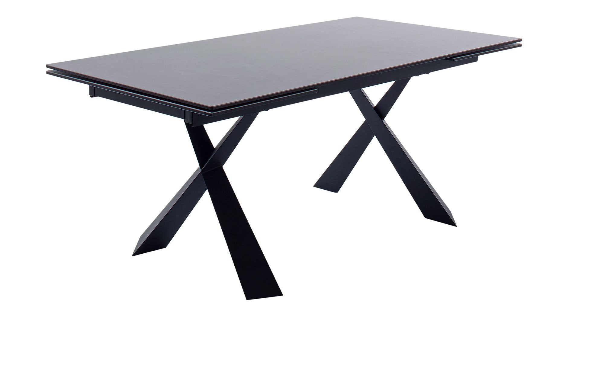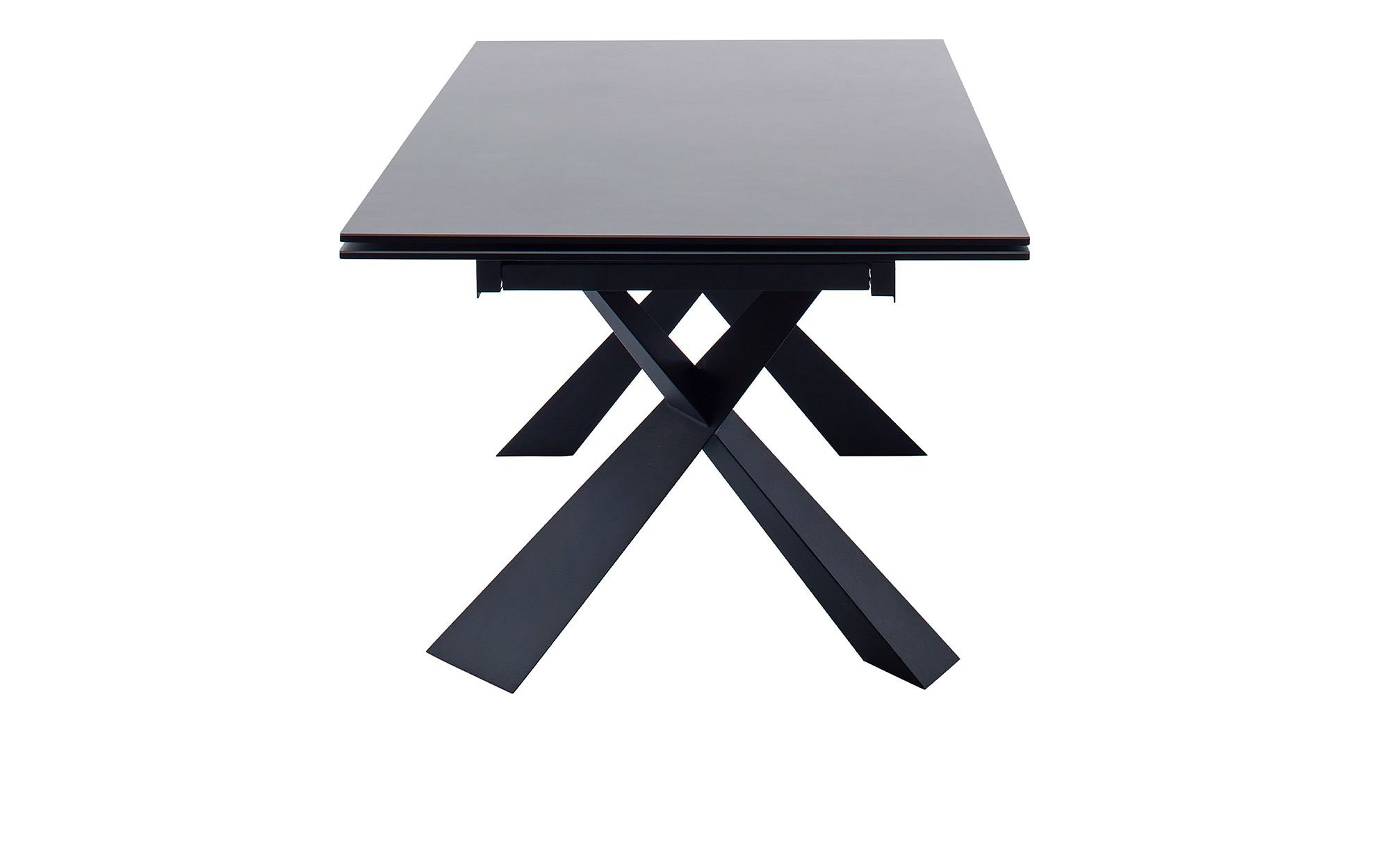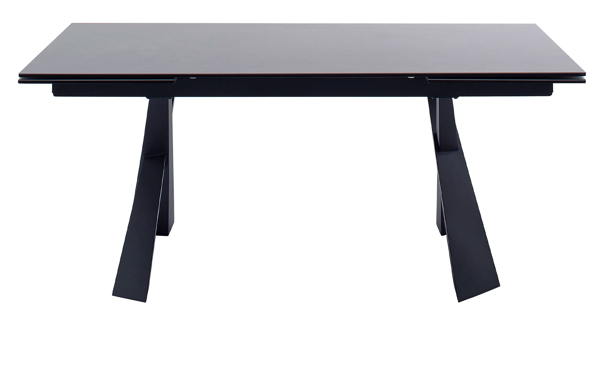 Der rechteckige Artikel ist ca. 180 x 76 x 95 cm groß und verfügt über ein schwarz lackiertes Metallgestell. Dieses trägt die ebenfalls schwarze Platte aus Keramik bzw. Sicherheitsglas. Dank eines integrierten Stirnauszugs können Sie die Tischplatte bei Bedarf jederzeit auf ca. 280 cm verlängern.