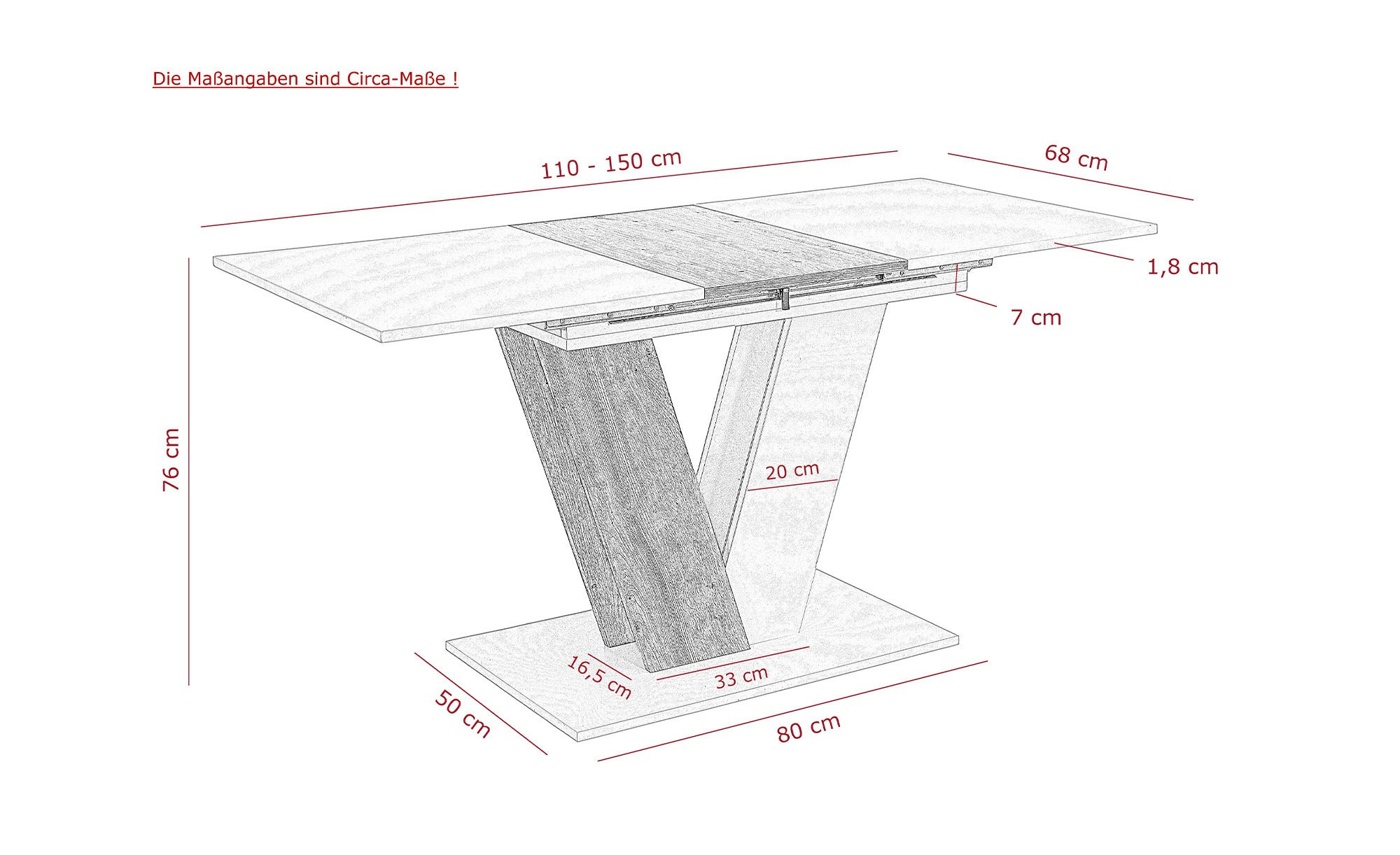 - Maße Tischplatte ausgezogen: ca. 150 cm