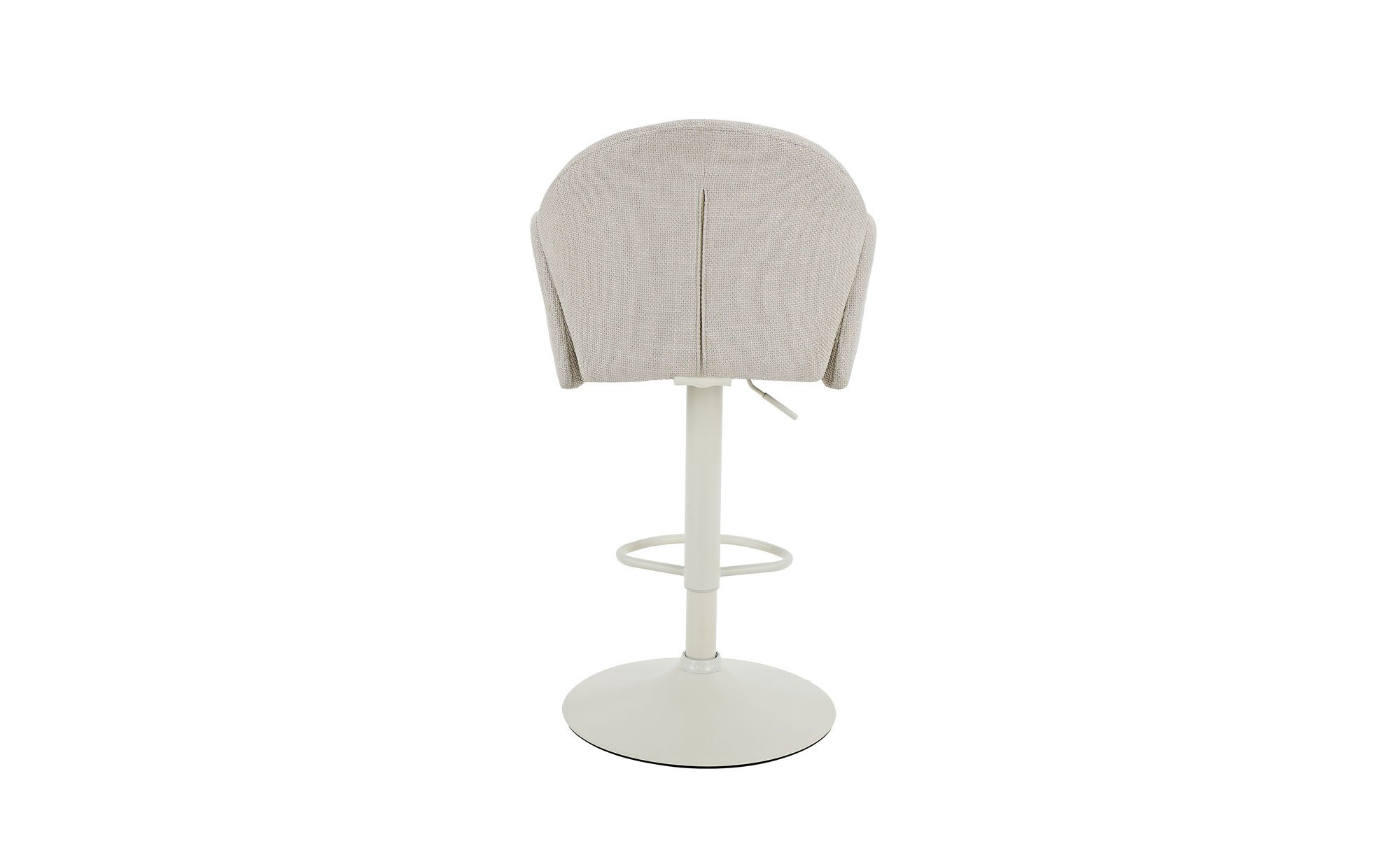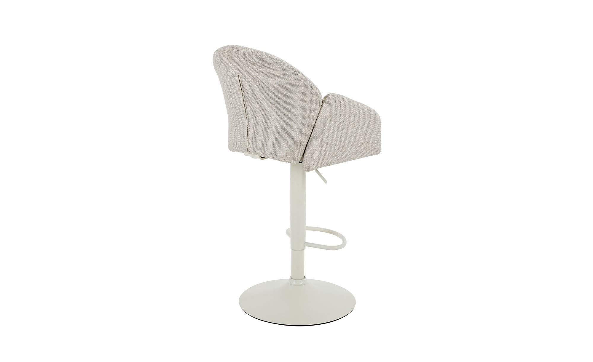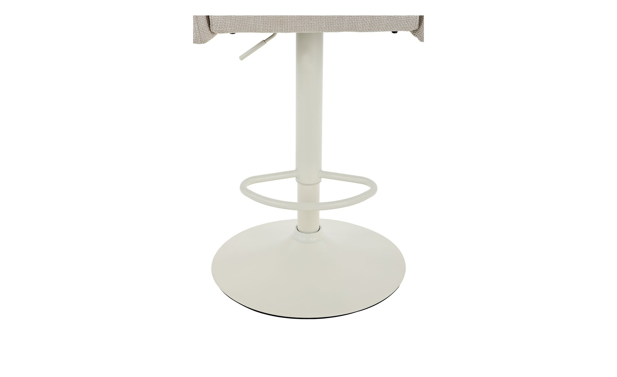 Das cremefarbige Trompetengestell aus pulverbeschichtetem Metall sorgt für sicheren Stand und trägt den Sitzbereich zuverlässig. Der Sitz ist mit einem beigen Mikrofaser-Webstoff aus 100 % Polyester bezogen und harmoniert stilvoll mit dem Gestell.