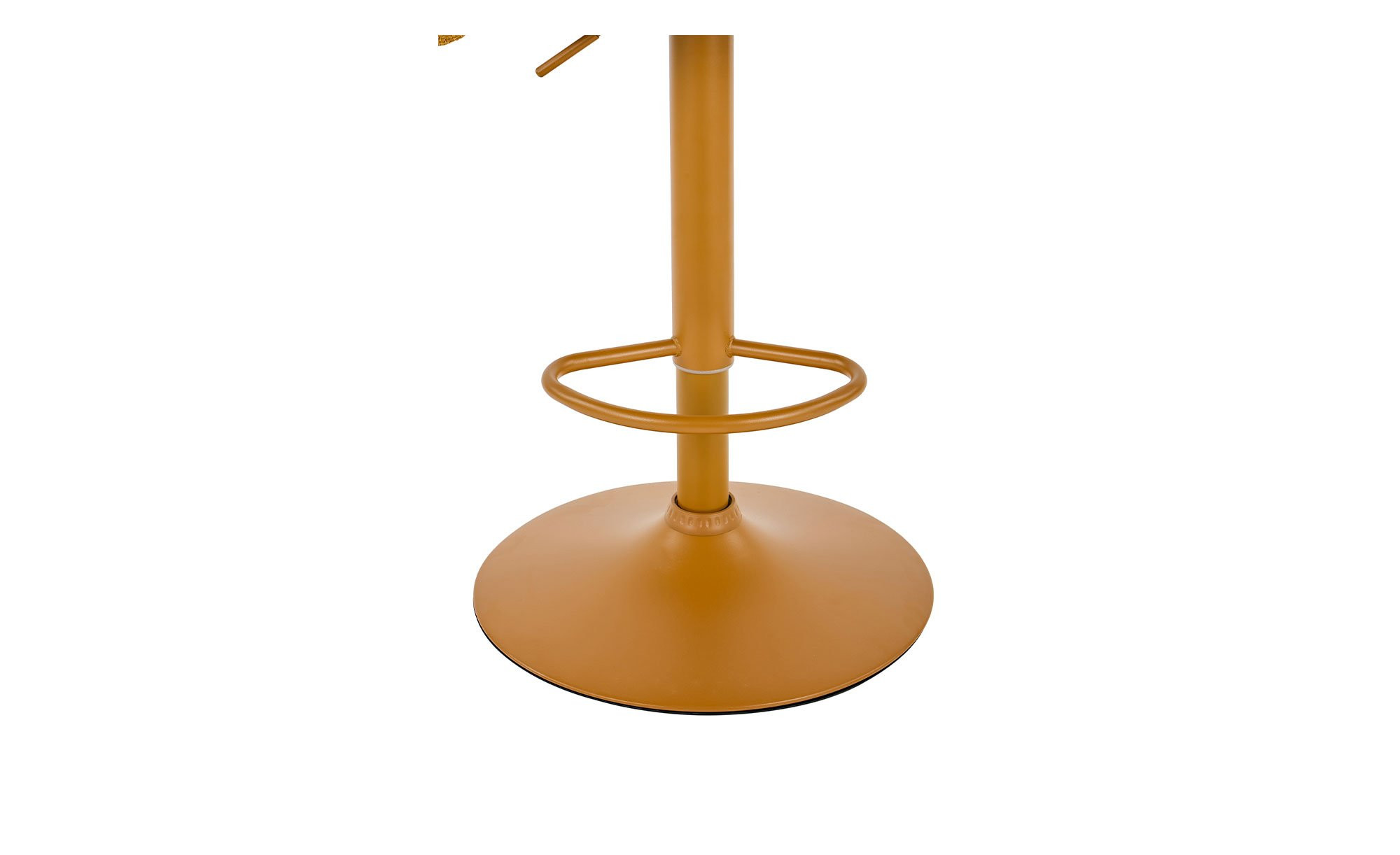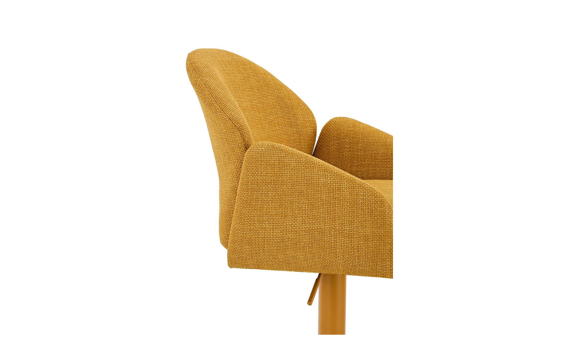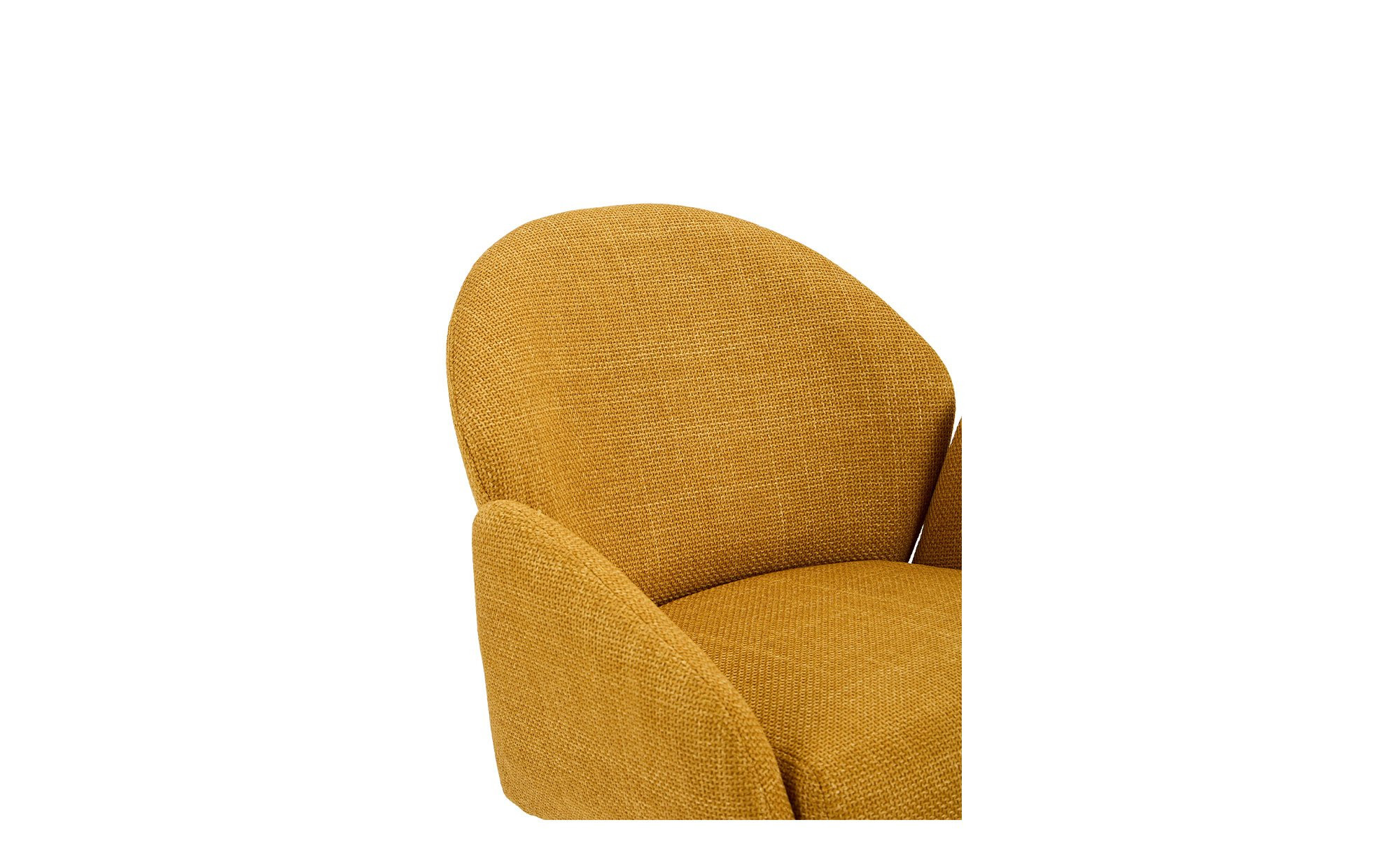 Ein pulverbeschichtetes Metallgestell in Gelb und klassischer Trompetenform verleiht dem ca. 52 x 96 x 53 cm großen Möbelstück seine stabile Basis. Der Sitz ist mit einem hochwertigen Mikrofaser Webstoff aus 100 % Polyester im gleichen Farbton bezogen.