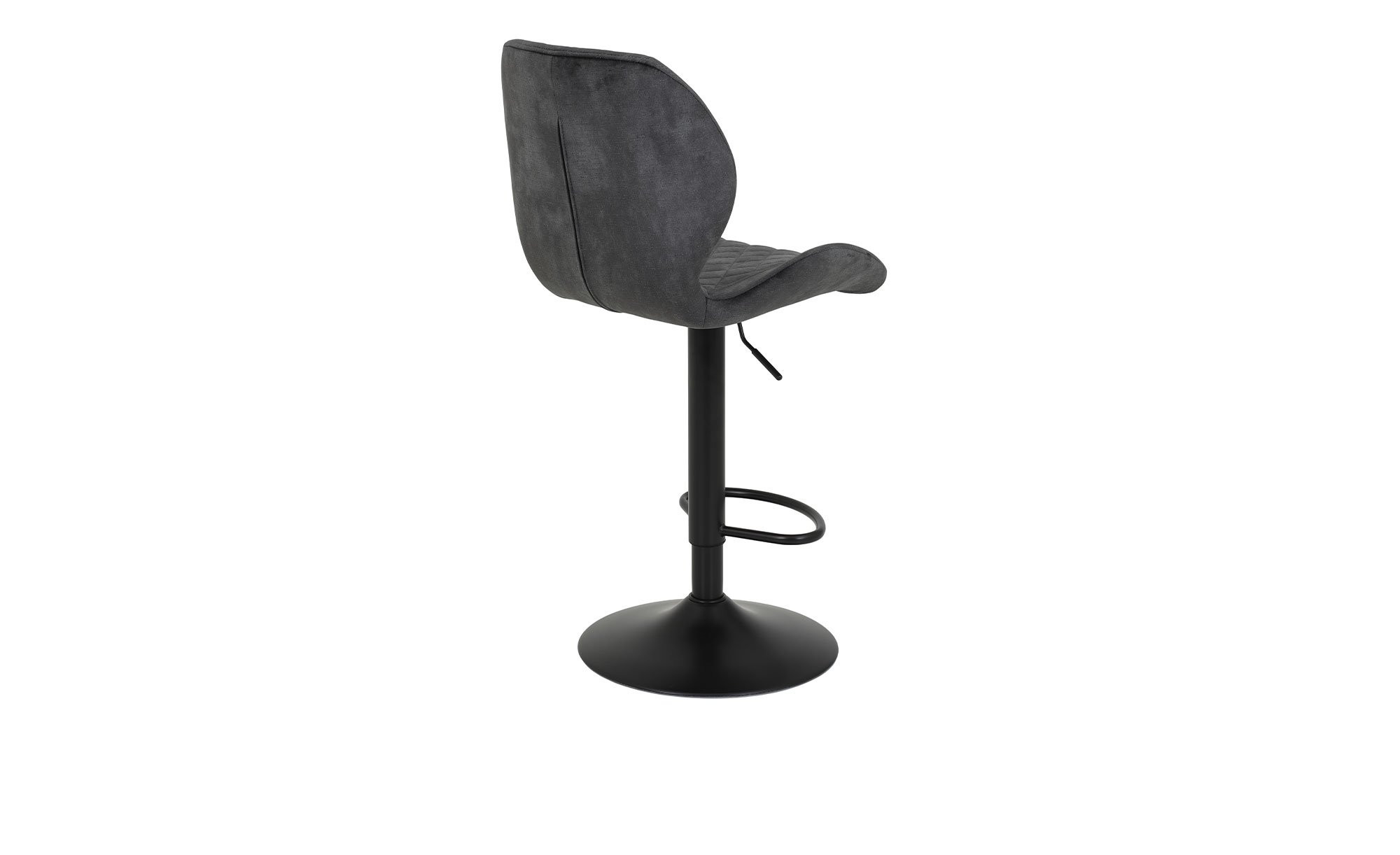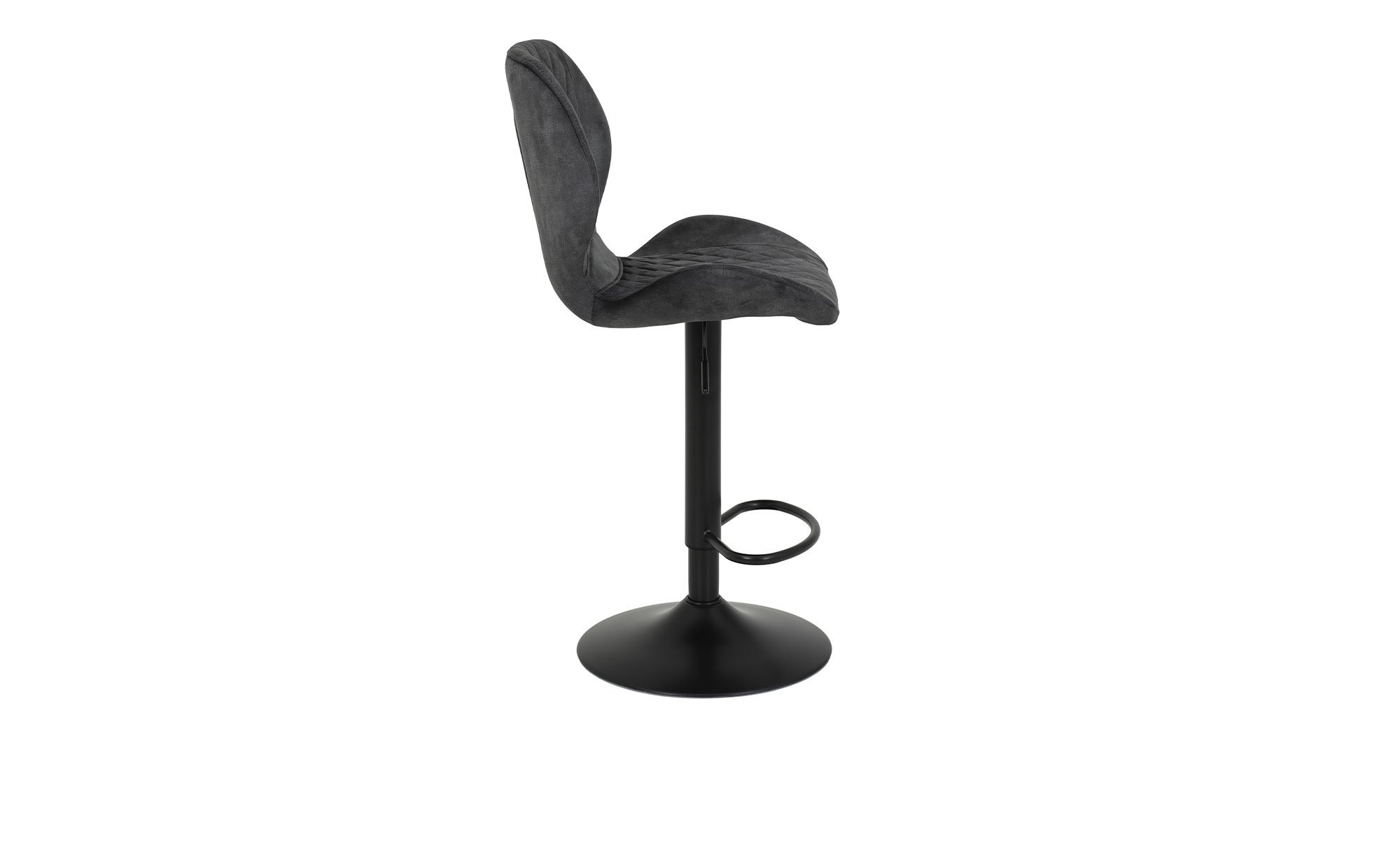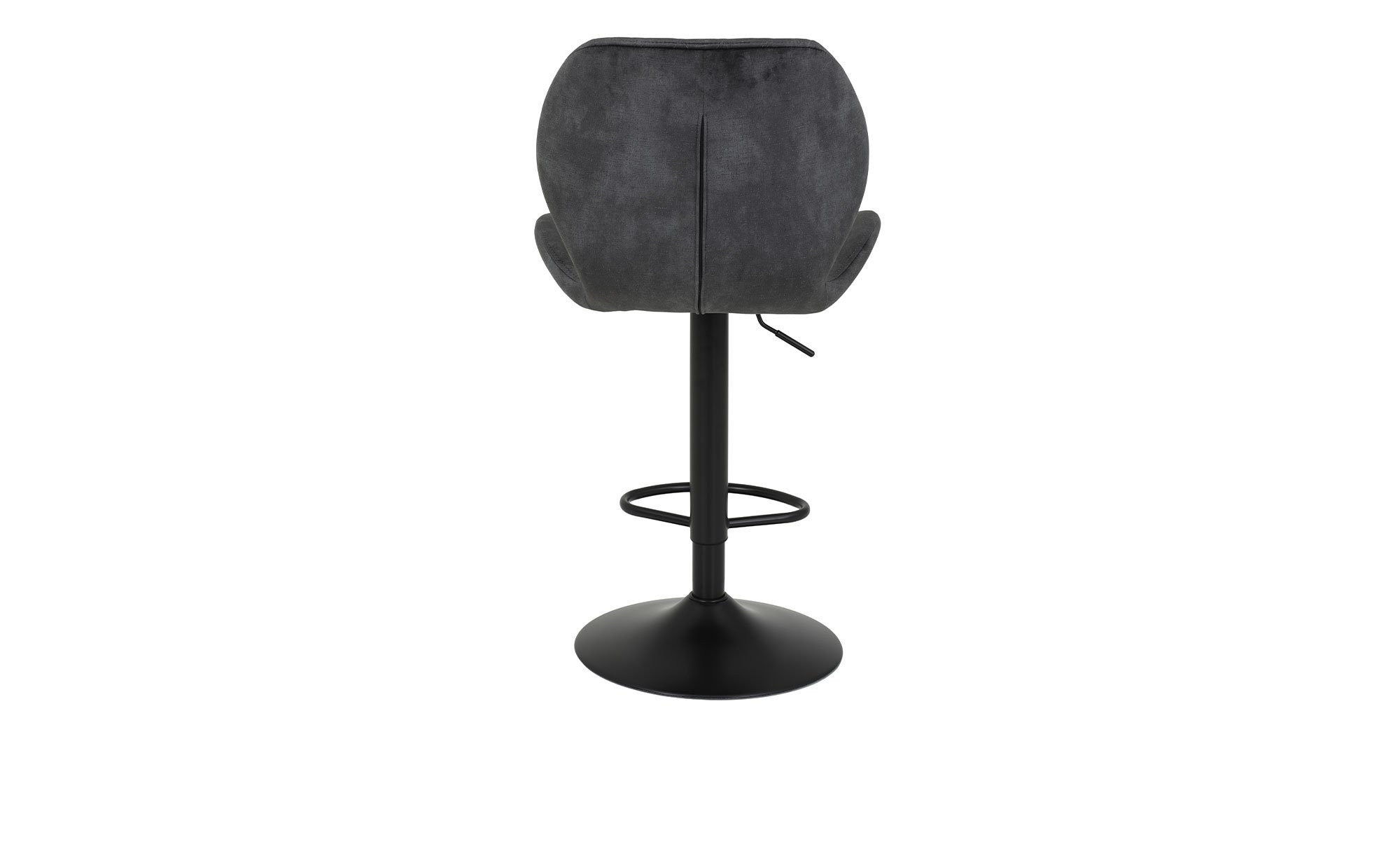 Ein aus 100 % Polyester bestehender Mikrofaser Samtvelours-Bezug in Vintage-Optik zieht unmittelbar die Blicke auf sich. Mit seiner Farbe Anthrazit passt er zudem bestens zum schwarzen Trompetengestell aus pulverbeschichtetem Metall.