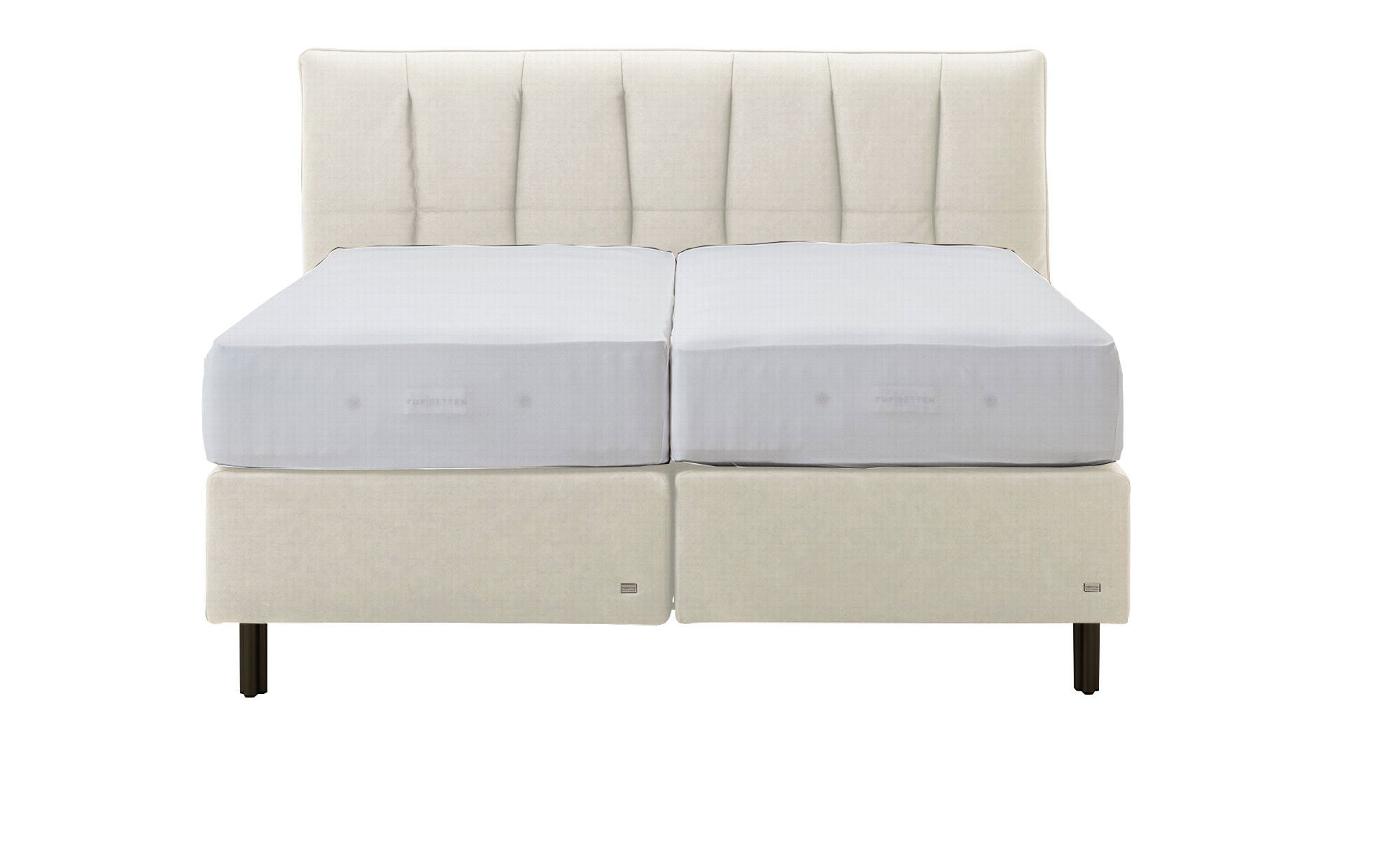 Die Liegefläche misst ca. 180 x 200 cm und setzt sich aus zwei Boxen und ca. 25 cm hohen Tonnentaschenfederkern-Matratzen in den Härtegraden H2 und H3 zusammen.