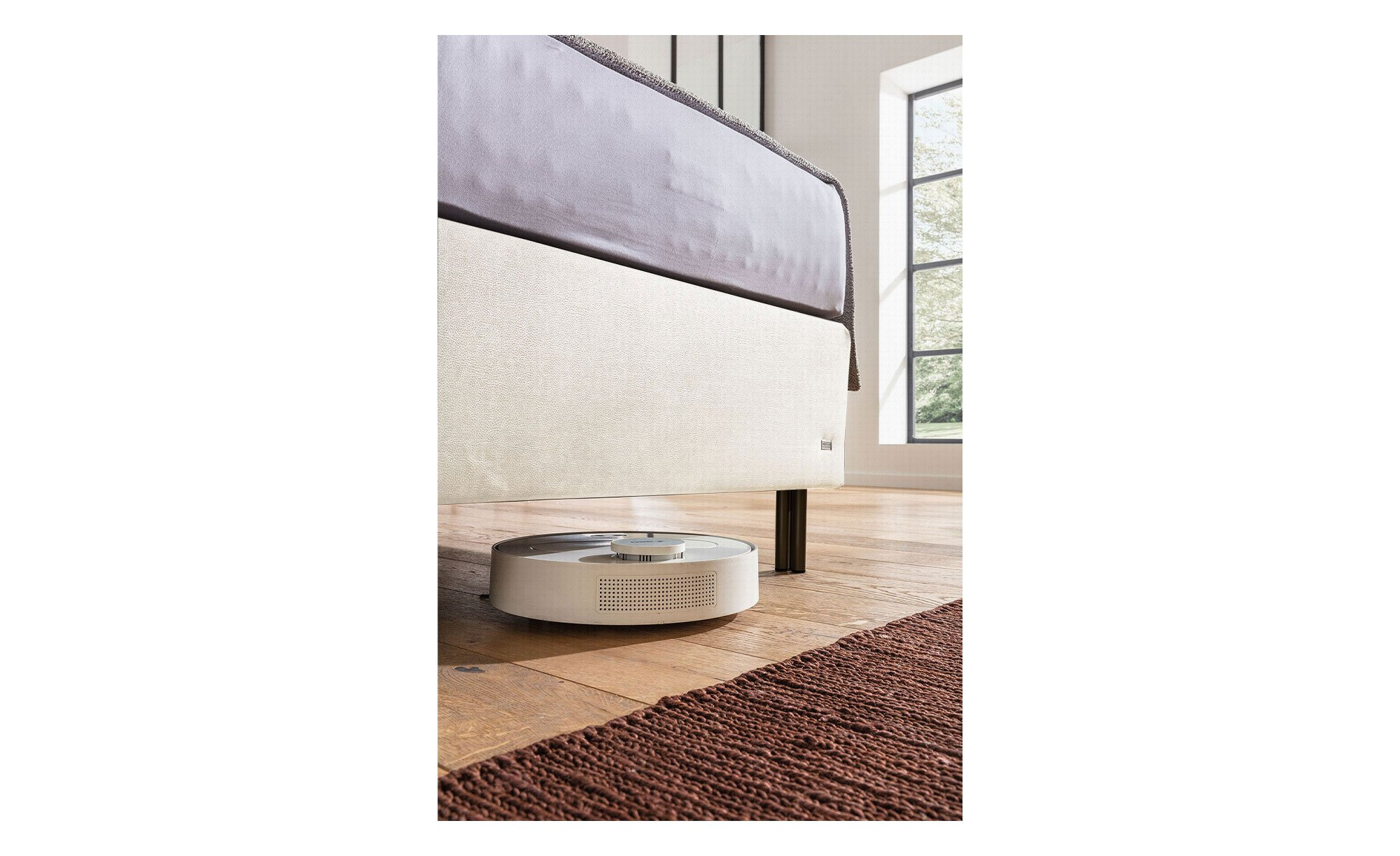- Bett mit neuartigem Boxspring-Unterbau in Komforthöhe, d.h. mit 3 intelligent aufeinander abgestimmten Schlafebenen und AIRVent Belüftungssystem