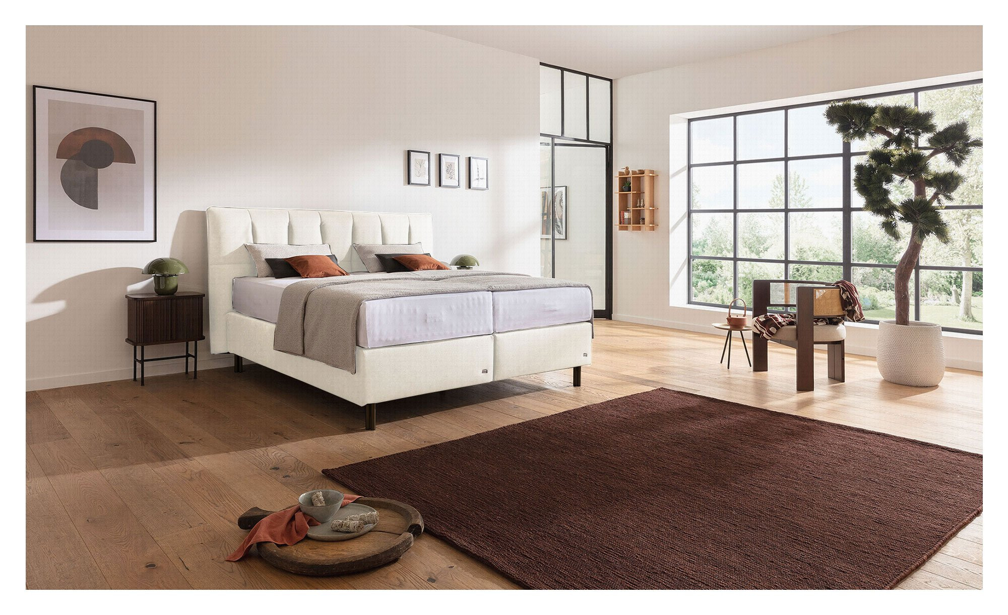 Mit dem Basis-Boxspringbett Tokyo verwandeln Sie Ihr Schlafzimmer in einen stilvollen Rückzugsort voller Ruhe und Behaglichkeit.