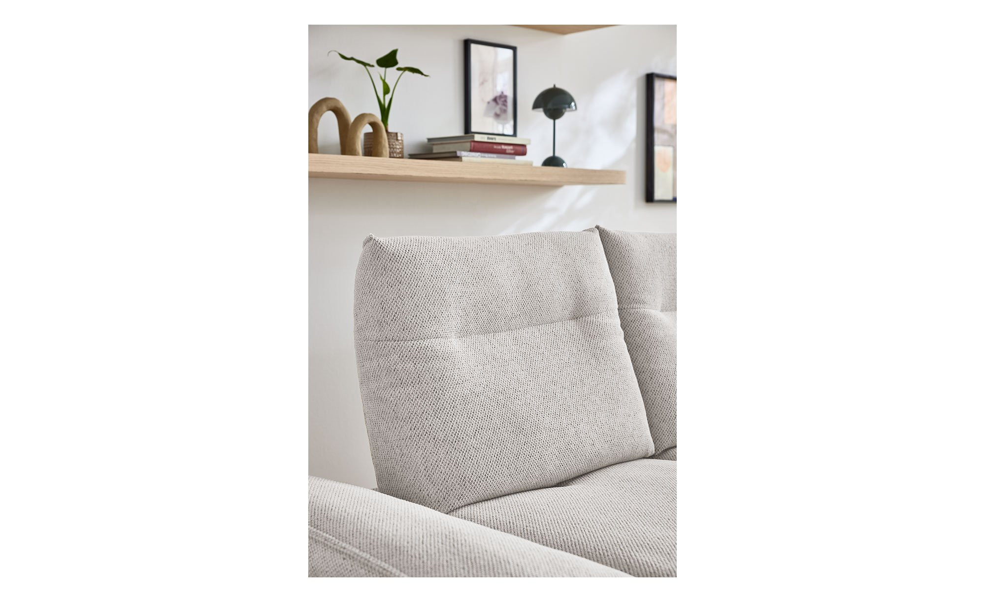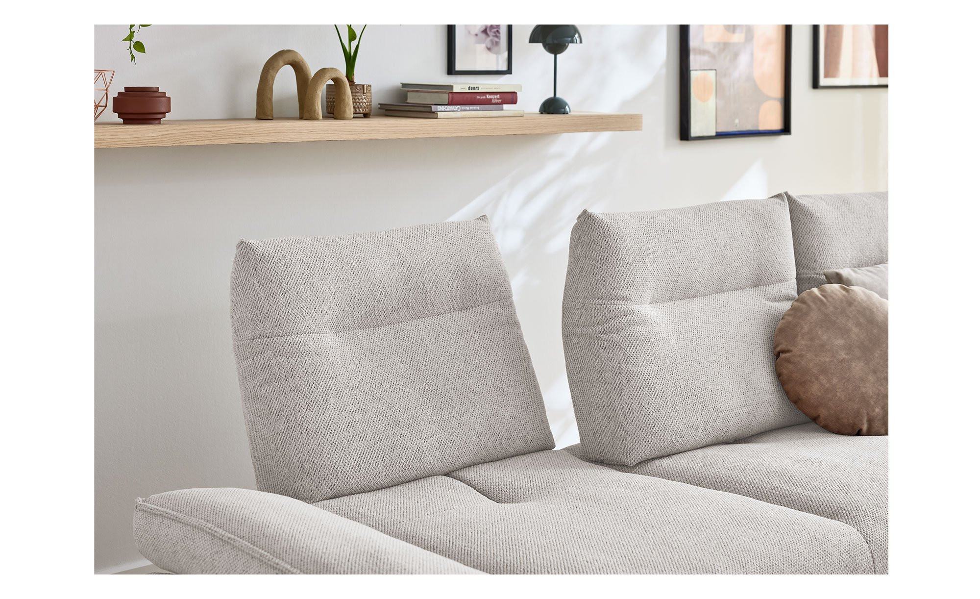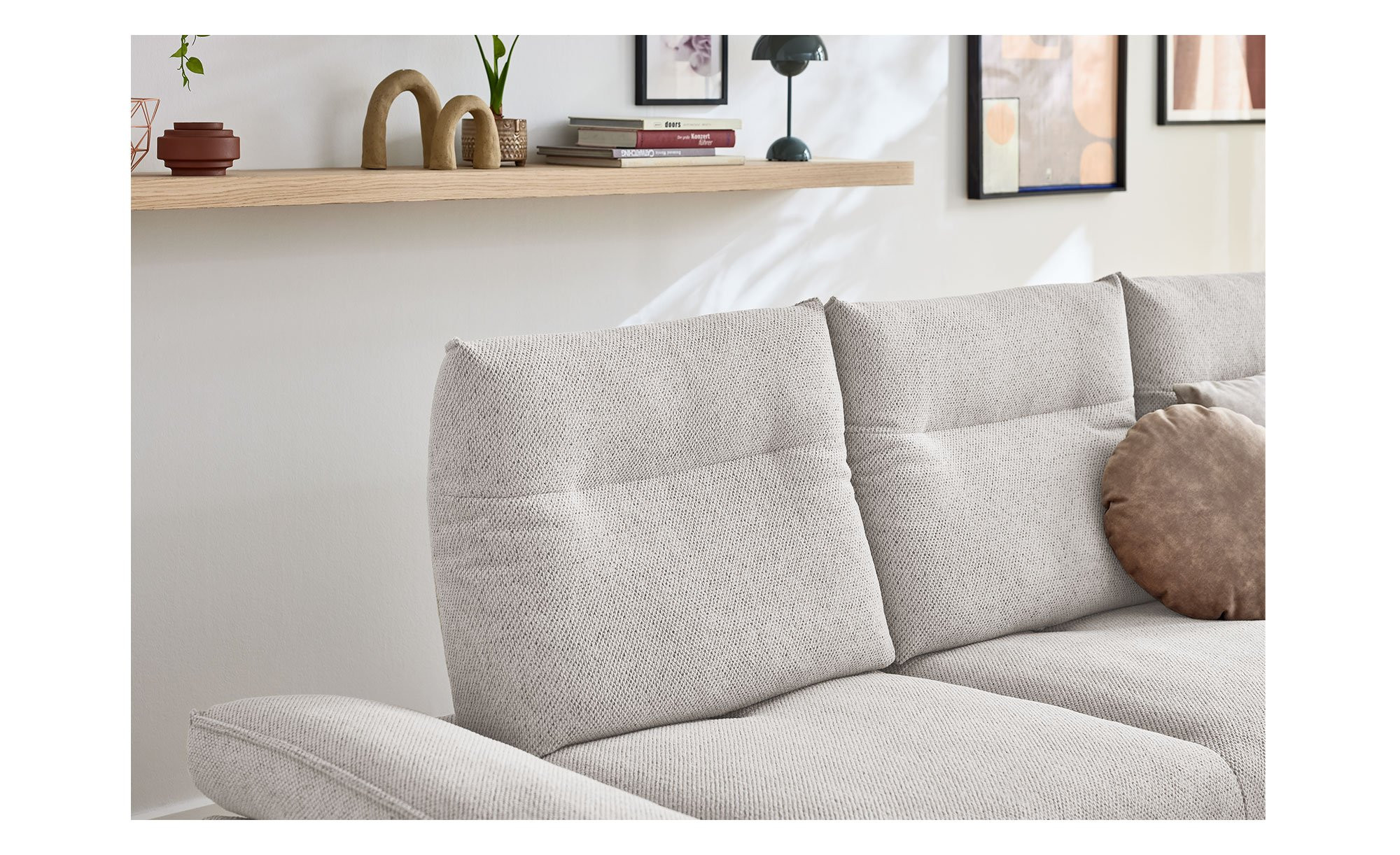 Besonders hohen Komfort erzeugt im Sitzbereich ein Polsteraufbau aus ergo-PUR-Schaum in Kombination mit einer hochwertigen Mischung aus in Kammern gefüllten Polyesterfasern und Schaumstoffstäbchen. Dauerelastische Wellenfedern sorgen in der Unterkonstruktion für zusätzliche Unterstützung. Auch der Rücken ist mit flexiblen Polstergurten sowie ebenfalls einer Kammerfüllung aus Polyesterfasern und Schaumstoffstäbchen auf Gemütlichkeit ausgelegt.