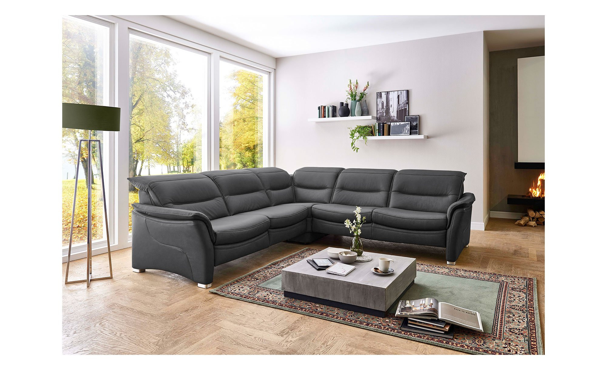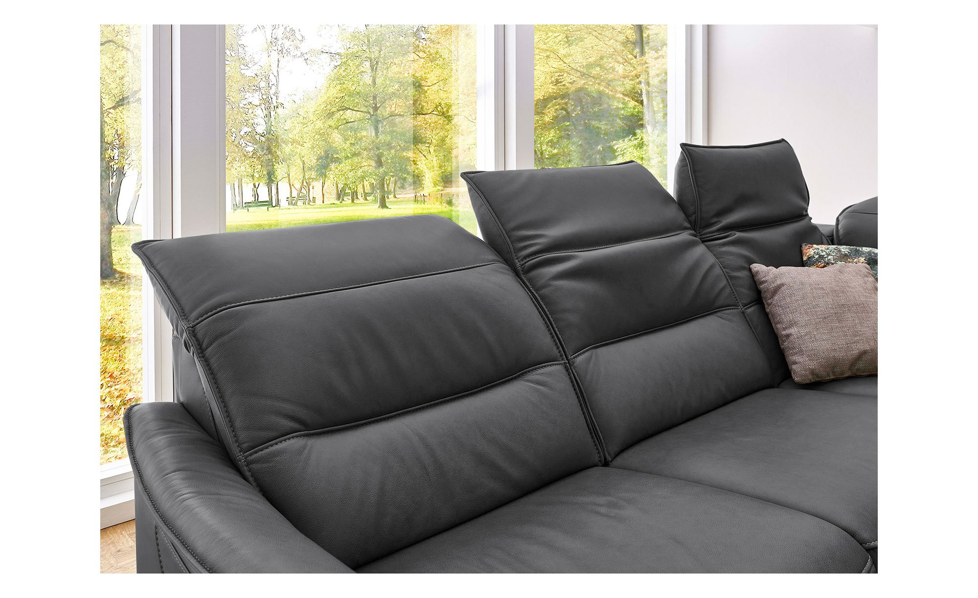 Im ca. 46 cm hohen Sitz des linksseitig ausgerichteten Sofas erwartet Sie eine H2L-Superflex-Polsterung mit voll durchgeschäumtem Federkern. Darüber hinaus gibt es eine Wellenunterfederung in der Unterkonstruktion sowie hochelastische Polstergurte mit hochwertigem Kaltschaum im Rücken. Auch eine variable Kopfteilverstellung wurde integriert.