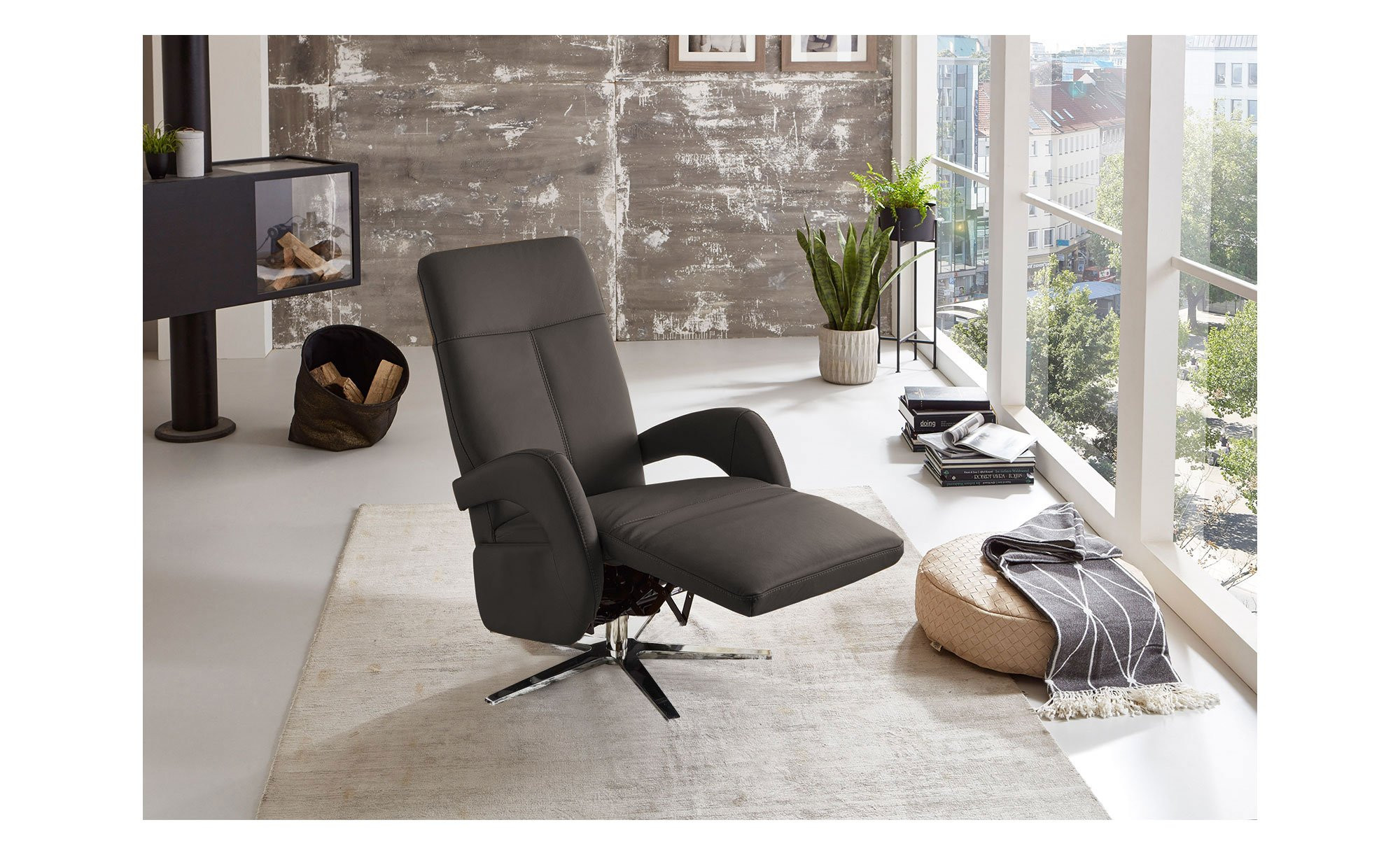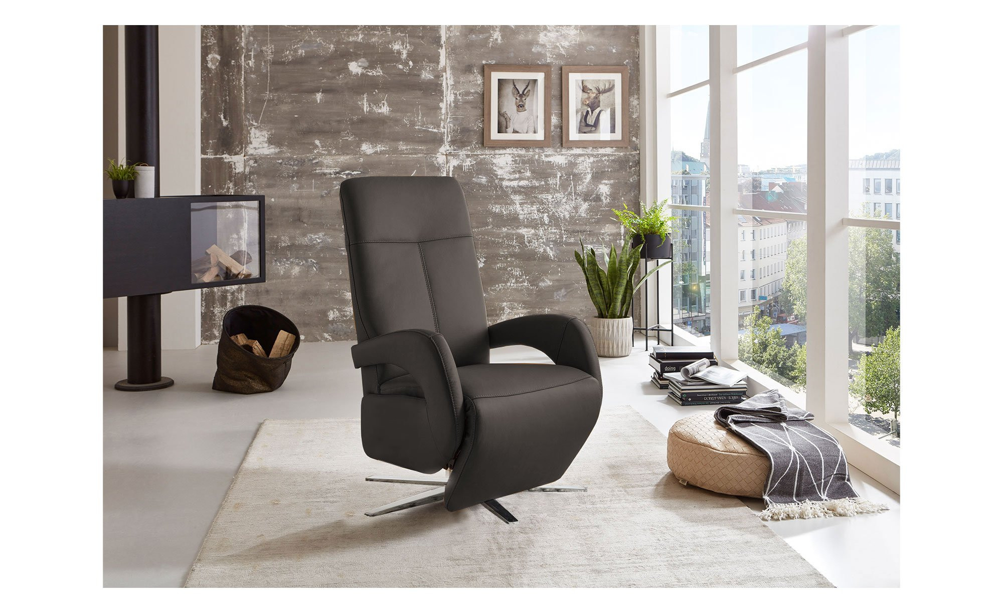 Das Möbelstück in der Ergonomiegröße M2 überzeugt durch einen Bezug aus echtem Leder im eleganten Farbton Elephant. Mit Maßen von ca. 67 x 109 x 80 cm und einem echten Rücken bietet es zudem maximale Flexibilität bei der Platzierung. Ein edler Hingucker ist auch der ca. 5 cm hohe Metallfuß in einem hochglänzenden Chrom-Look.