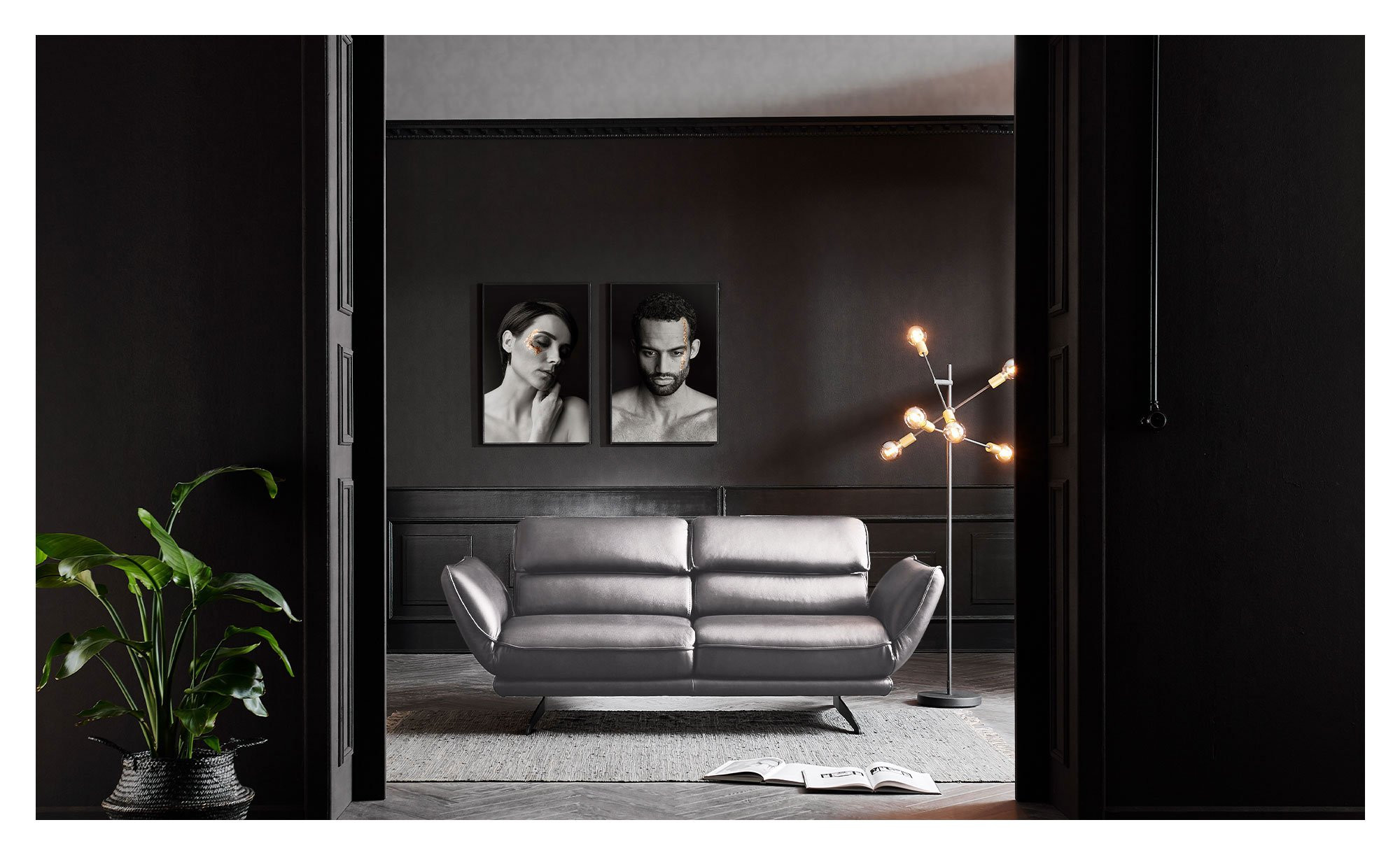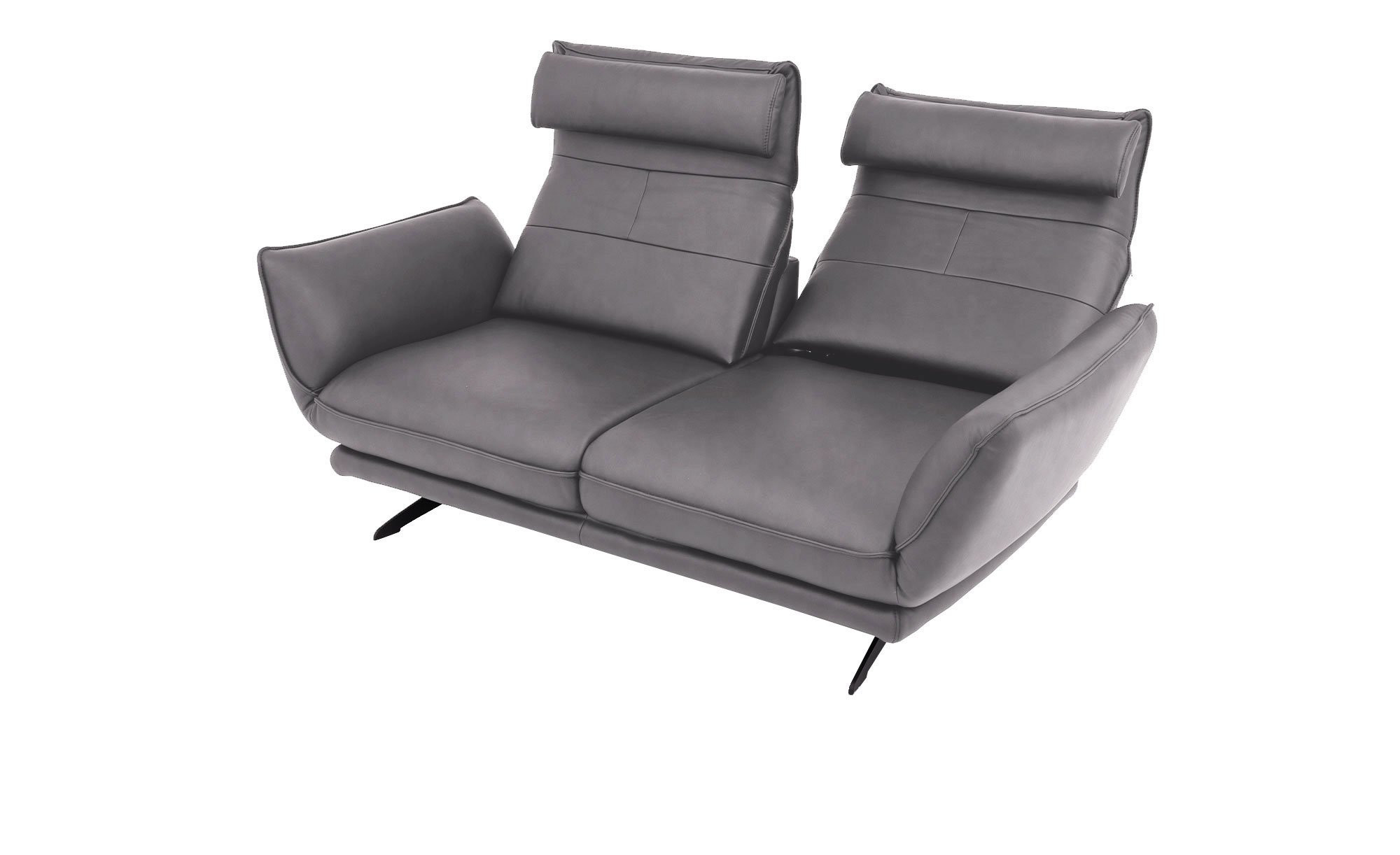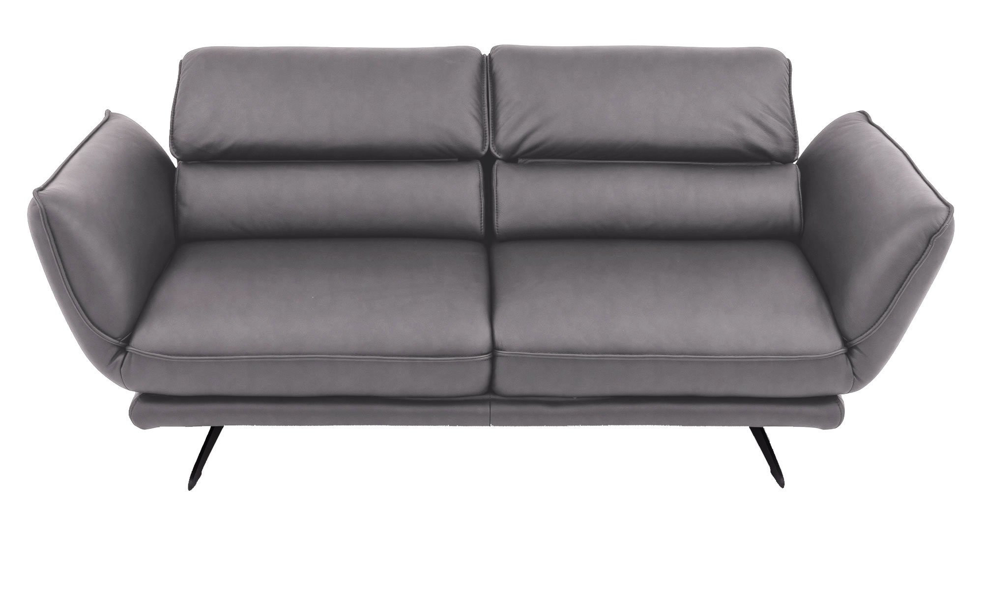 Mit seinem Echtleder-Bezug in der Farbe Granit bringt das ca. 195 x 84-109 x 98 cm große Sofa eine hochwertige Atmosphäre in Ihr Zuhause. Da auch der Rücken echt bezogen ist, stehen Ihnen flexible Stellmöglichkeiten offen. Elegante schwarze Metallfüße mit einer Höhe von ca. 16 cm vervollständigen das moderne Erscheinungsbild.
