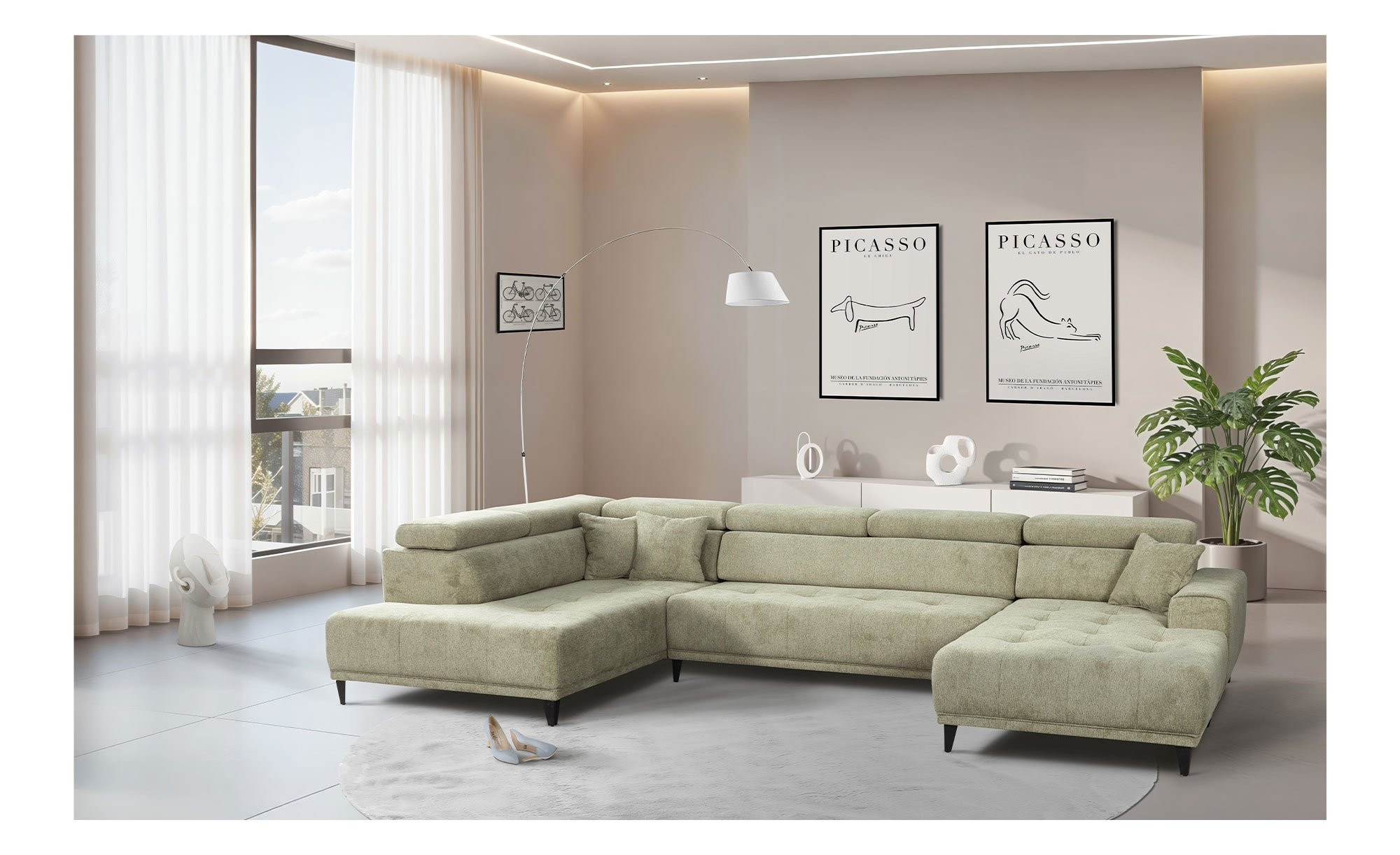 Die Basis-Wohnlandschaft LIV'IN Chania hat Maße von ca. 392 x 85 x 229 cm. Dank integrierter Kopfteilverstellung lässt sich die Höhe auf bis zu ca. 105 cm anpassen. Zusätzlich bietet die Ottomane praktischen Stauraum in Form eines Bettkastens.