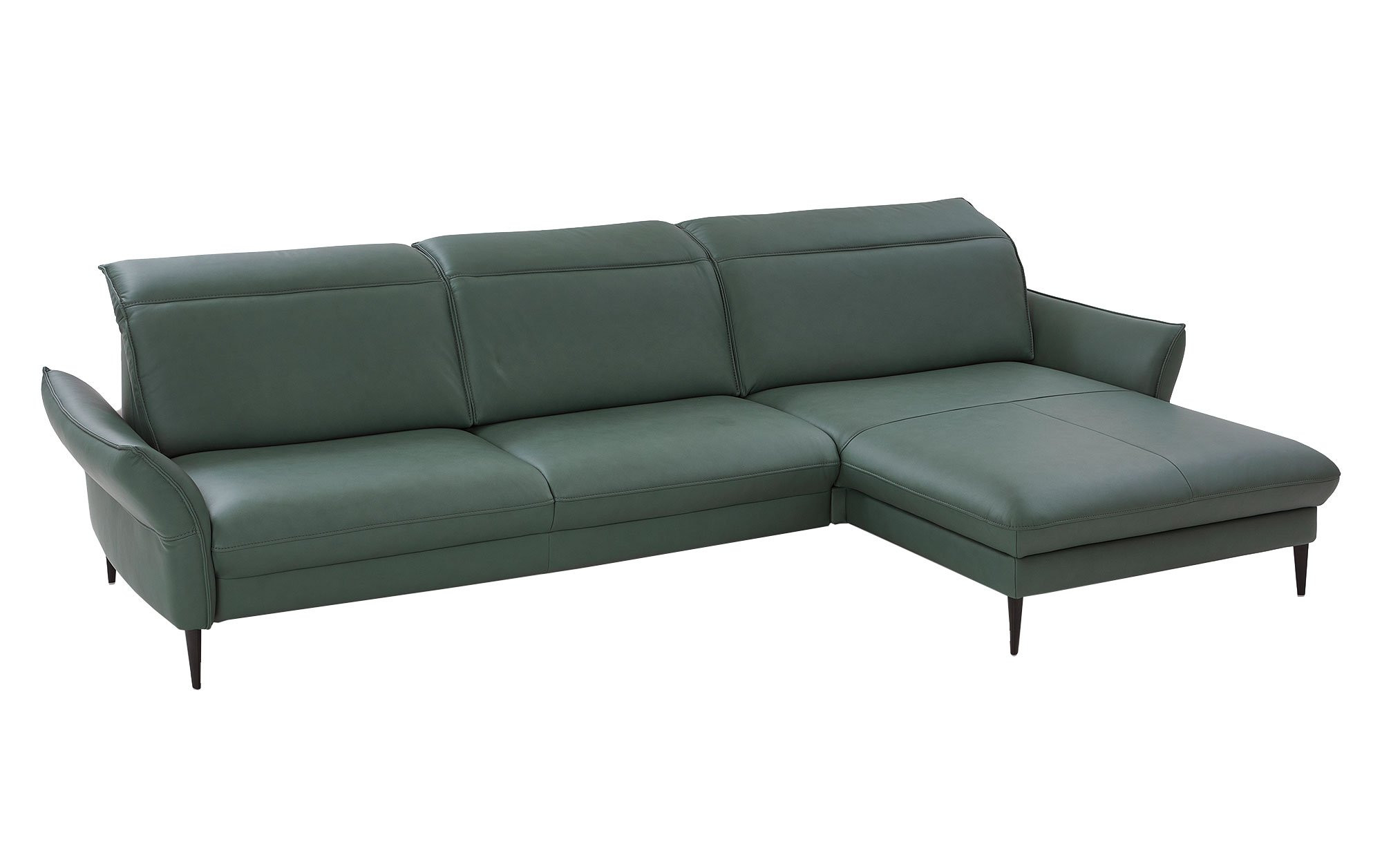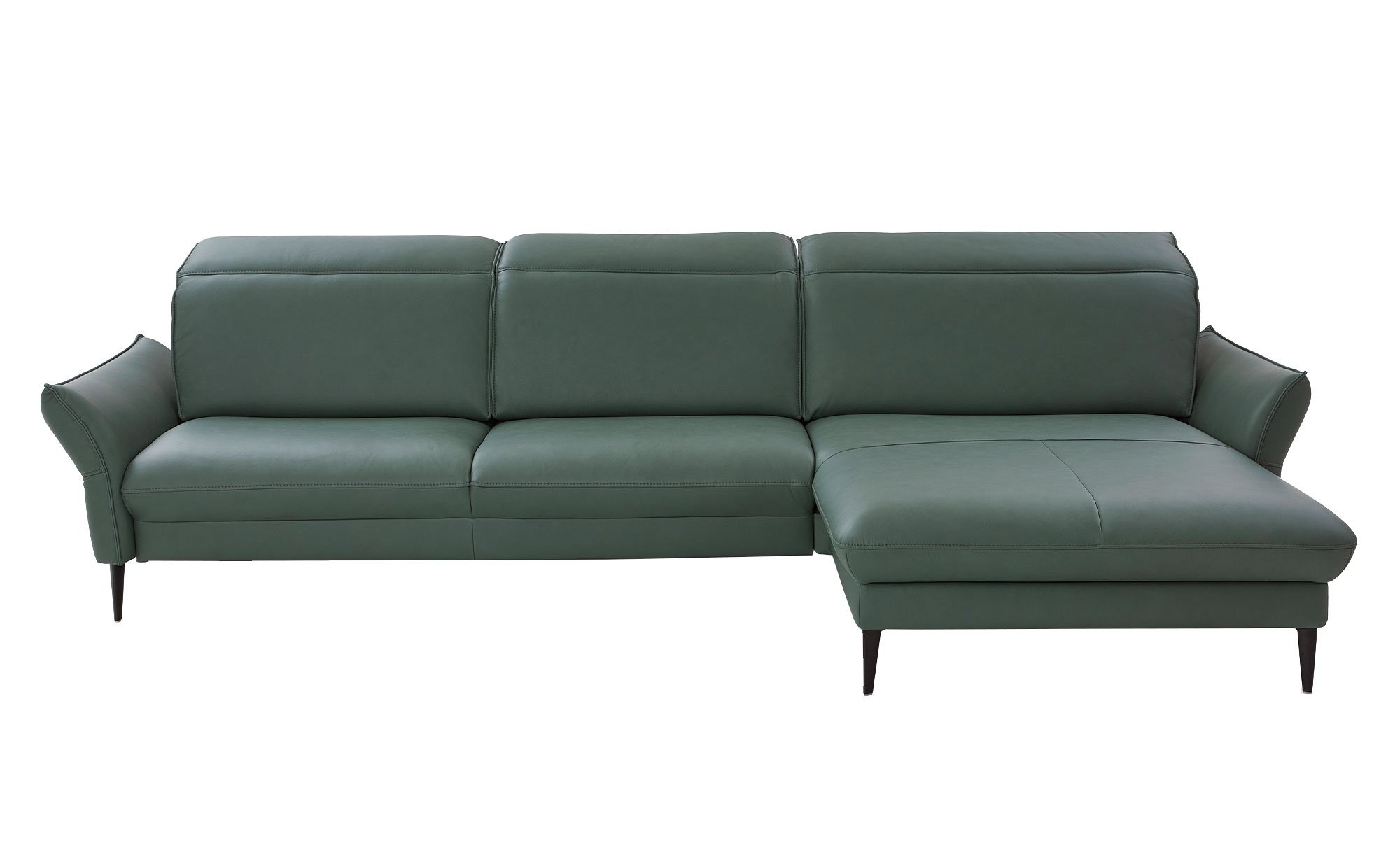 Im Sitz des rechtsseitig ausgerichteten Sofas erwartet Sie ein voll durchgeschäumter Federkern. Er ist von Polstervlies ummantelt und garantiert in der Sitzqualität Weich eine herrliche Gemütlichkeit. Als Unterstützung fungieren dauerelastische Wellenfedern in der Unterkonstruktion. Wenn Sie sich anlehnen, kommen Sie in den Genuss der hochelastischen Polstergurte und des Kaltschaums des Rückens. Eine Kopfteilverstellung gewährleistet individuelle Anpassungsmöglichkeiten.