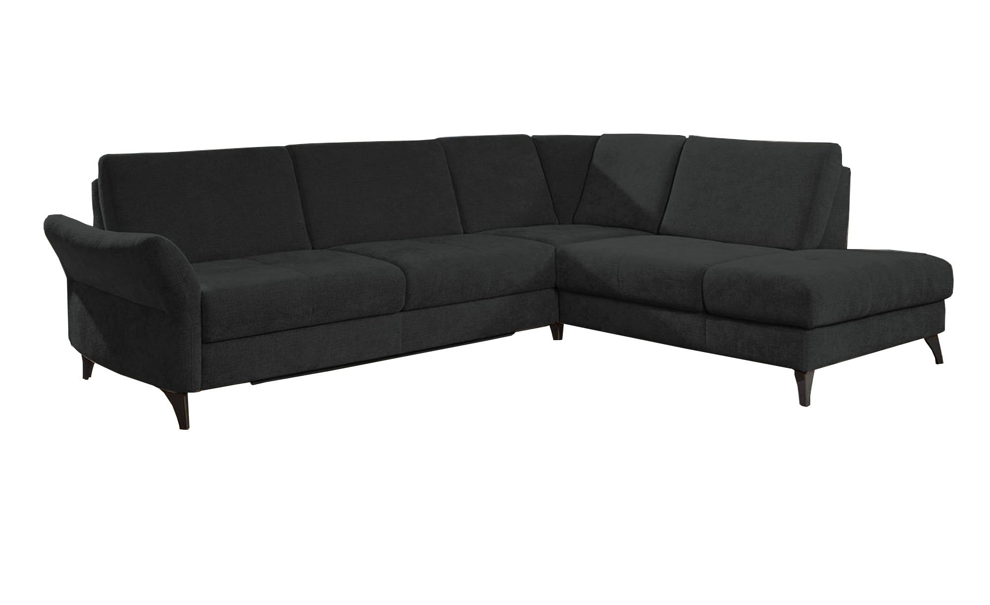 Das rechtsseitig ausgerichtete Sofa ist mit einem Chenille-Bezug aus 100 % Polyester in der Farbe Anthrazit versehen. Da auch der Rücken vollständig mit diesem Material bezogen ist, lässt sich das Möbelstück optional sogar frei im Raum platzieren. Ein stabiles Grundgerüst aus Hartholz und Holzwerkstoffen bildet die Basis, während ca. 13 cm hohe Metallfüße in Schwarz das Gesamtbild stilvoll abrunden.