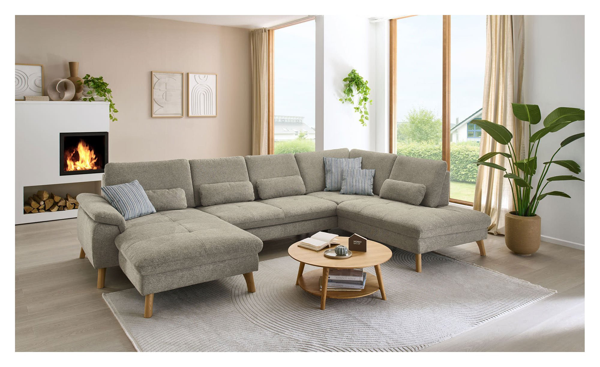Die Basis-Wohnlandschaft Livento lässt sich vielseitig anpassen. Wählen Sie dafür z. B. aus zwei Sitzhöhen, zwei Sitzqualitäten und drei Fußvarianten. Zusätzlich stehen zahlreiche Stoff- und Farbalternativen zur Verfügung. Gegen Mehrpreis erhalten Sie auch eine motorische Verstellung und eine Kopfstütze im Canapé, eine Sitztiefenverstellung sowie eine Armteilverstellung. Die optionale Schlaffunktion schafft bei Bedarf eine Liegefläche von ca. 220 x 135 cm. Auch passende Kissen sind bei uns erhältlich.