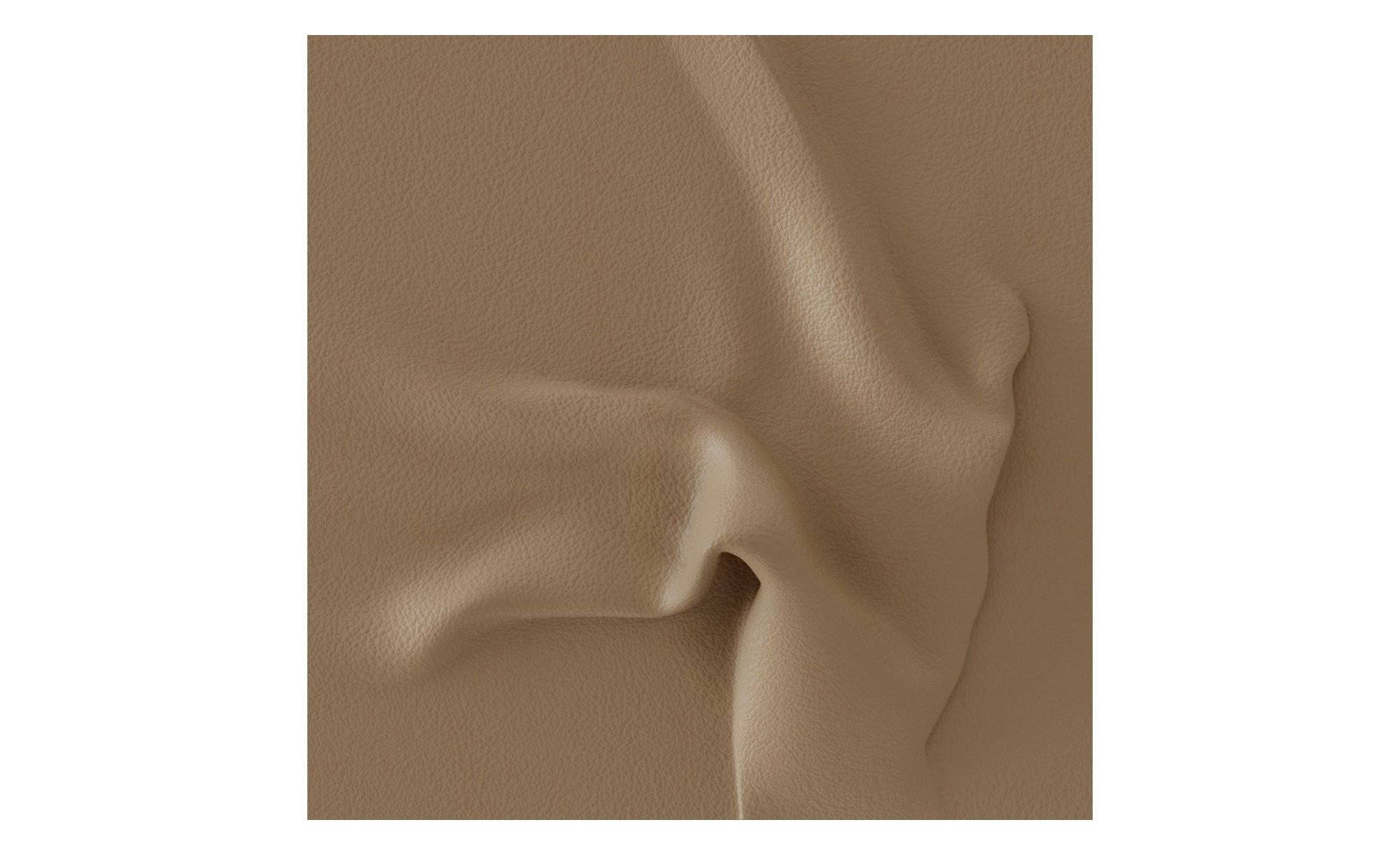Bezogen ist das rechtsseitig ausgerichtete Möbelstück mit echtem Leder in der Farbe Nougat. Schwarze Metallfüße mit einer Höhe von ca. 18 cm setzen zusätzlich einen eleganten Akzent.