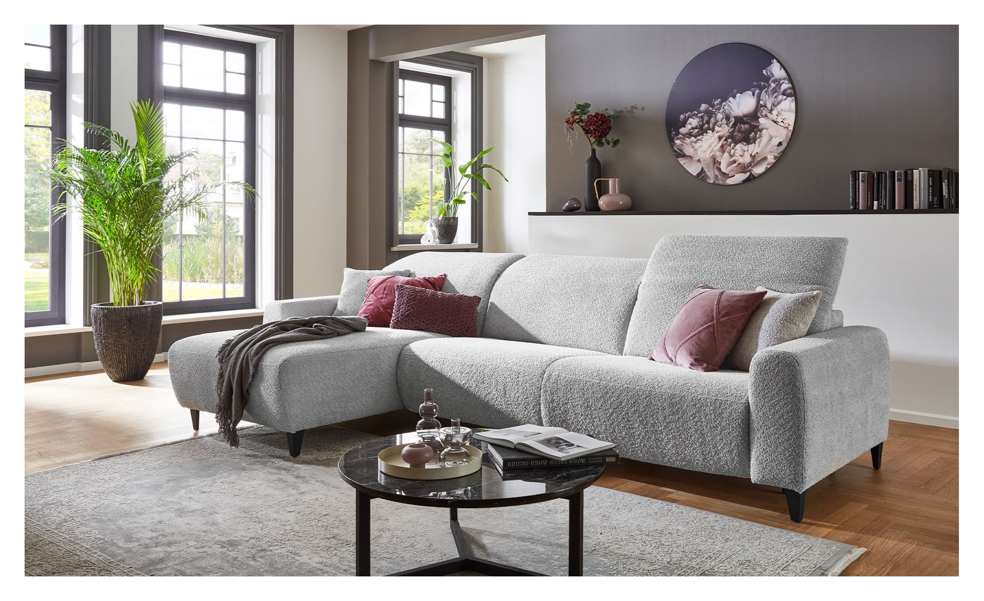 Im Sitz des linksseitig ausgerichteten Möbelstücks erwartet Sie eine Kombination aus Kaltschaum und Nosagunterfederung, die angenehmen Komfort garantiert. Darüber hinaus überzeugt die Ausstattung durch verstellbare Kopfteile.