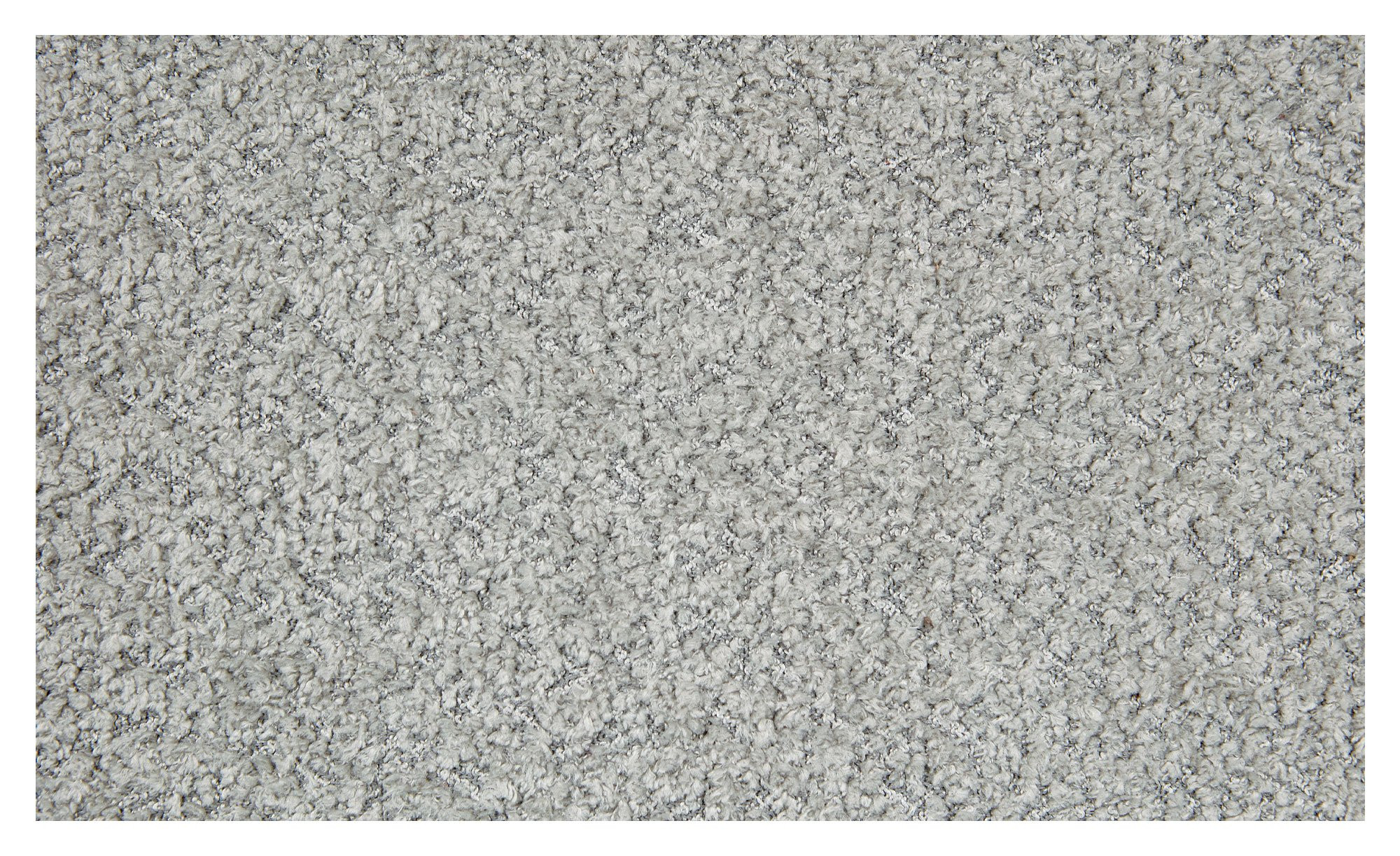 Das ca. 315 x 82 / 111 x 183 cm große Sofa ist mit einem silbernen Stoff aus 100 % Polyester bezogen. Dieser erstreckt sich über den gesamten Rücken sowie über die beiden mitgelieferten Zierkissen. Für ein elegantes Gesamtbild sorgen zudem schwarze Metallfüße mit einer Höhe von ca. 12 cm.