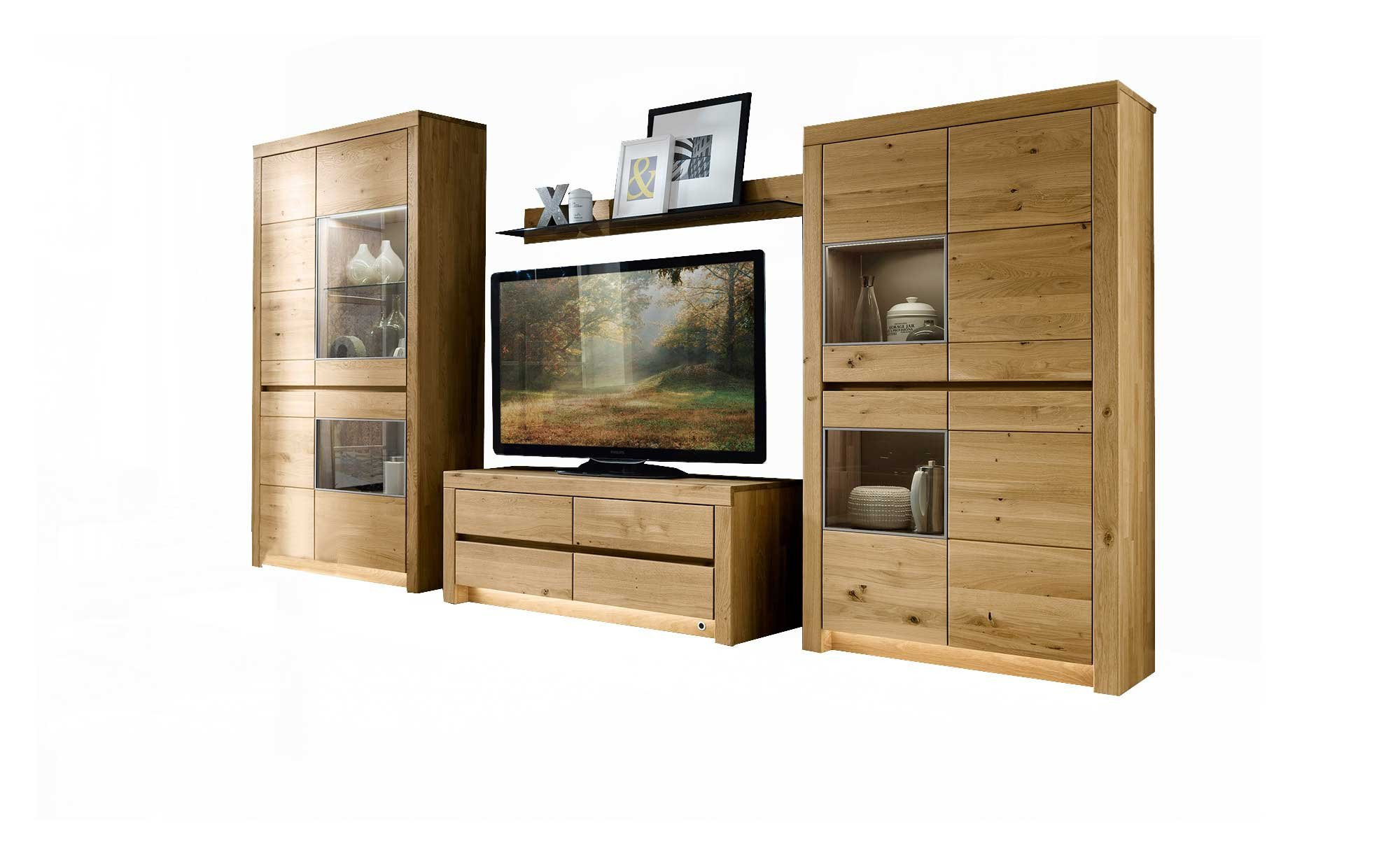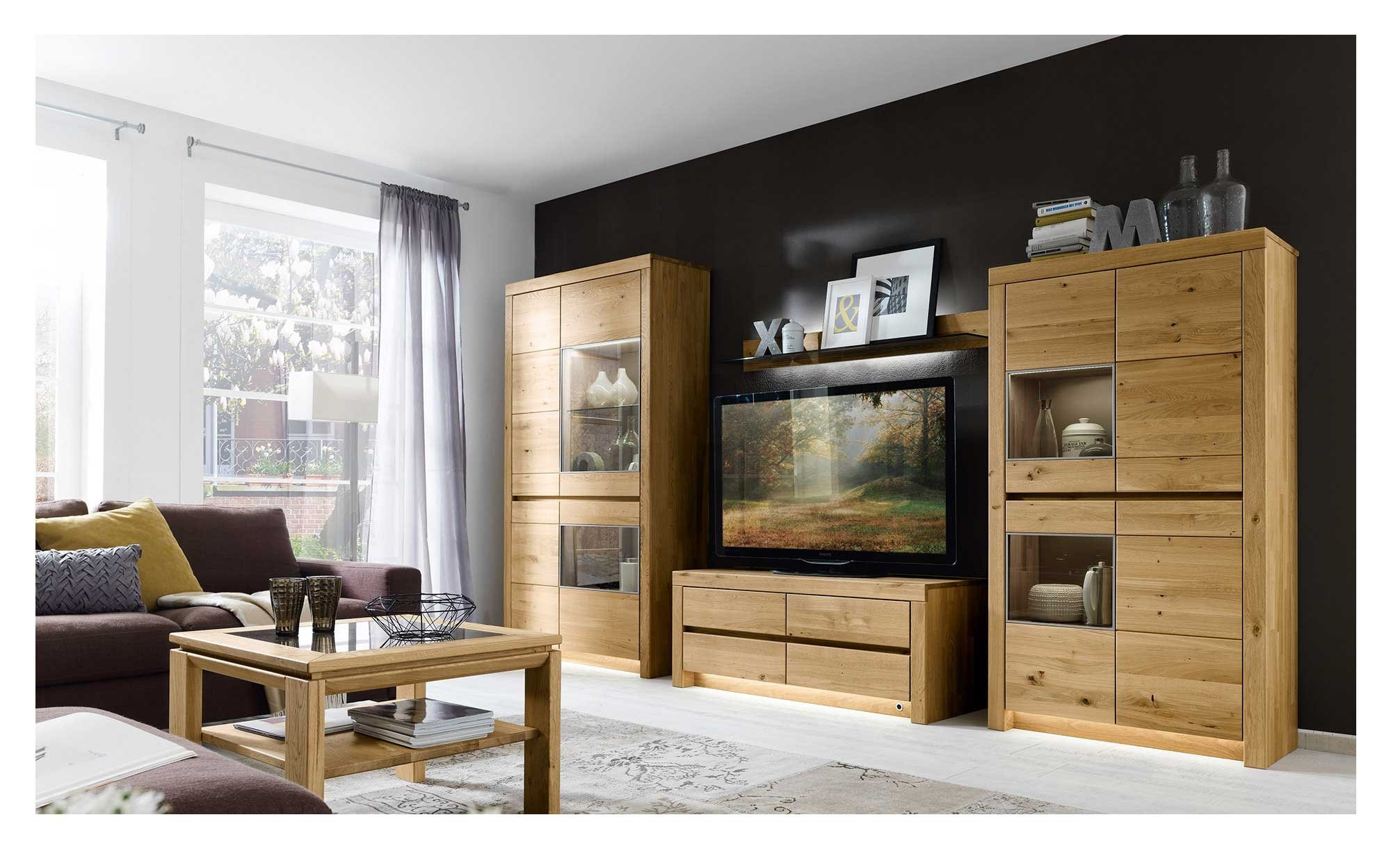 Ein natürliches Design und hochwertige Materialien verbinden sich bei der Basis-Wohnwand Parma zu einer warmen, wohnlichen Atmosphäre.