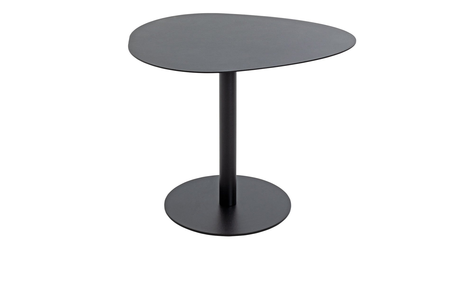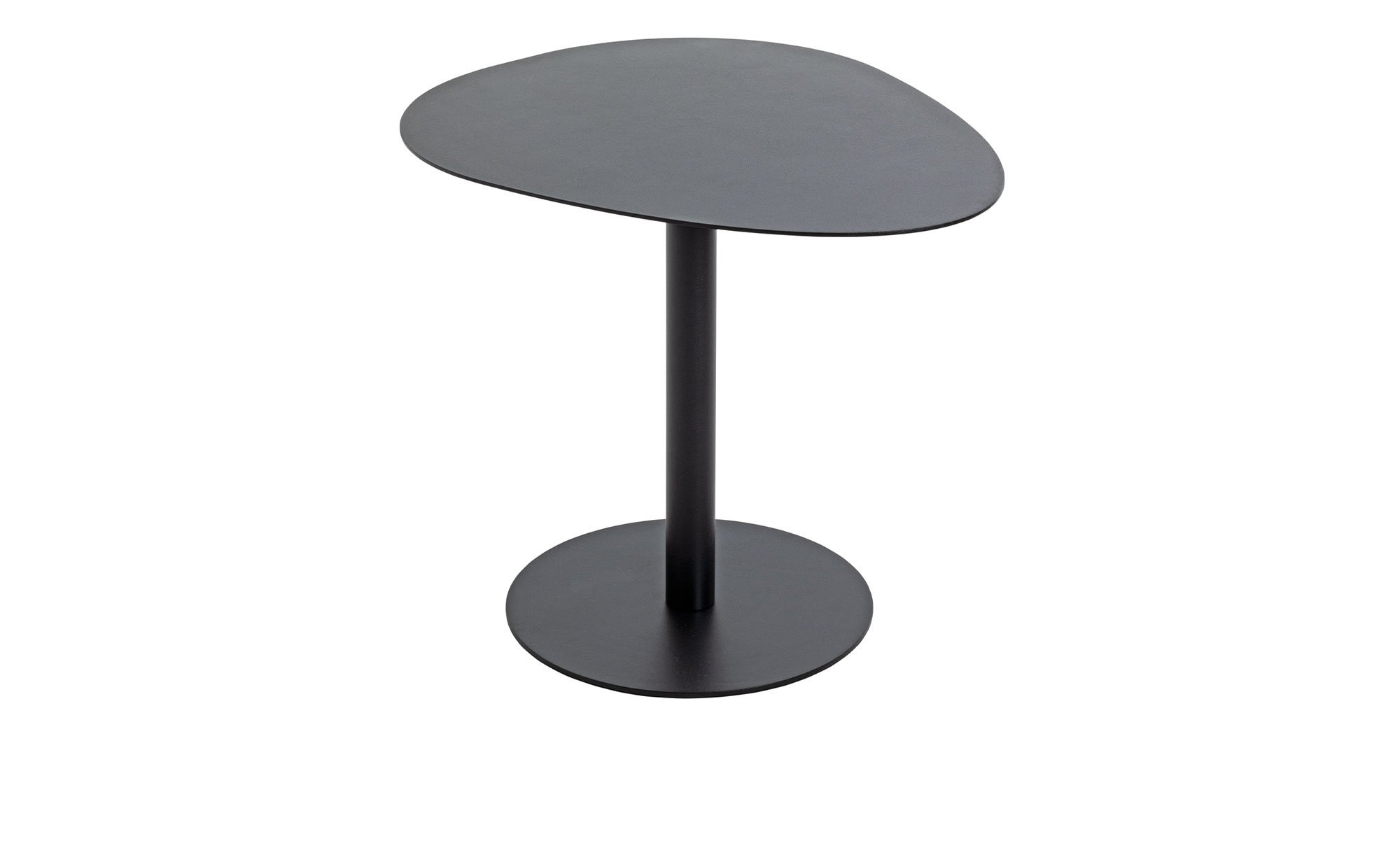 Das ca. 51 x 42 x 41 cm große Möbelstück besteht komplett aus schwarzem Metall mit Pulverbeschichtung. Seine Platte ist mit ihrer besonderen Form ein absoluter Eyecatcher.