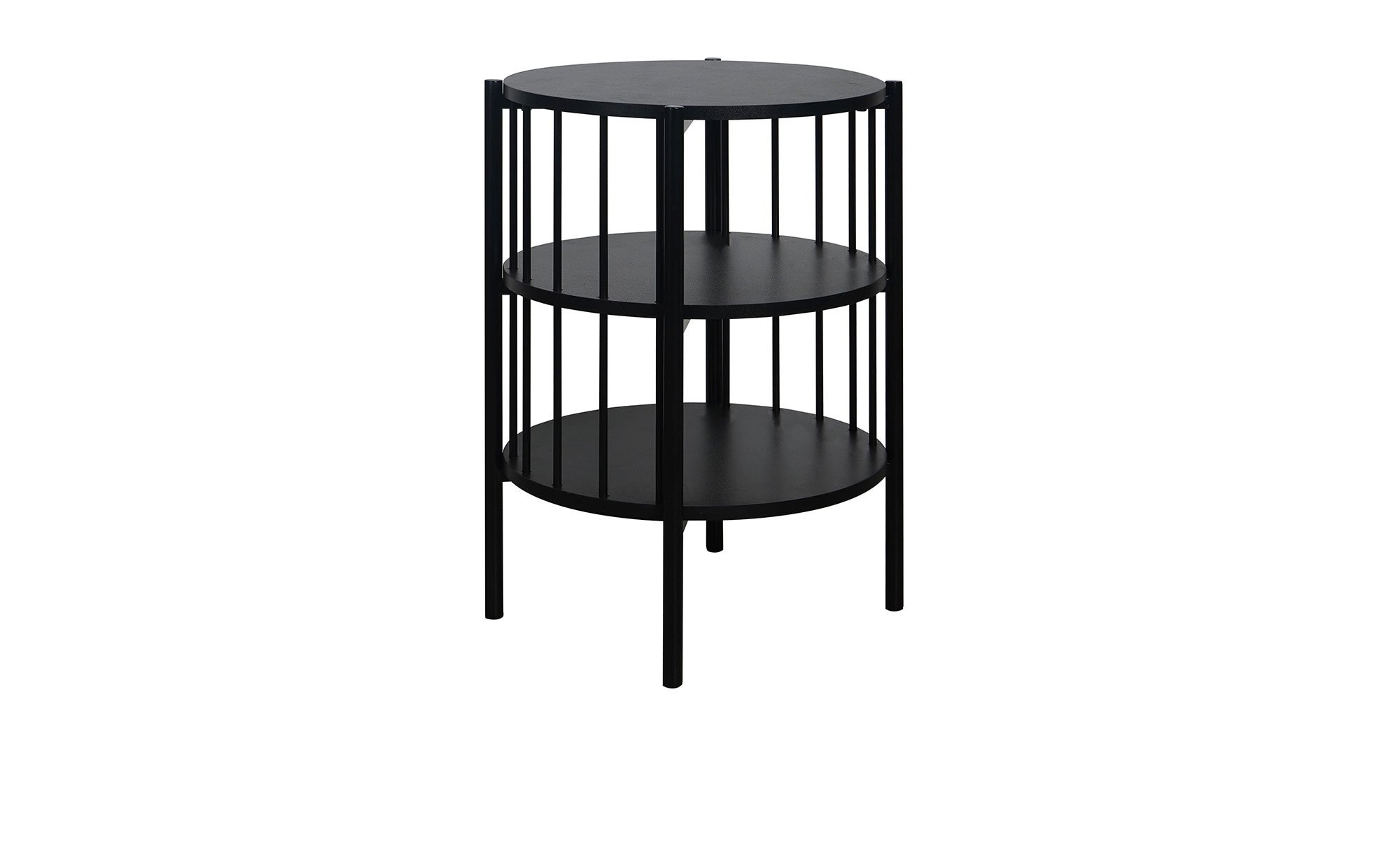 Das ca. 44 x 60 x 44 cm große Möbelstück verfügt über eine aus MDF bestehende Tischplatte in Schwarz. Ihre Oberfläche wird durch eine robuste Melaminbeschichtung vor Verschleiß geschützt, außerdem gibt es einen Polyvinylchlorid-Dichtungsrand. Darüber hinaus erwartet Sie ein schwarzes Gestell aus pulverbeschichtetem Stahl, das für die nötige Stabilität sorgt.