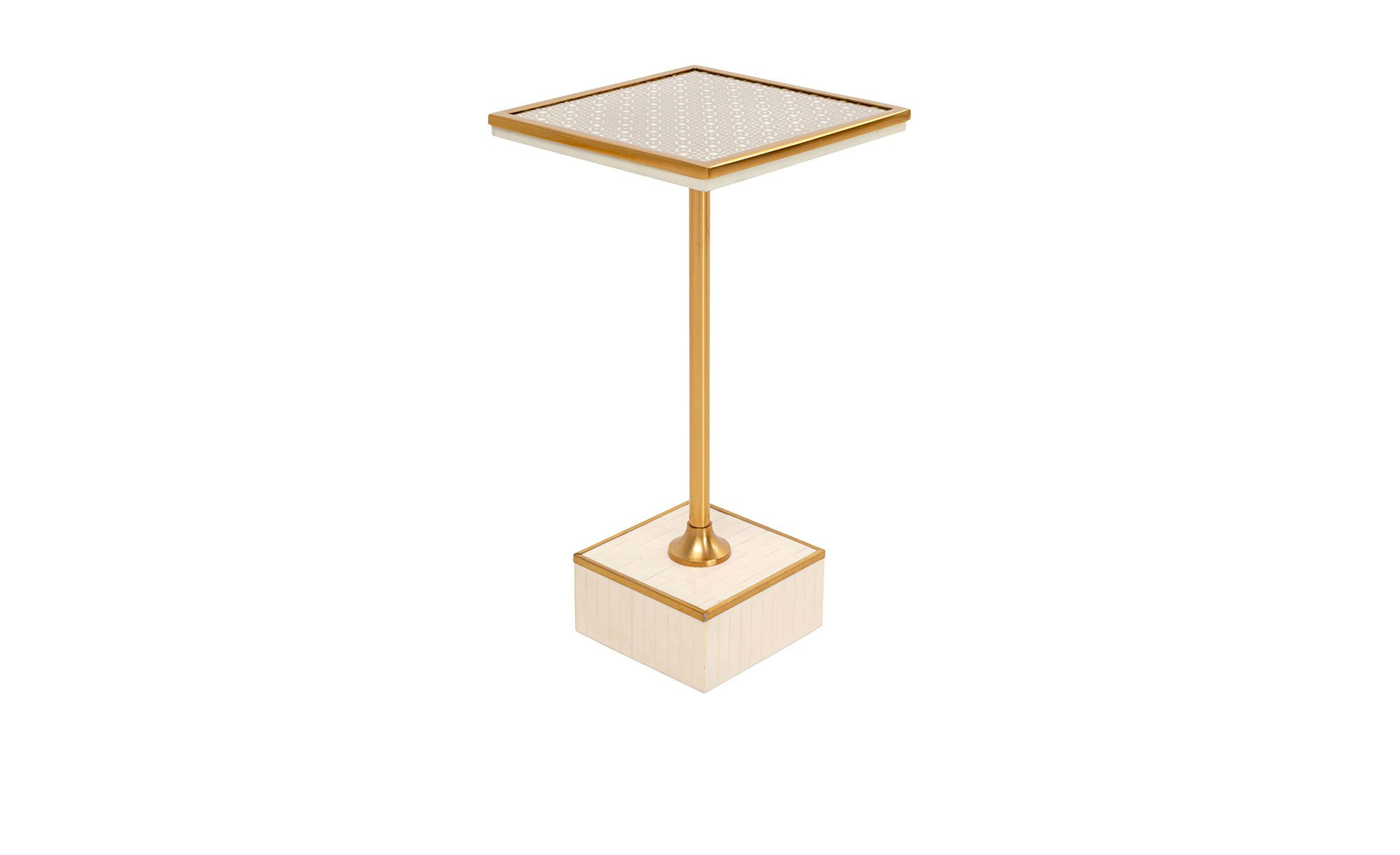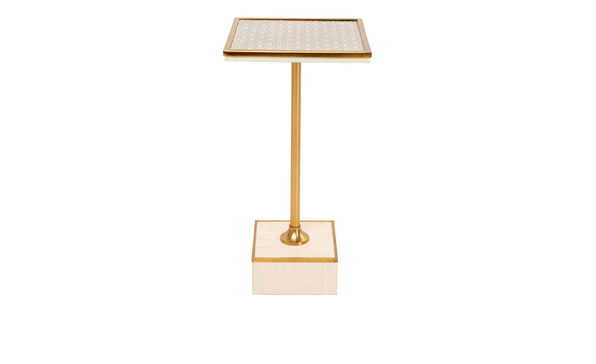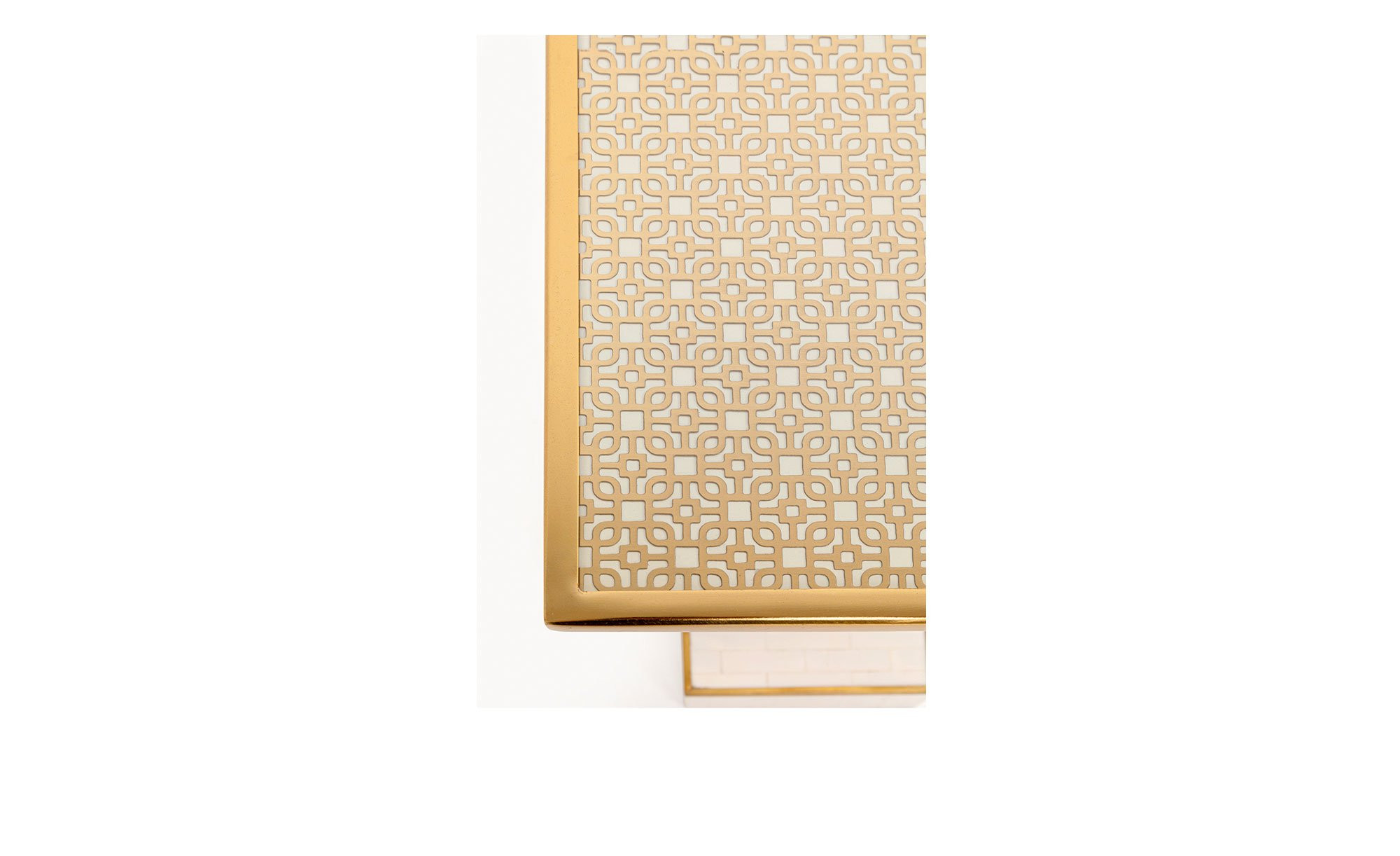 Beim Beistelltisch Grazia handelt es sich um ein stilvolles Statement-Piece, das mit seinem Design jedem Raum eine elegante, frische Note verleiht. Der handgearbeitete Artikel verbindet moderne Eleganz mit hochwertigen Materialien. Seine quadratische Tischplatte aus MDF mit Polyresin-Beschichtung zeigt eine stilvolle Musterung in Weiß und Gold. Sie ist ca.18 mm stark und besonders pflegeleicht.