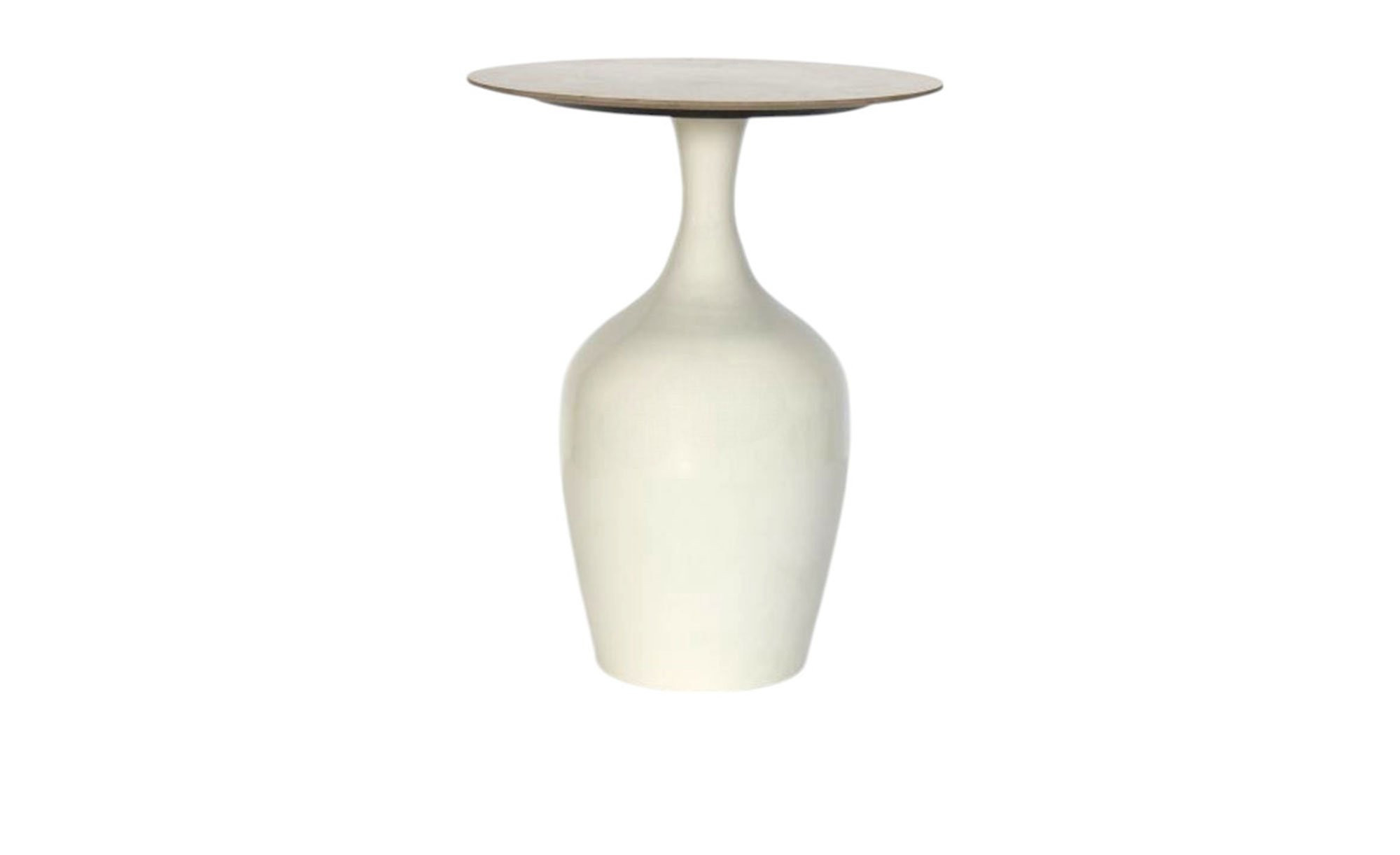 Während das Gestell des ca. 40 x 52 x 40 cm großen Artikels aus Eisen im Farbton Creme besteht, erwartet Sie bei der runden Platte eine graue Steinzeugfliese mit Glanzpulverbeschichtung.