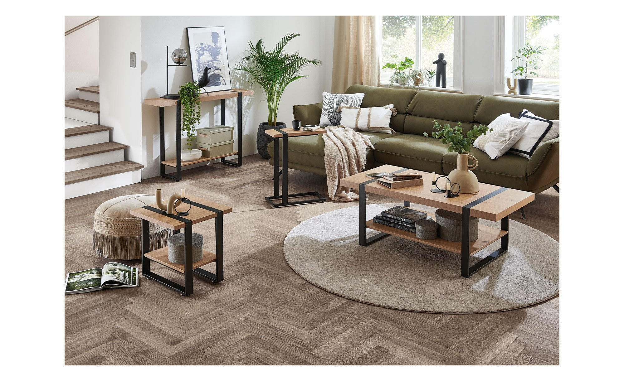 Bei unserem Beistelltisch Sammy handelt es sich um einen besonderen Eyecatcher, der Industrial Style mit natürlichen Elementen verbindet.
