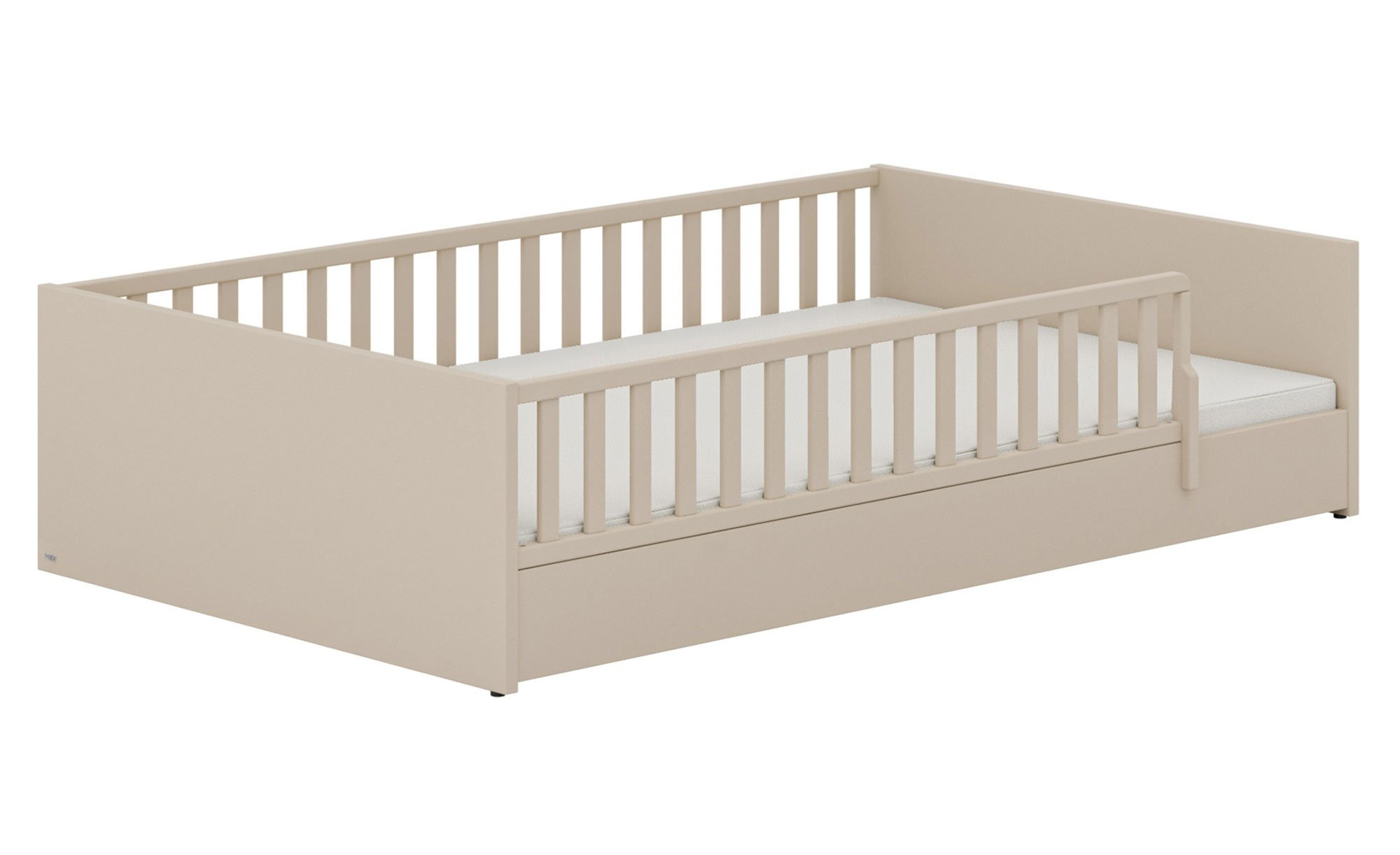 Optional ist das Bodenbett Little Flo auch in weiteren Farben bei uns erhältlich. Zusätzliches Zubehör wie ein Rausfallschutz, ein Bettkasten oder ein Bettkasten-Unterschiebebett ist auf Wunsch bestellbar.