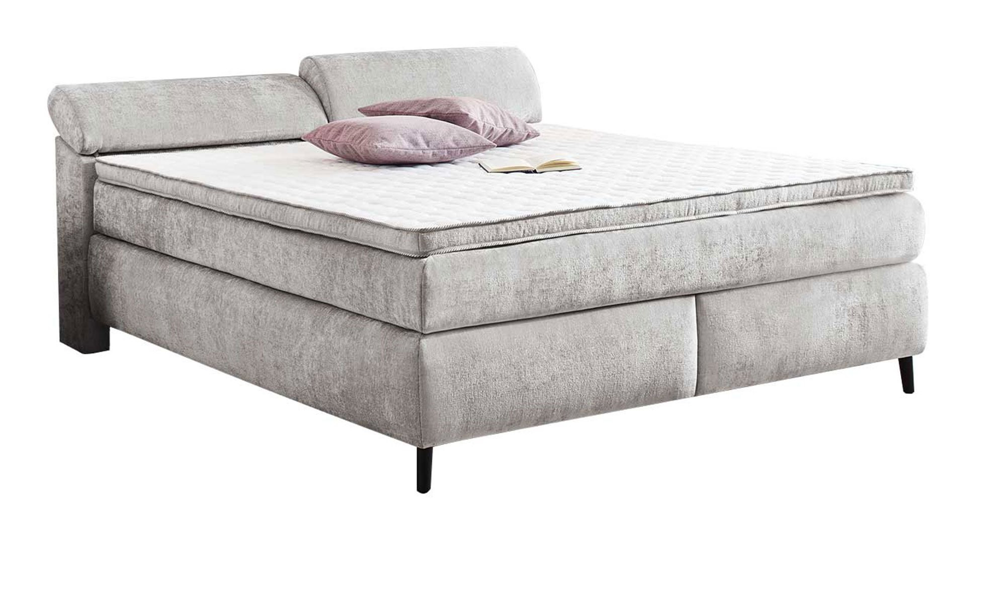 Das Boxspringbett Dany Mix begeistert mit großzügigen Maßen von ca. 189 x 109 x 233 cm und einer komfortablen Liegefläche von ca. 180 x 200 cm. Der hochwertige Chenille-Bezug aus 100 % Polyester in Hellgrau verleiht dem Bett eine besonders wohnliche Ausstrahlung, während schwarze Metallfüße für ca. 12 cm Bodenfreiheit sorgen und das moderne Gesamtbild unterstreichen. Das höhenvariable Kopfteil bietet zusätzlichen Komfort und lässt sich individuell an Ihre Bedürfnisse anpassen – ideal zum Lesen oder Fernsehen im Bett.