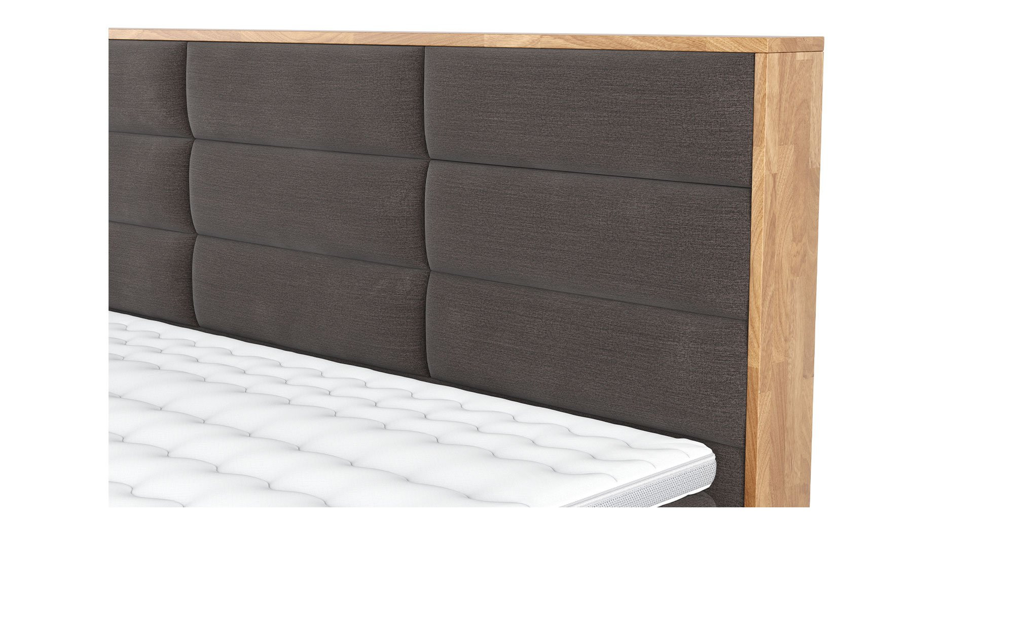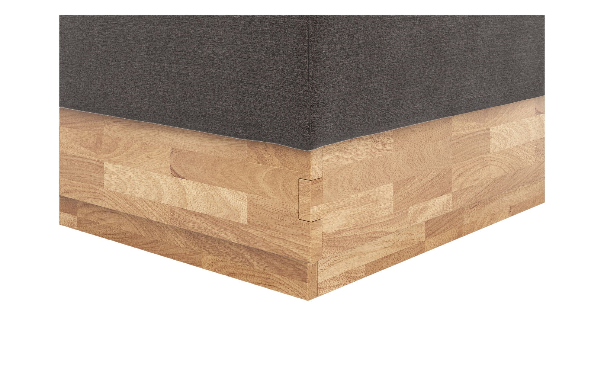Das ca. 191 x 122 x 216 cm große Möbelstück begeistert mit einem feinen Flachgewebe in Leinen-Optik und mit wasserabweisender Ausrüstung aus 100 % Polyester in der eleganten Farbe Charcoal. Der Sichtrahmen aus geölter Eiche ergänzt das Design mit seinem natürlichen Charme, während ca. 1,5 cm hohe Kunststoffgleiter in Schwarz als Füße dienen. Ein integrierter Bettkasten bietet zusätzlichen Stauraum für Ihre Schlafzimmerutensilien.