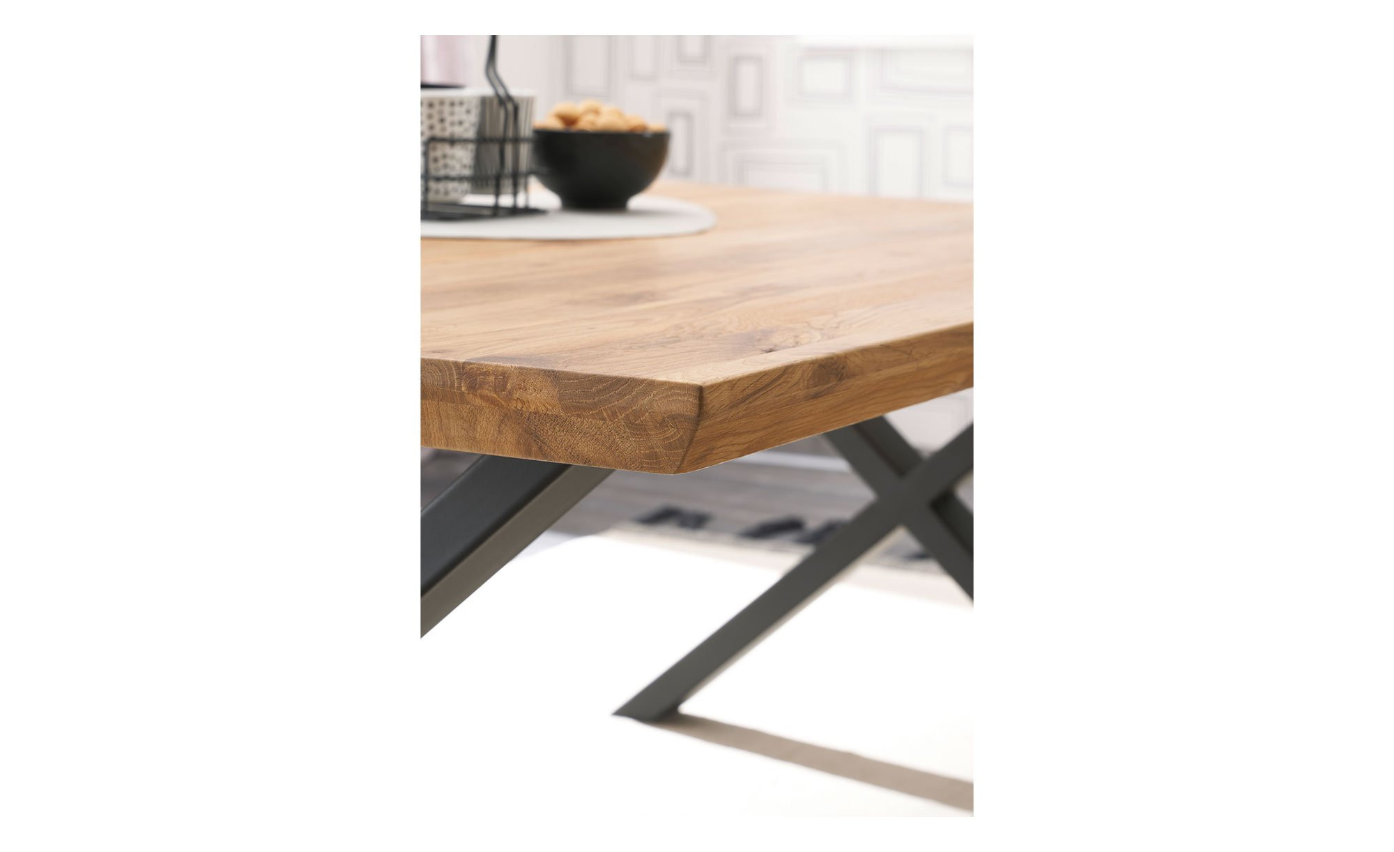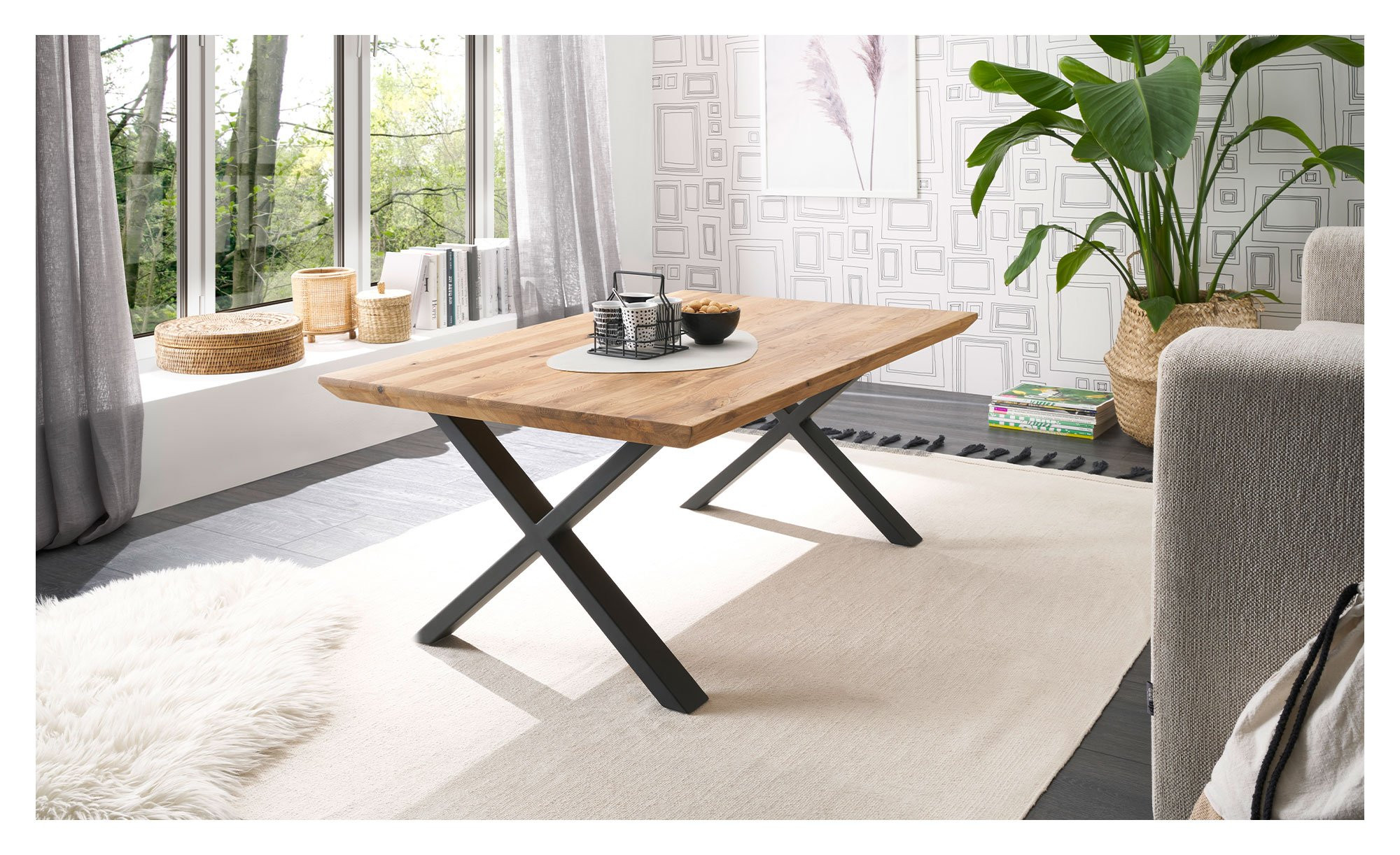 Couchtisch Austin ist ein rechteckiges Möbelstück mit einer Massivholzplatte aus Eiche. Sie wurde geölt und zieht mit einer Schweizer Kante alle Blicke auf sich. Zusätzlich erwartet Sie ein schwarzes Metallgestell mit Pulverbeschichtung und X-Design, das sowohl stabil als auch stilvoll ist. Sie haben die Möglichkeit, zwischen zwei verschiedenen Fußausführungen zu wählen, um den Tisch Ihren individuellen Vorlieben anzupassen.