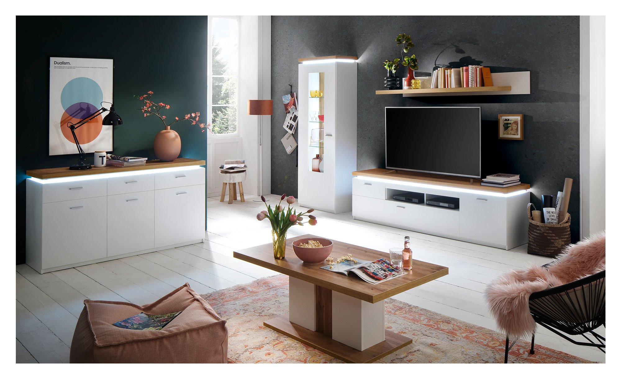 - Farbbezeichnung Gestell: Weiss / Absetzung in Wotan Eiche Nachbildung