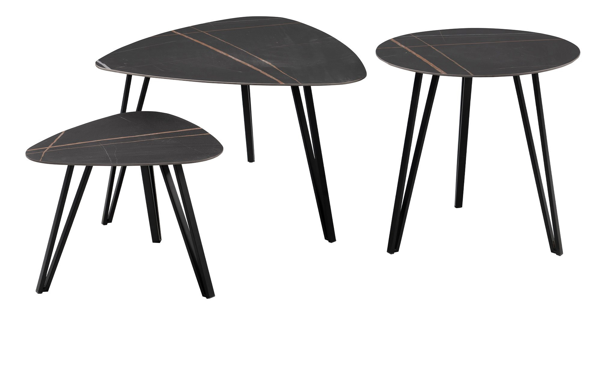 Sein schwarzes Metallgestell mit einem stabilen 3-Fuß-Design verleiht dem Tisch eine moderne und robuste Optik, während die Tischplatte aus gesintertem Stein in Schwarz / Anthrazit über eine elegante und edle Ausstrahlung verfügt. Mit Maßen von ca. 45 x 35 x 45 cm bietet Couchtisch Lisa 1 eine kompakte Fläche. Er ist in drei verschiedenen Ausführungen erhältlich.