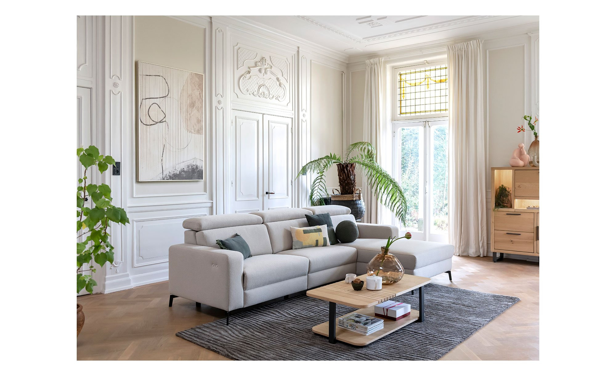 - Eichenfurnier in Kombination mit Metall