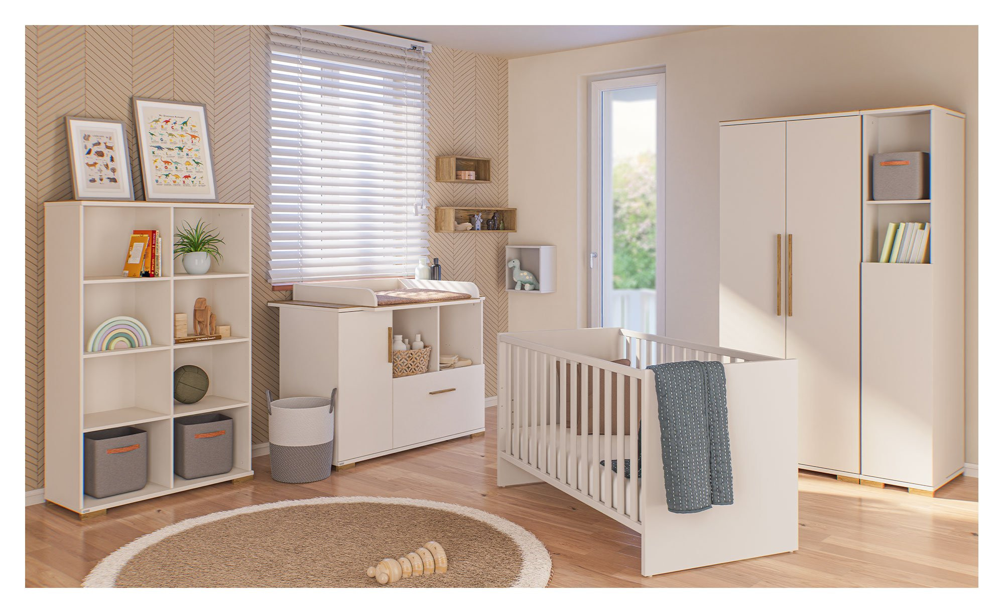 - Ausführung in Off-White mit einer Absetzung in Eiche Montana