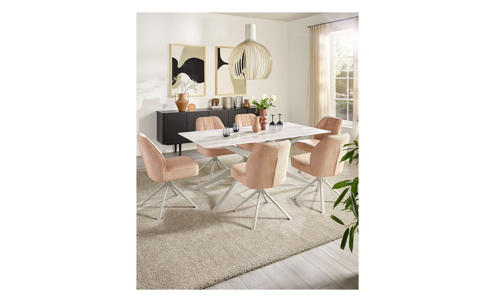 - Farbbezeichnung Tischplatte: Keramikoptik weiß