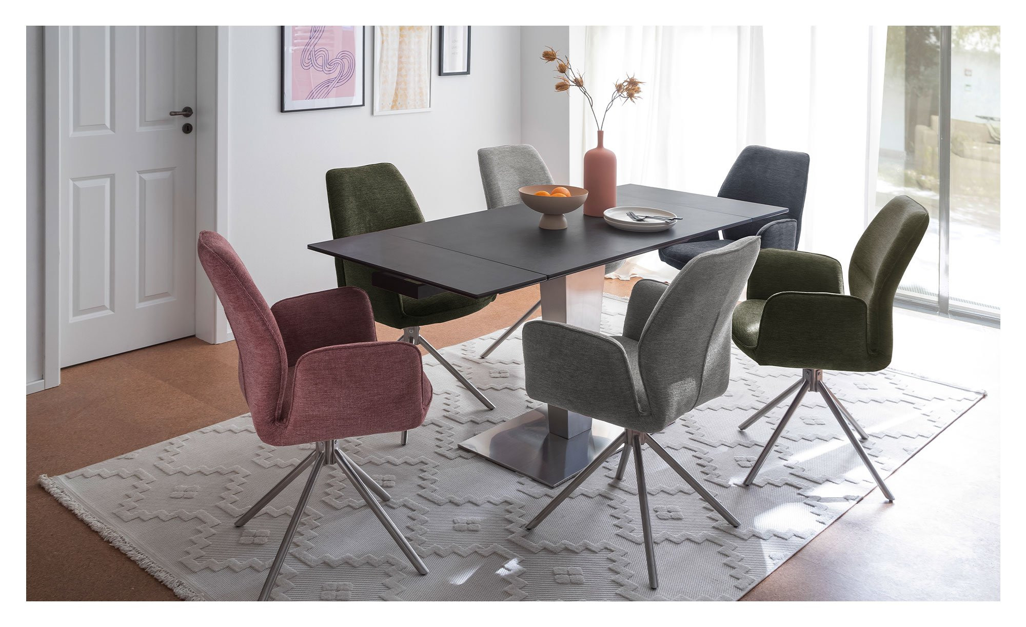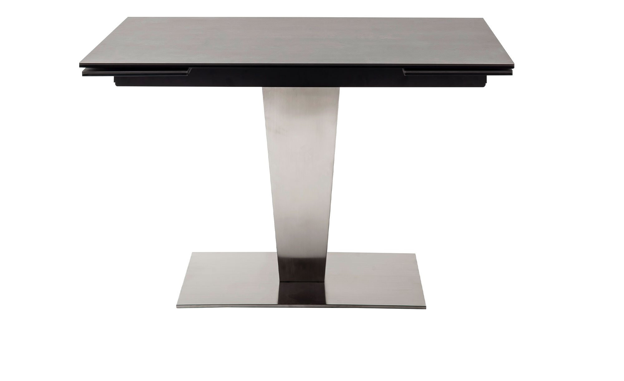 Der Ausziehtisch Pisa überzeugt durch seine außergewöhnliche Formgebung und die stilvolle Materialkombination, die ihn zum echten Blickfang im Essbereich macht. Das elegante Säulengestell aus gebürstetem Edelstahl in Silber verleiht dem Tisch eine moderne, hochwertige Ausstrahlung und sorgt gleichzeitig für stabilen Stand. Die rechteckige Tischplatte besteht aus lackierter Keramik auf Sicherheitsglas mit einer Stärke von ca. 14 mm und punktet mit einer robusten, pflegeleichten Oberfläche für den täglichen Gebrauch.