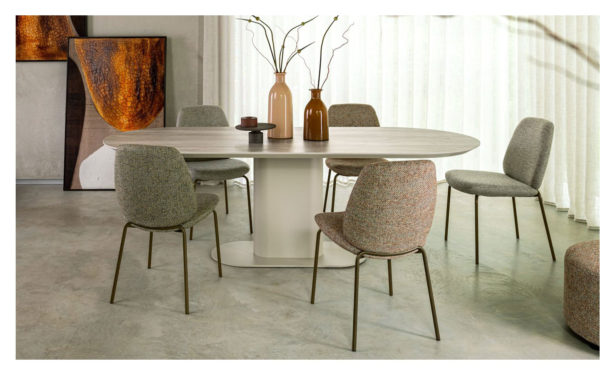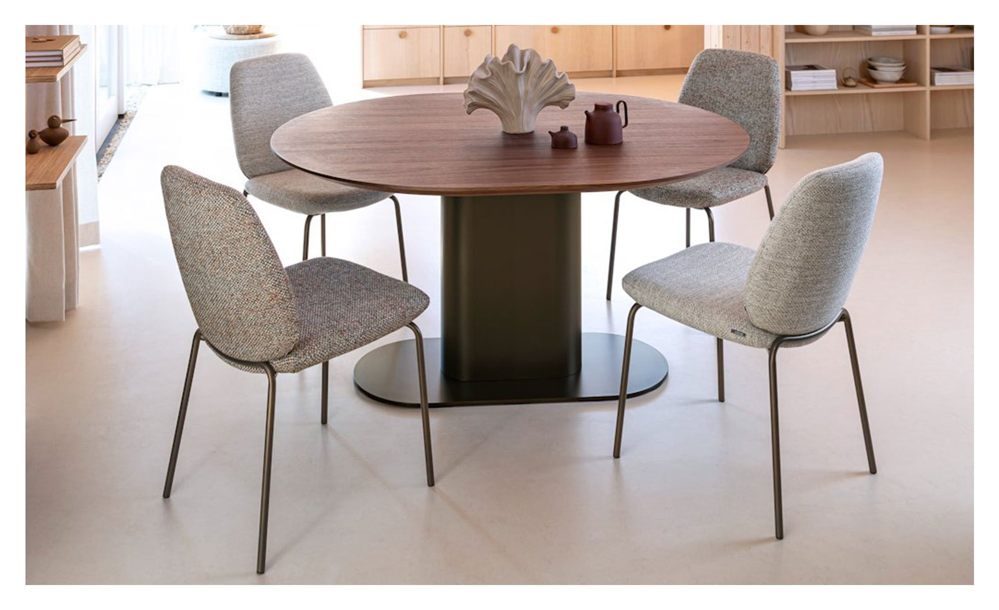 Beim Esszimmerstuhl Fae treffen ein modernes Design, gemütliche Formen und höchster Sitzkomfort aufeinander.