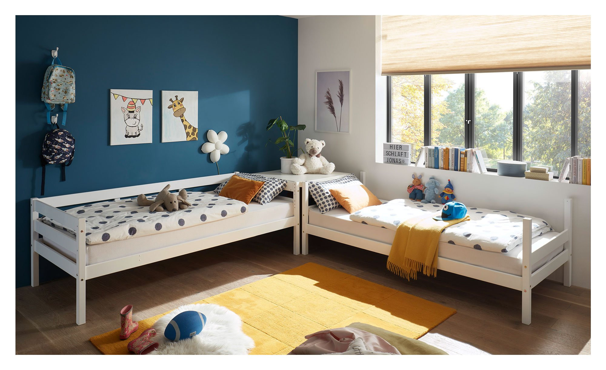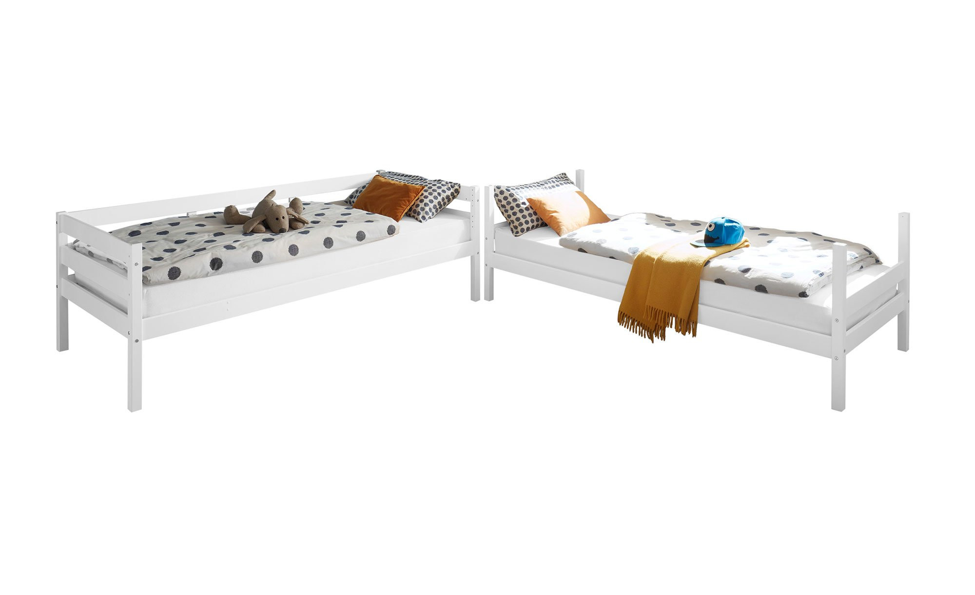 Ihr Nachwuchs teilt sich ein Zimmer oder empfängt gern und oft Übernachtungsbesuch? In beiden Fällen ist das teilbare Etagenbett Carlo die perfekte Wahl für einen erholsamen Schlaf! Auf platzsparende Weise fügt sich das Möbelstück ins Kinderzimmer und bietet gleichzeitig jede Menge Platz für diverse Nutzungsvorhaben. Mit etwas zusätzlicher Deko lässt sich beispielsweise ein individuelles Abenteuerbett herrichten. Oder Sie machen es sich abends selbst in der unteren Etage bequem und sorgen mit einem Buch dafür, dass Sohn oder Tochter besser einschlafen können!