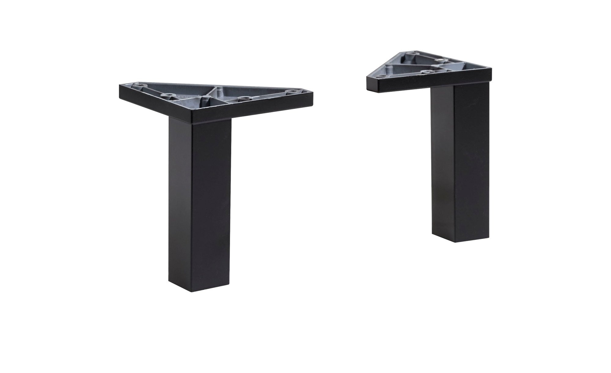 Das Angebot beinhaltet zwei eckige Füße. Sie sind ca. 2,5 x 10 x 2,5 cm groß und ganz in Schwarz gehalten. Somit fügen sie sich perfekt in das Gesamtbild ein.