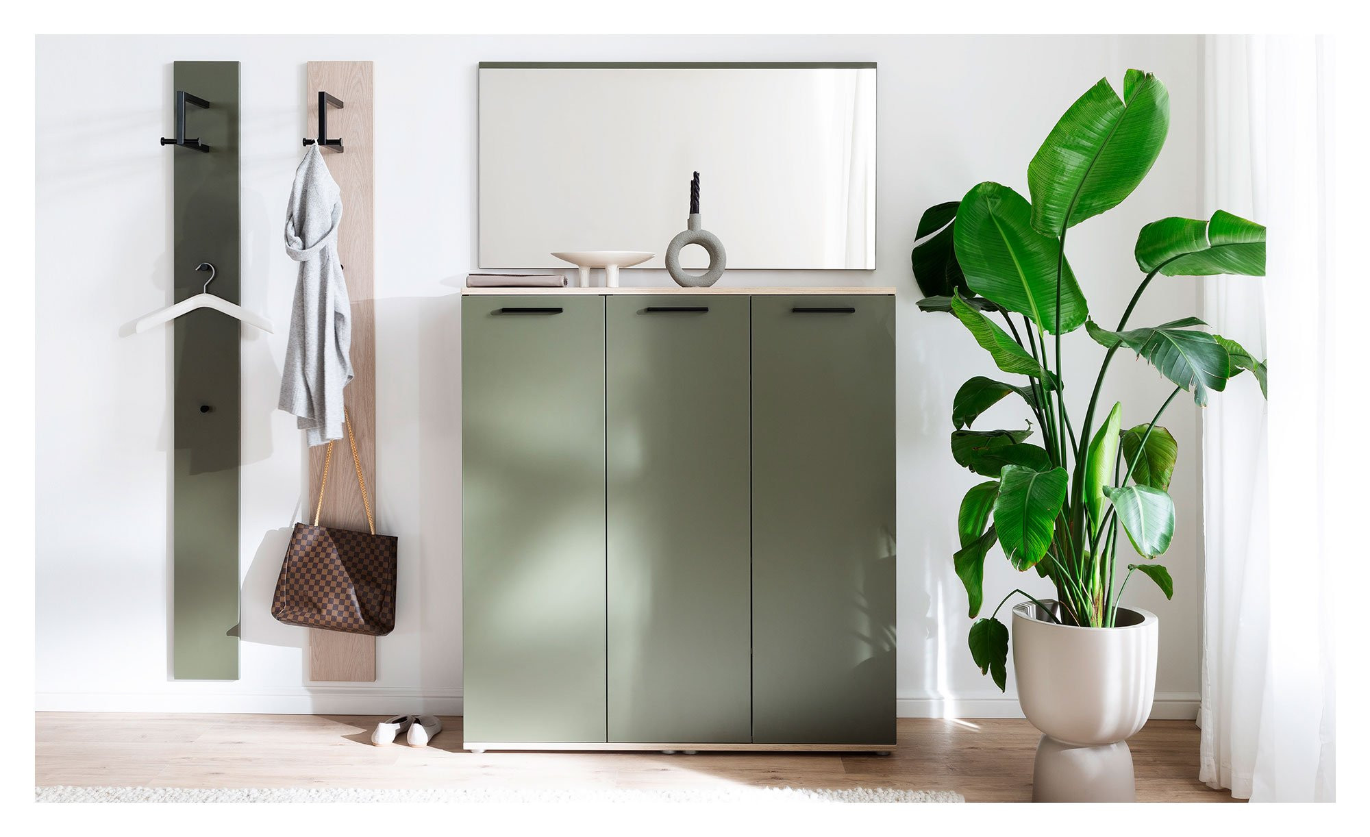 Das Garderobenpaneel vito Nostro überzeugt mit modernem Design und funktionalen Aufhängemöglichkeiten. Somit ist es die ideale Ergänzung für Ihren Eingangsbereich! Dank kompakter Maße von ca. 20 x 190 x 26 cm lässt sich das Möbelstück platzsparend im Flur integrieren. Gefertigt aus Holzwerkstoff und gestaltet in einem ansprechenden Olivgrün, bringt es eine edle Note in Ihr Zuhause.