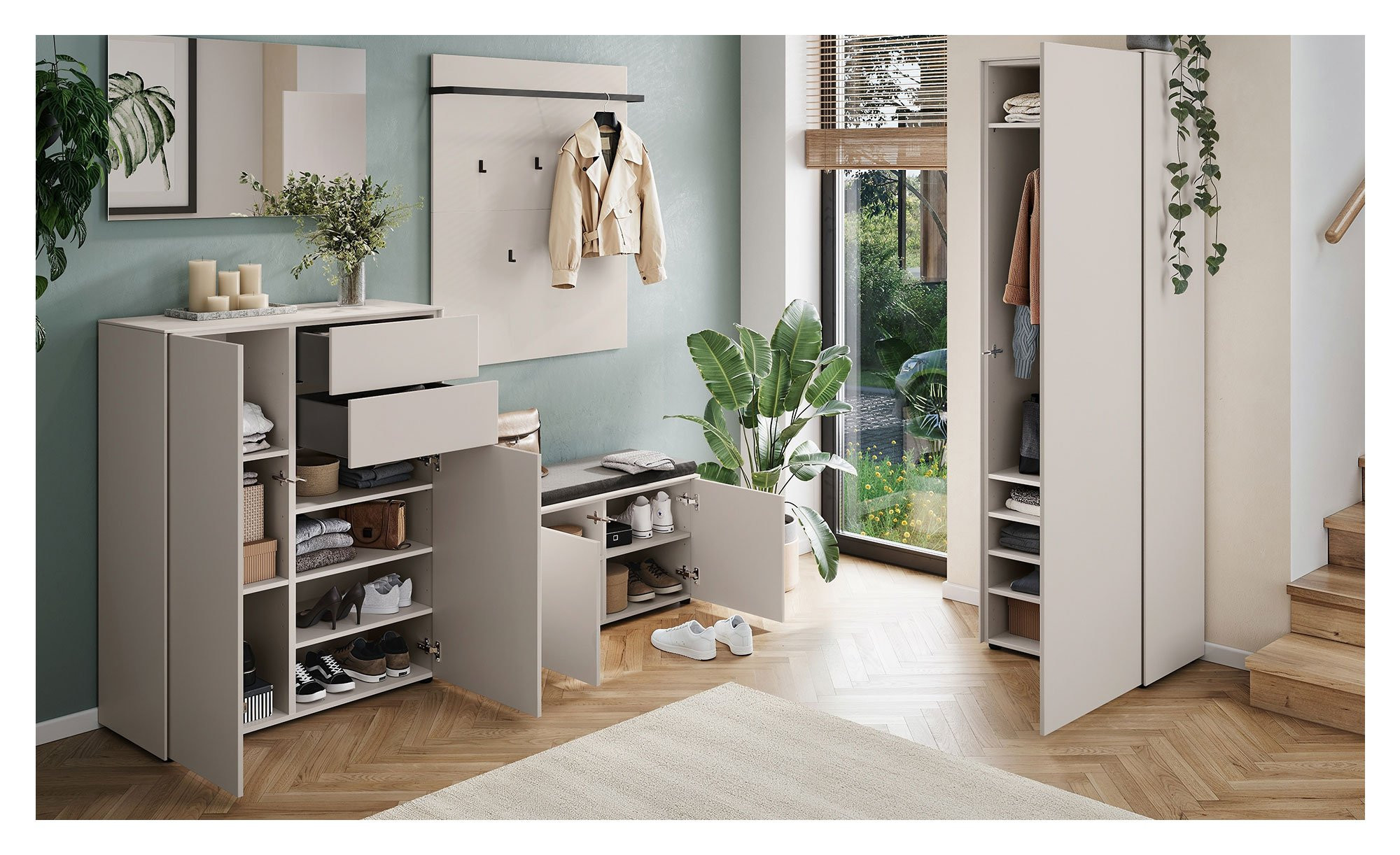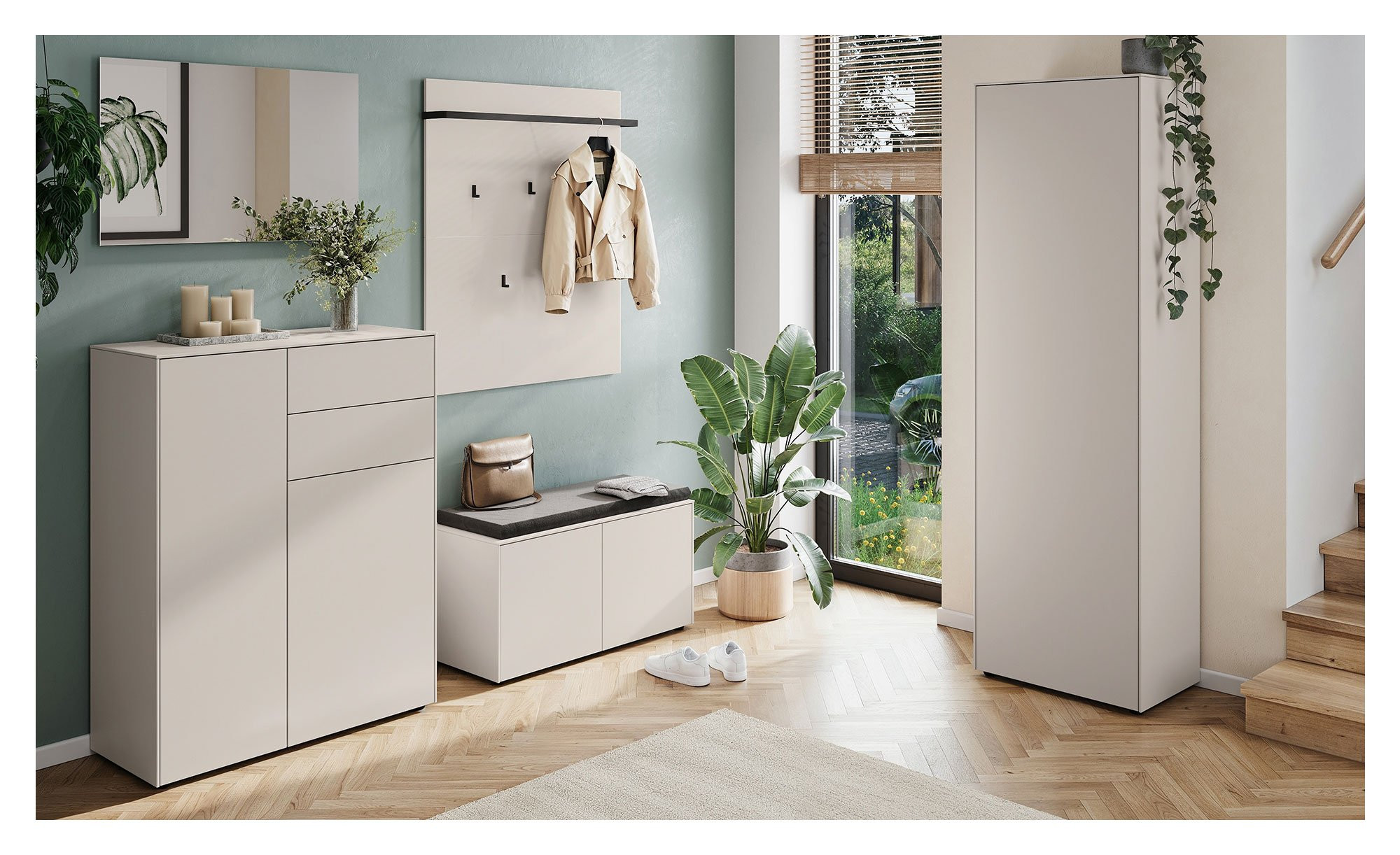 Mit seiner schlichten und zugleich edlen Modernität fügt sich der Garderobenschrank Luna perfekt in Ihren Eingangsbereich.