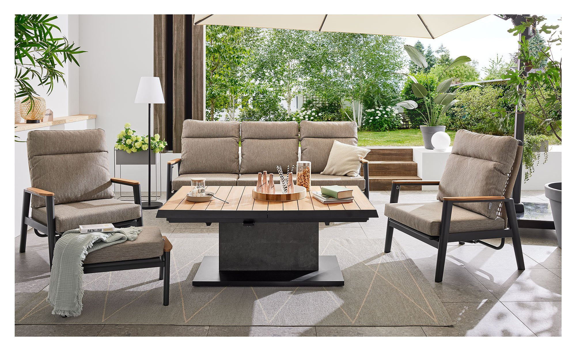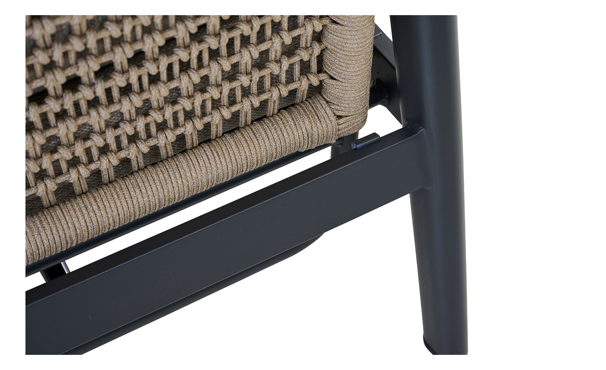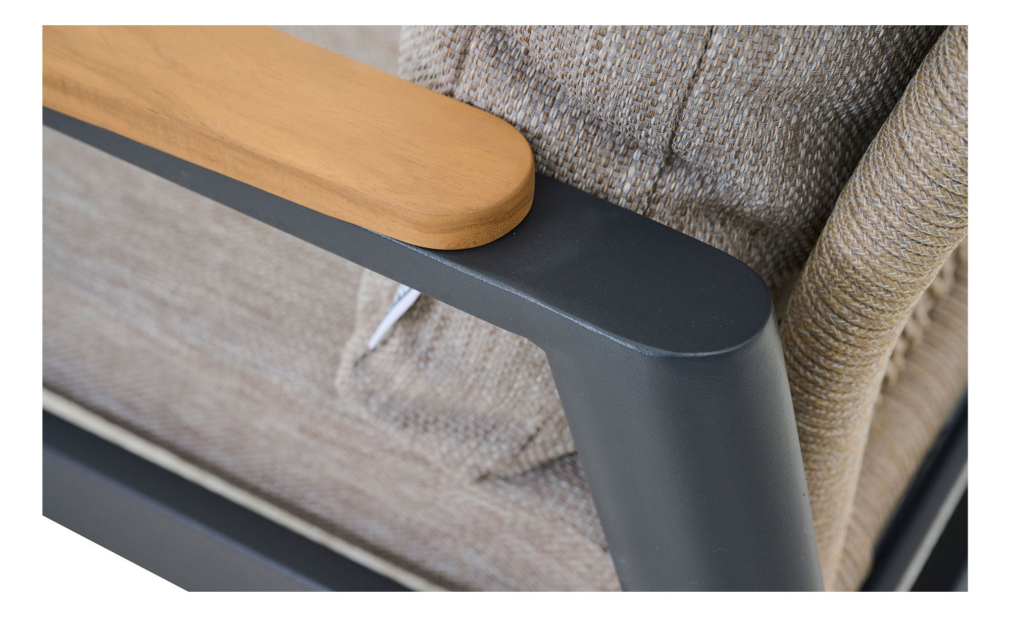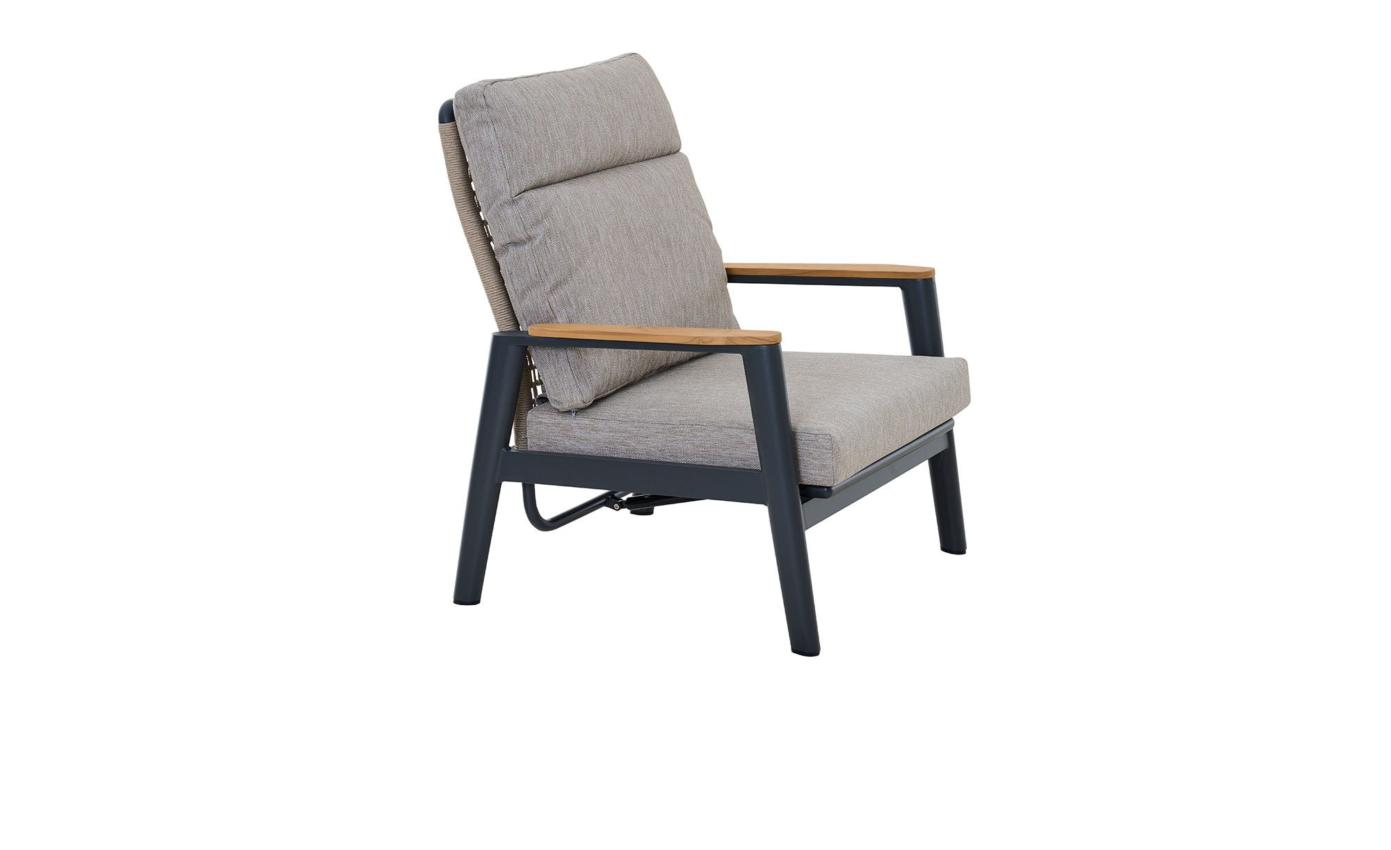 Der Artikel misst ca. 79 x 92 x 86 cm und verfügt über ein 4-Fuß-Gestell aus Aluminium. Seine Farbgebung in Anthrazit sowie die matte Pulverbeschichtung tragen zur edlen Ausstrahlung bei. Zusätzlich dürfen Sie sich auf Armlehnenonlays aus holzfarbenem Teakholz freuen, die einen natürlichen Akzent setzen. Besonders praktisch: Der Gartenstuhl MONDO Latea ist stufenlos verstellbar und lässt sich somit Ihren individuellen Wünschen anpassen! Zusätzlich gehören bequeme Kissen mit grauen Bezügen aus 100 % Polypropylen zum Angebot. Sie komplettieren das Wohlfühl-Paket für den Garten, die Terrasse oder den Balkon.