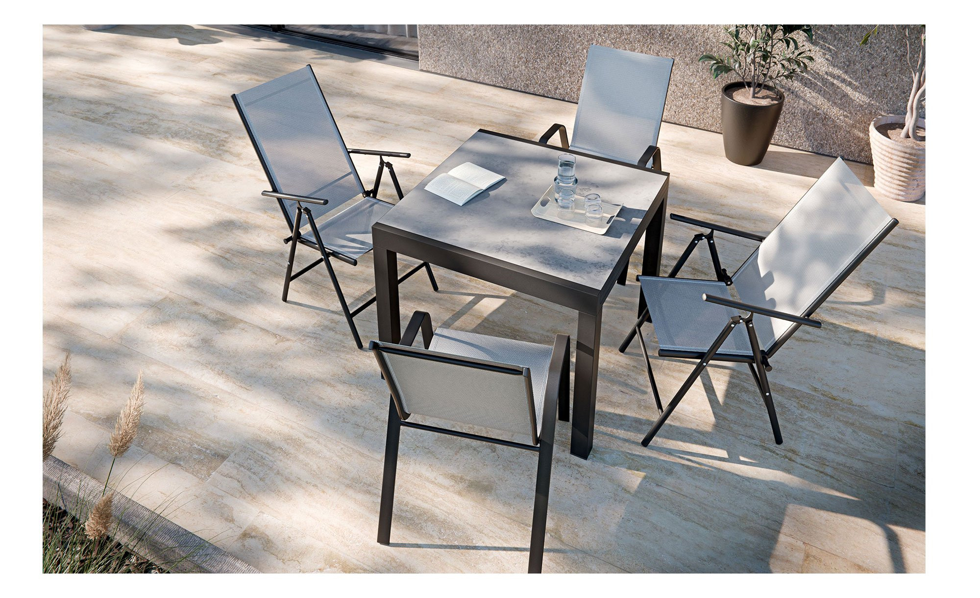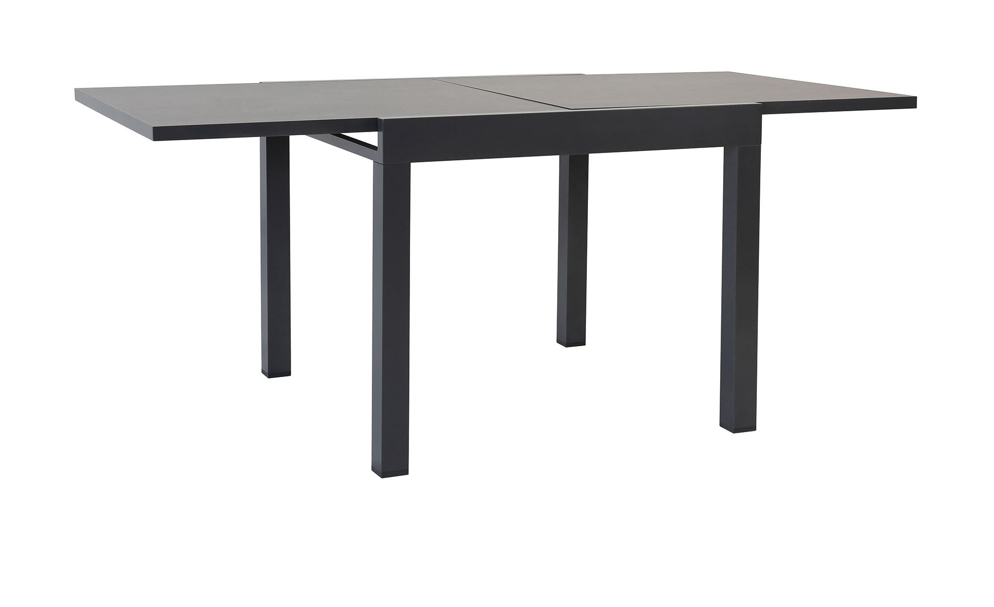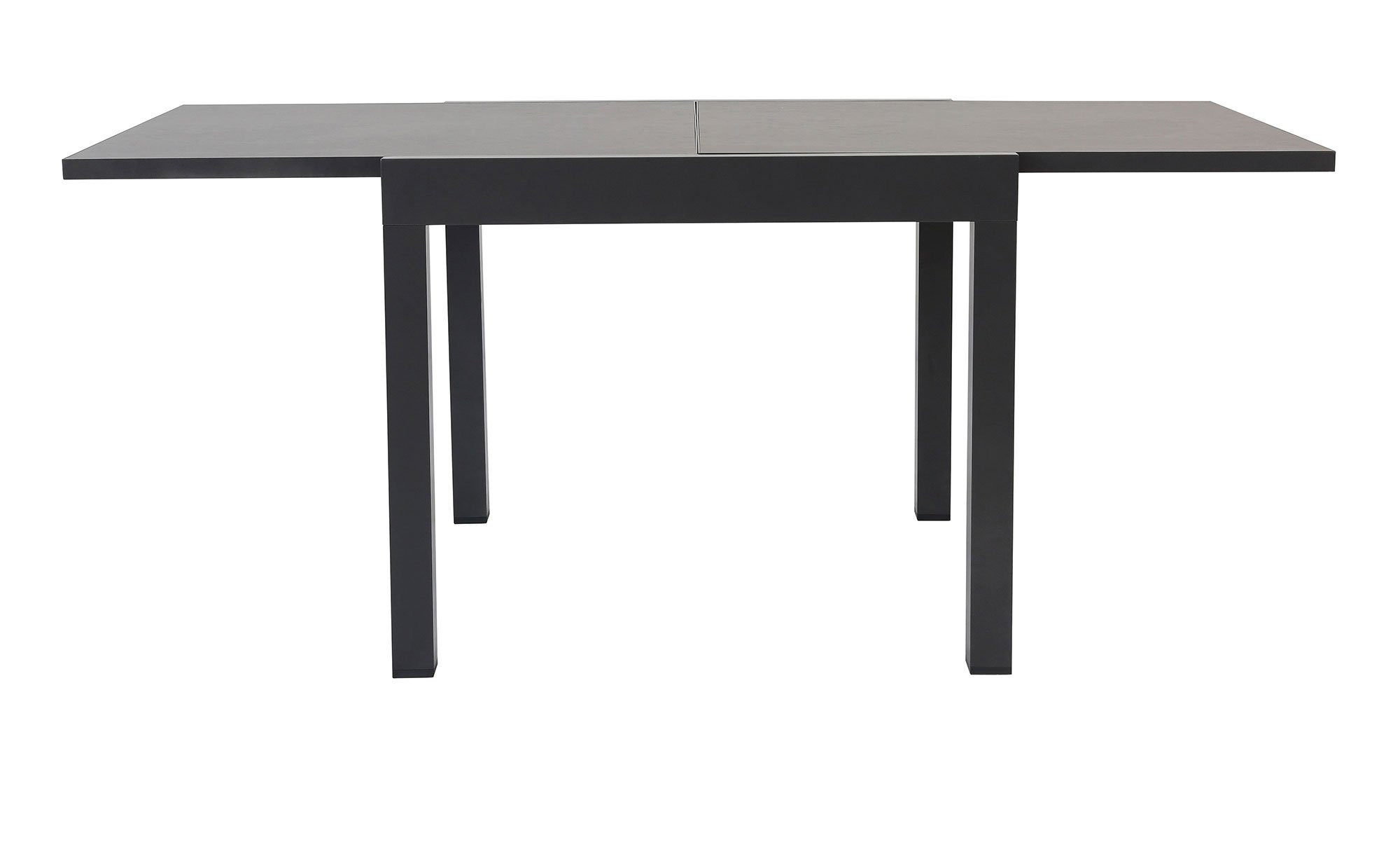 Der Artikel misst ca. 90 x 76 x 90 cm und ist mit einem vierfüßigen Gestell aus pulverbeschichtetem Aluminium in Anthrazit ausgestattet. Dieses trägt die quadratische Tischplatte aus PSPC, die ebenfalls in einem edlen Anthrazit begeistert. Besonders praktisch: Sollten Sie einmal Besuch erwarten oder aus anderen Gründen mehr Platz benötigen, können Sie die Platte schnell und einfach auf ca. 180 cm verlängern!